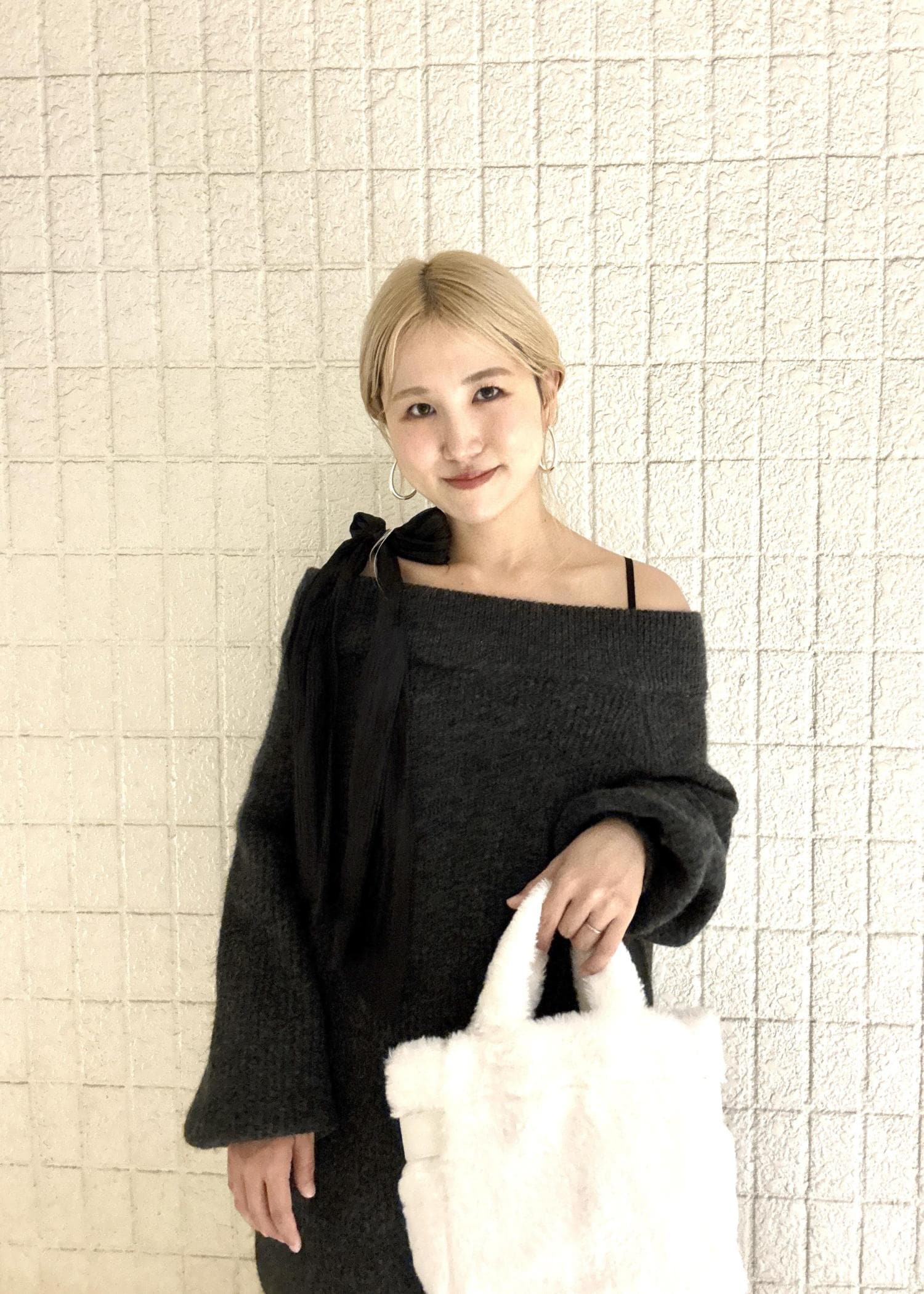 VIS肩リボンミニ丈ニットワンピース/2WAYグレー / F¥7,909レビュー152cmだとミニ丈として着用するにも長さがちょうど良さそうです。