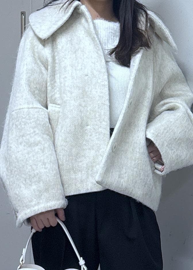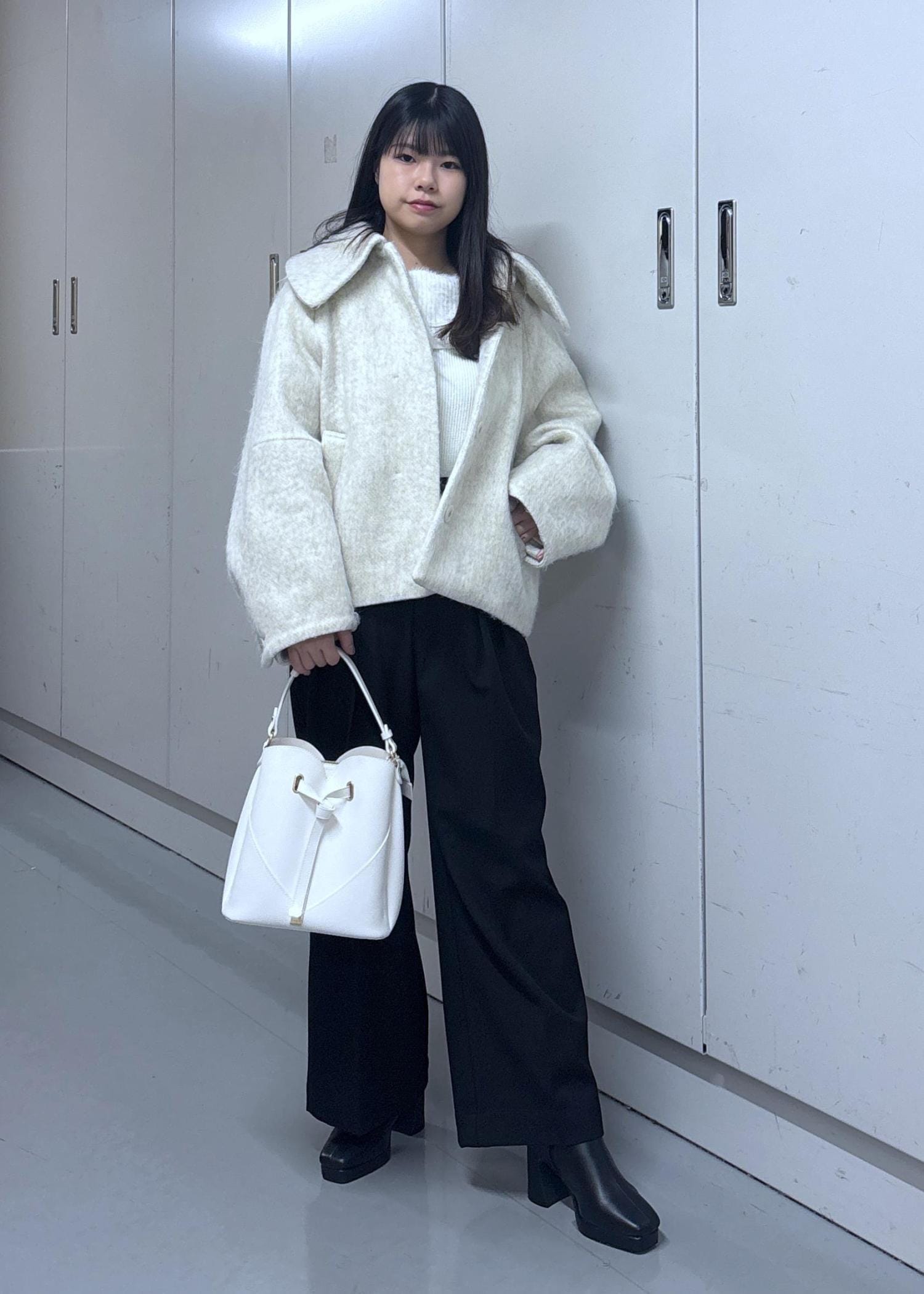 予約VIS【アウター総選挙1位】ビッグカラーモモンガシャギーショートコートオフホワイト / S¥10,989レビュー153cmでSを着用しました。