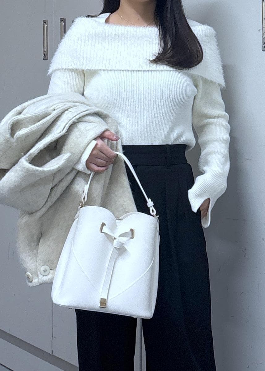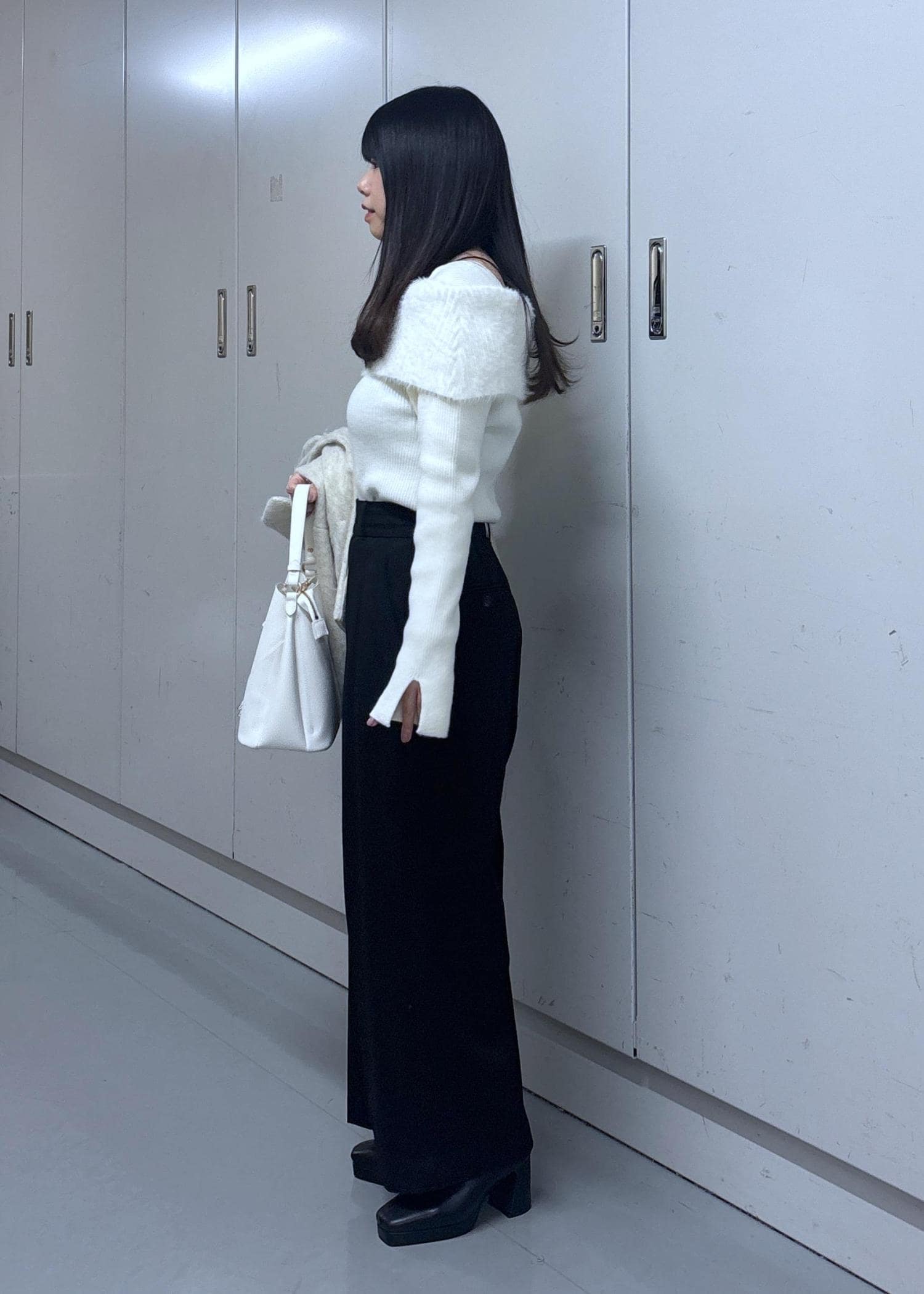 VISフェザーヤーンオフショルもちもちリブニット/イージーケアオフホワイト / F¥5,929レビュー肌触りのいいリブニットで、フェザー部分もチクチクしないです。