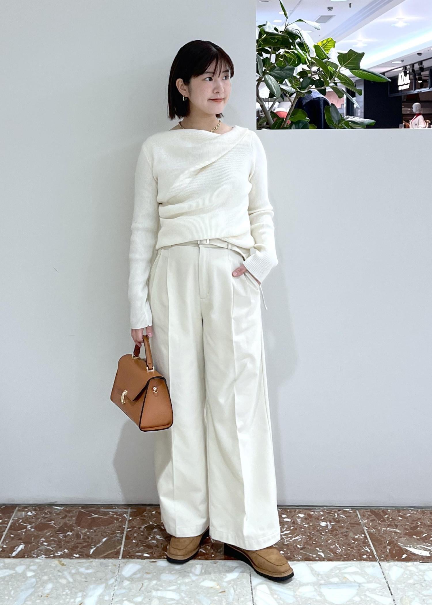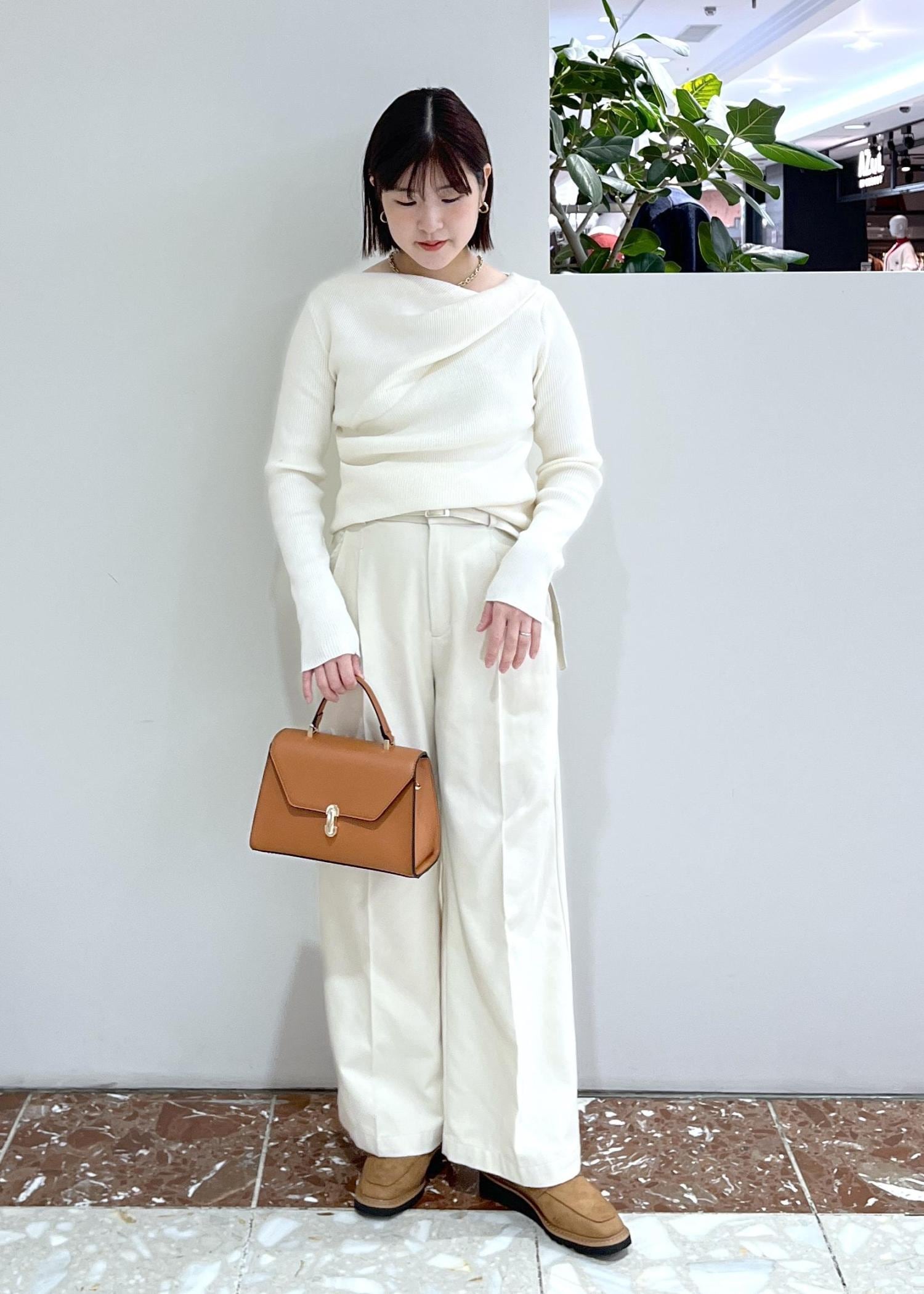 ねじれ部分が華やかな印象になるので、コートイン合わせでも顔まわり明るい印象になります。 -