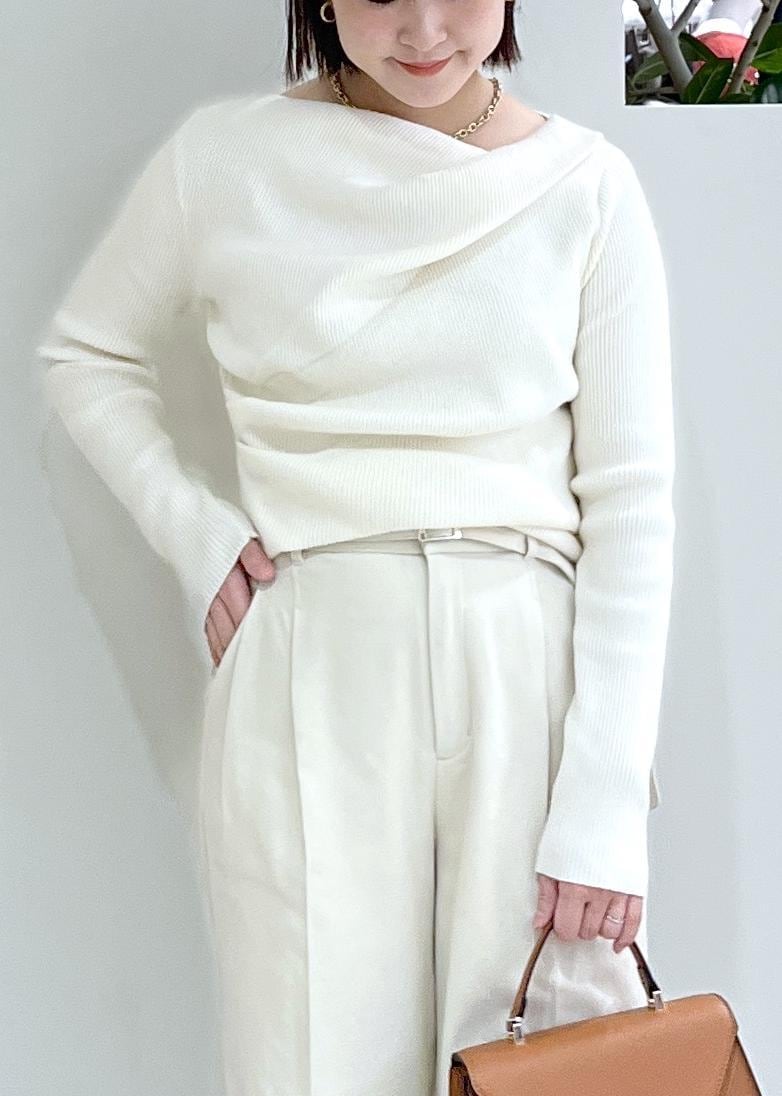 VISもちもちドレープリブニットトップス/イージーケアオフホワイト / F¥4,389レビュー程よい肉厚感で気温が15℃でも暖かくきていただけます!アウターの重ね着もしやすいです。