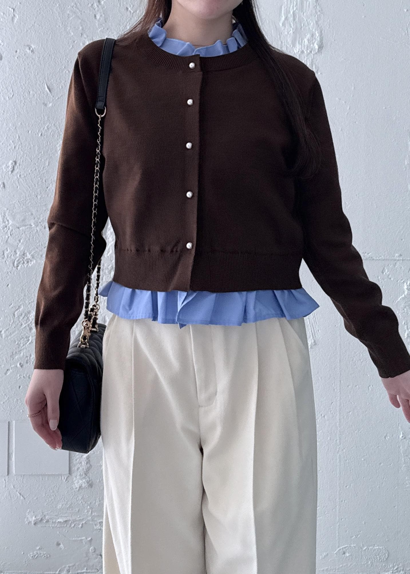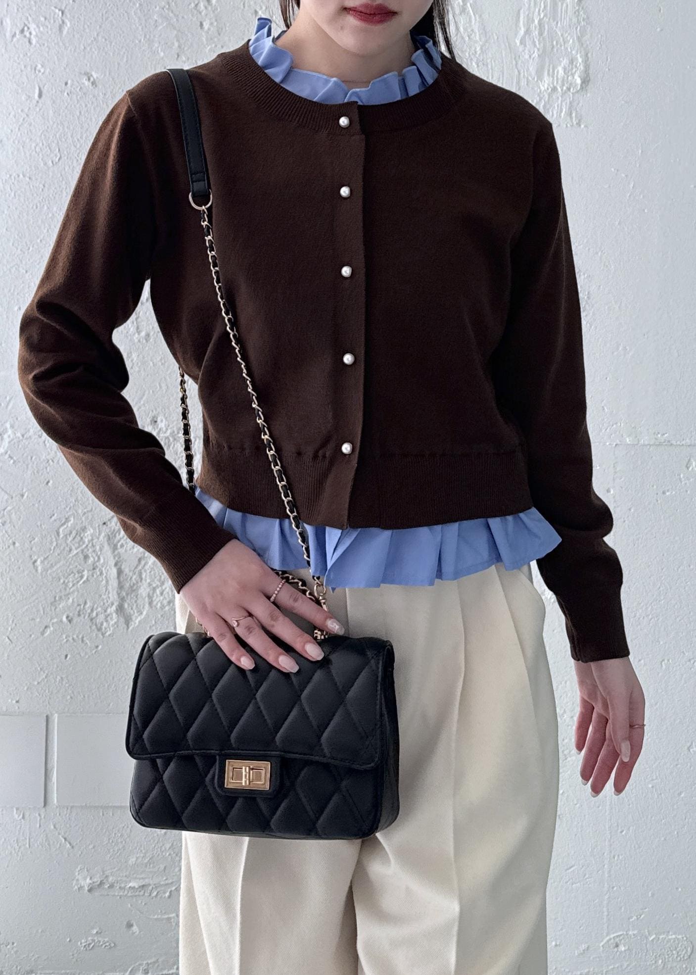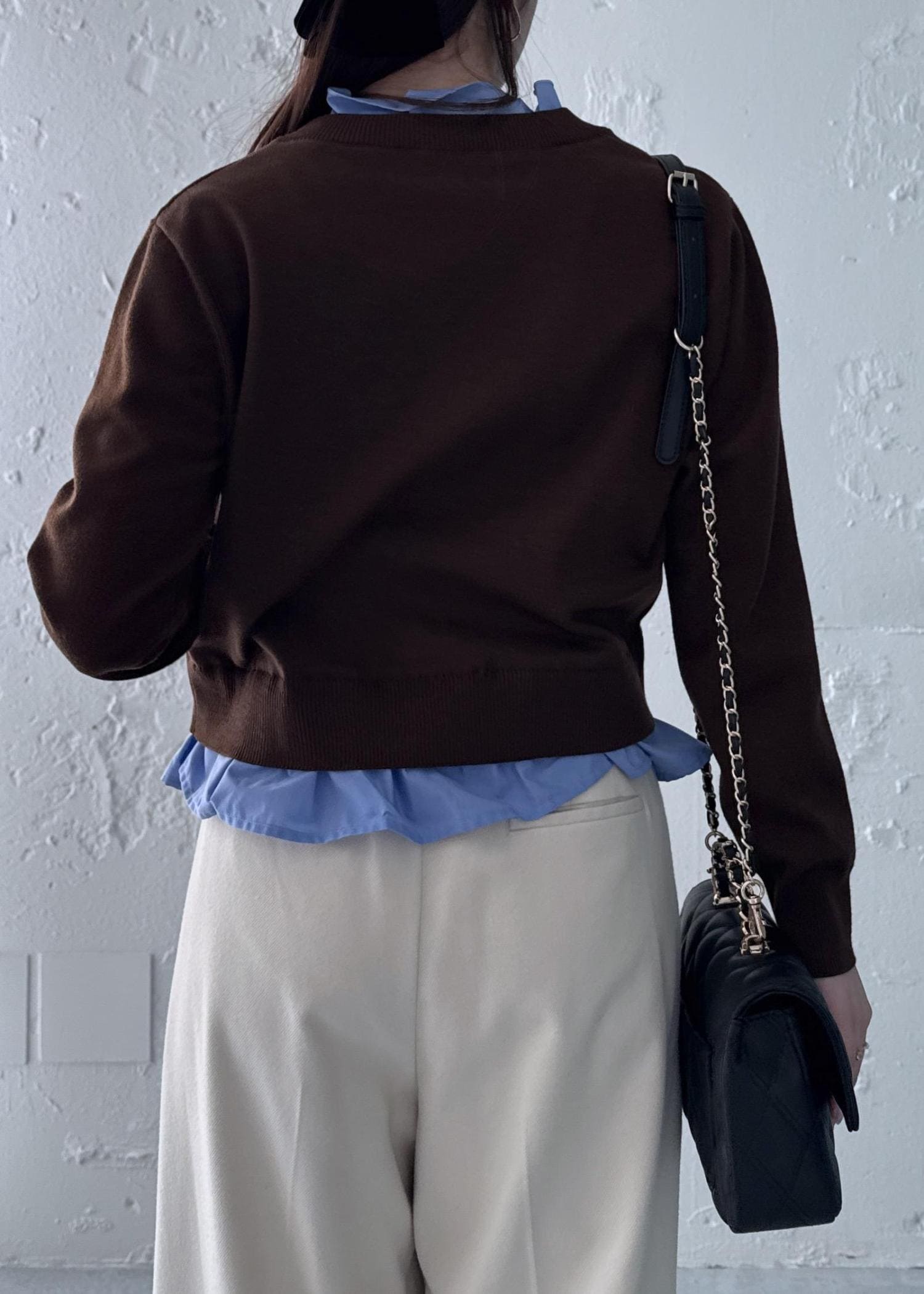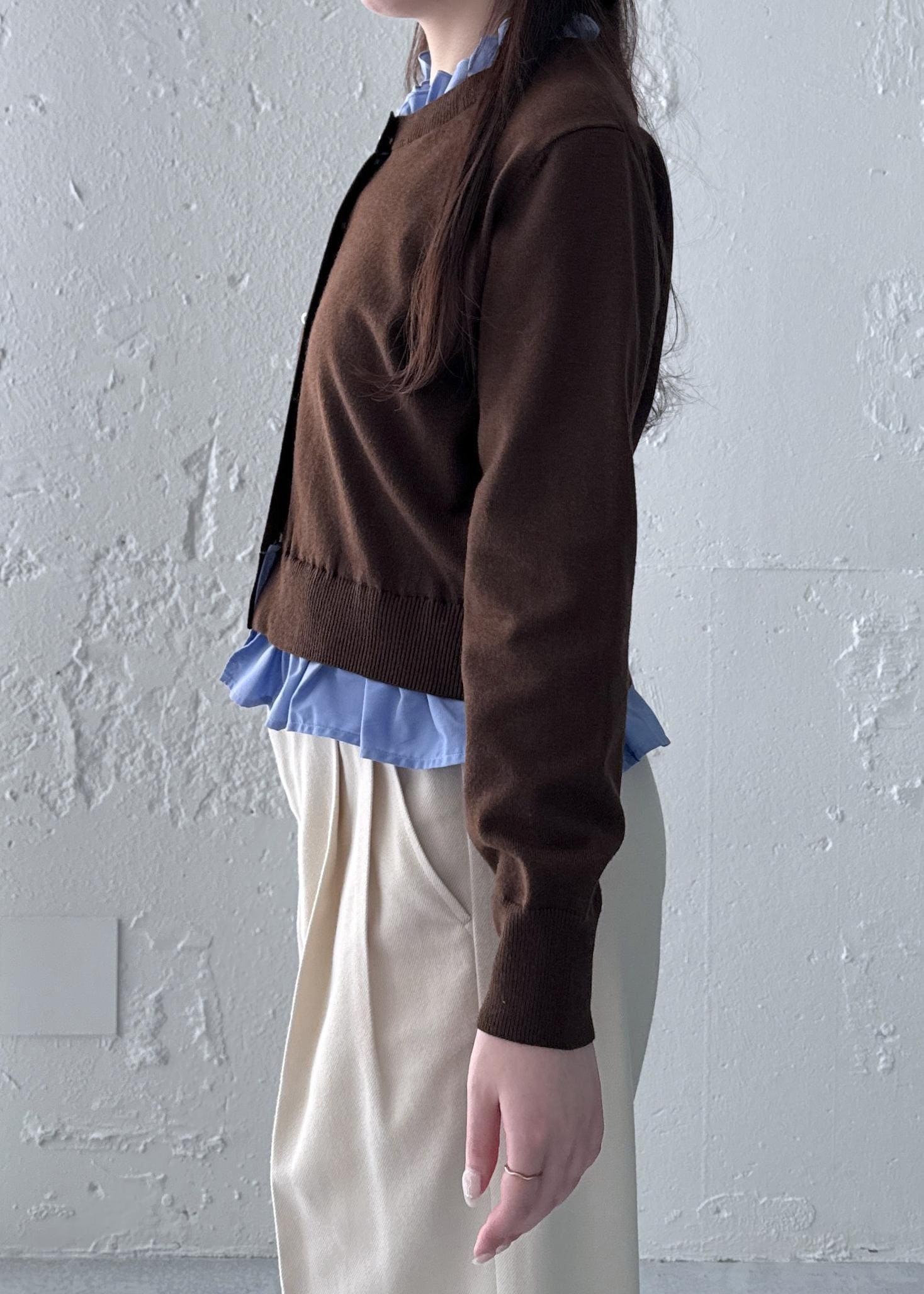 NEW! 予約VISフリル襟ドッキングニットカーディガントップスダークブラウン / F¥5,929レビューカーディガン部分は、厚すぎない程良いニット素材で肌触りが良く着心地良いです◎