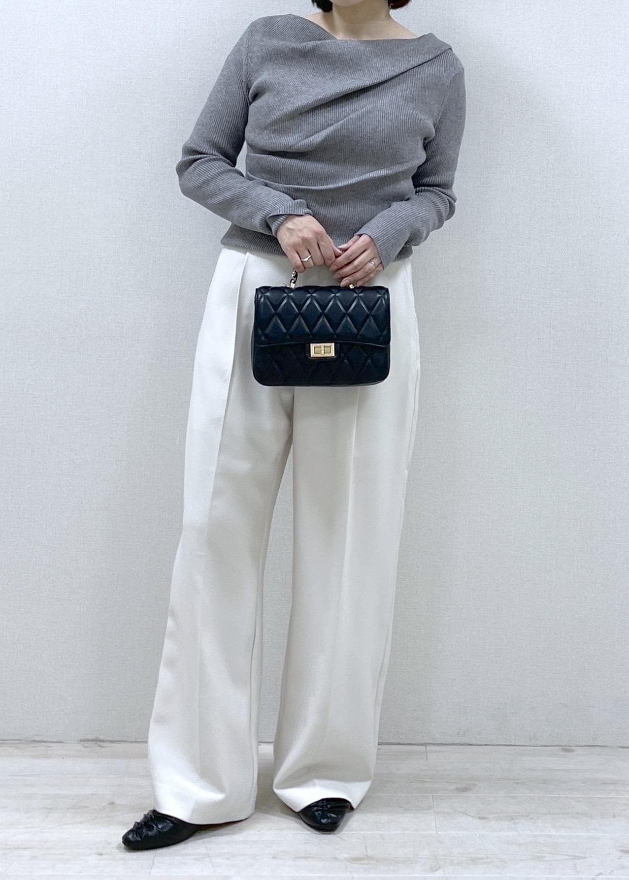 履き心地もとても楽で、太すぎないワイドシルエットは、どんなトップスとも相性がよく、オンオフで着回しできます。