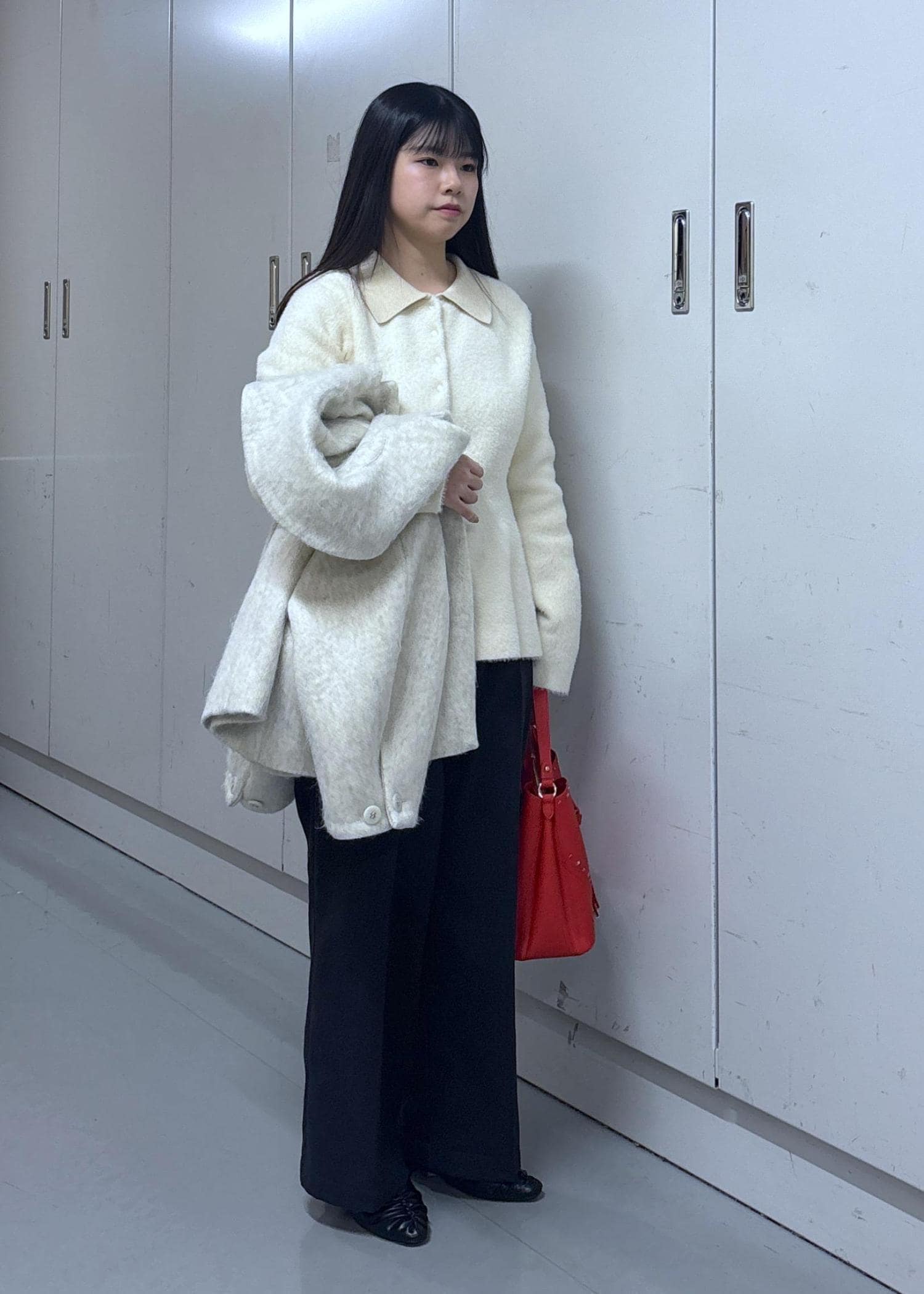 予約VIS【アウター総選挙1位】ビッグカラーモモンガシャギーショートコートオフホワイト / S¥10,989レビュー153cmでSを着用しました。