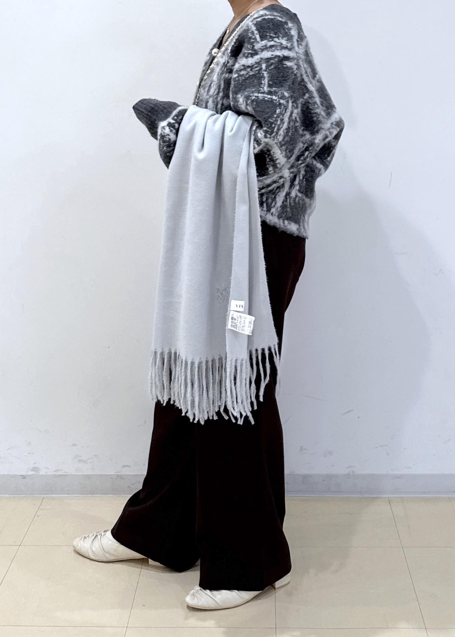VISなめらかタッチ刺繍入りストールライトグレー / F¥3,289レビュー程よいボリューム感のマフラーなので骨格ストレートの私でも首周りのボリューム感を気にせずつけられます◎