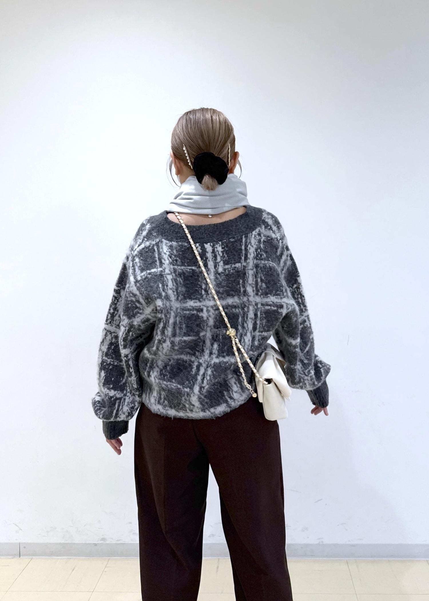 VISチェックアソートシャギーニットカーディガン/セットアップ対応グレー / F¥6,589レビューふわふわしたシャギーのカーディガンです。