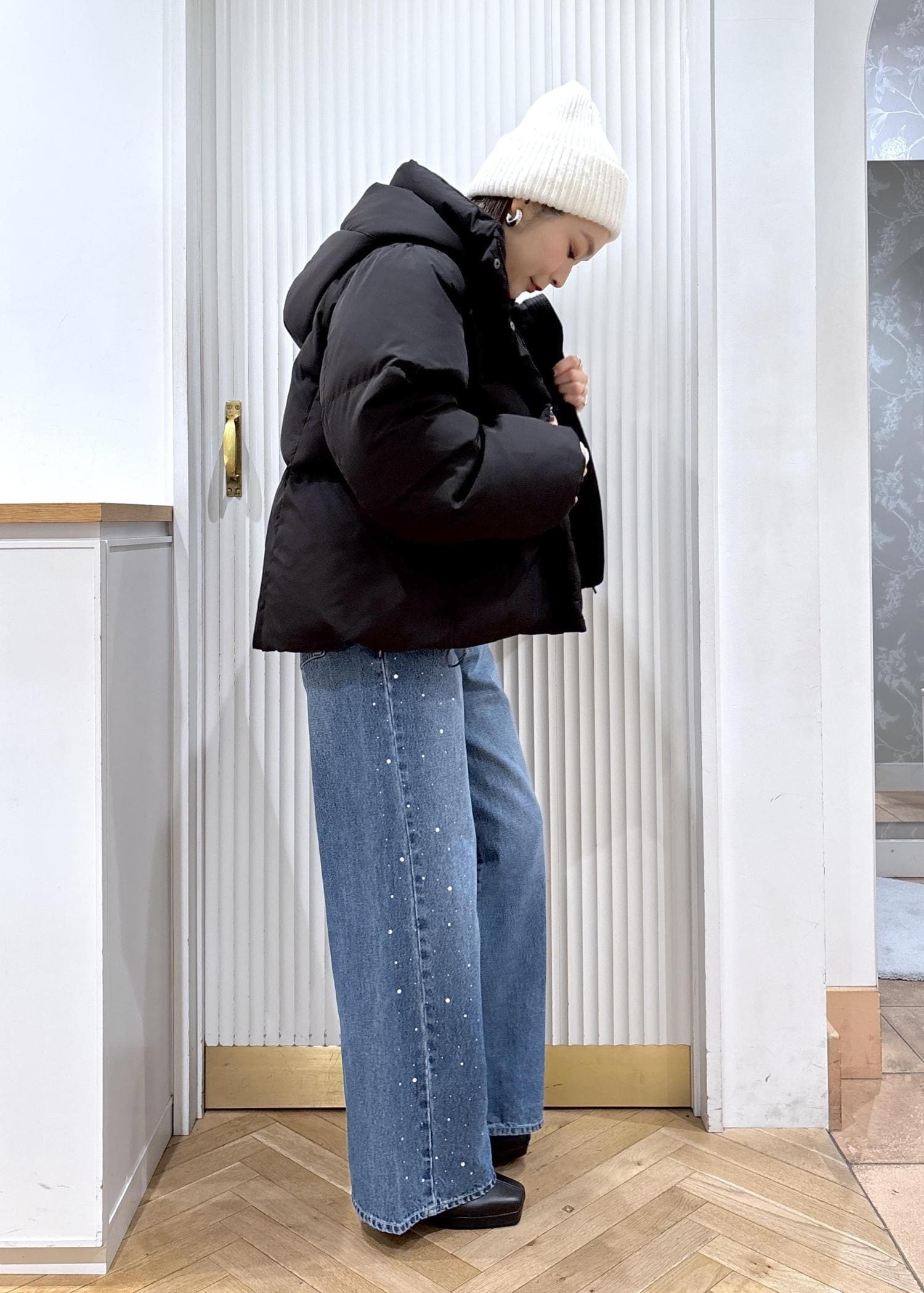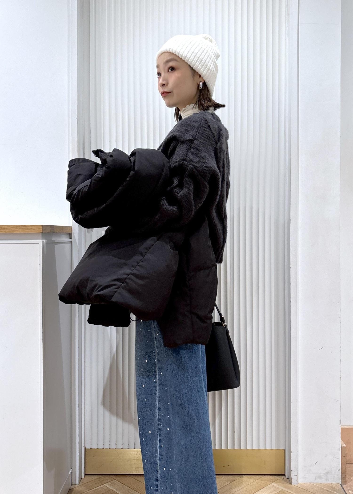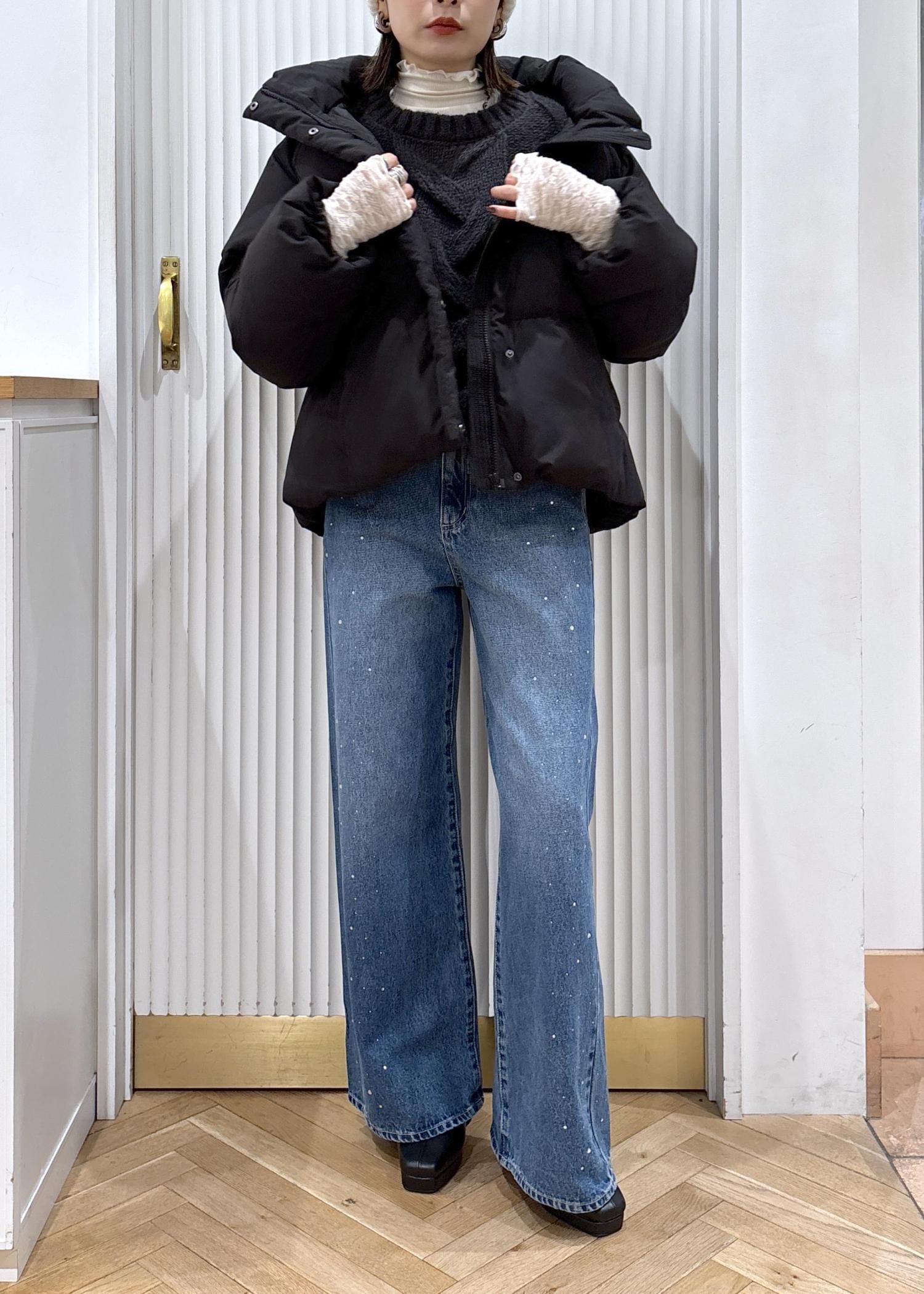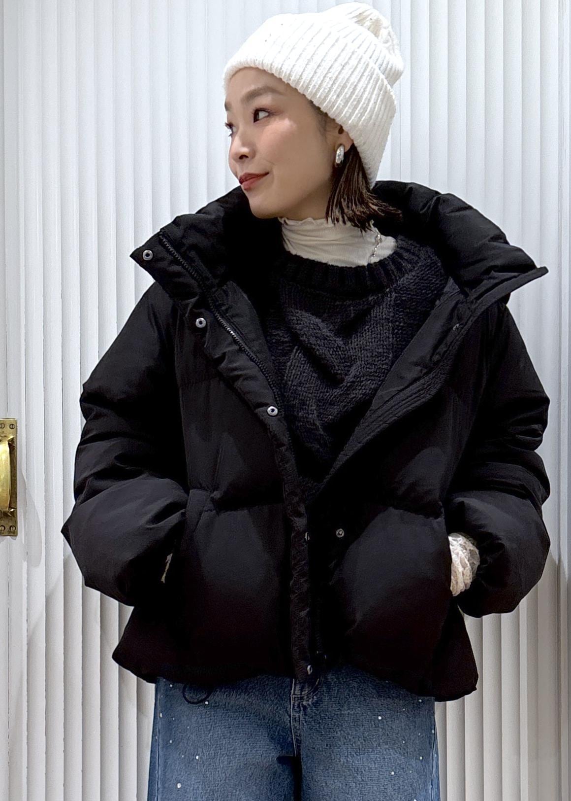 しっかりローゲージニットを着てウォーム感を出したらアウターはやっぱりダウンジャケットですね♡