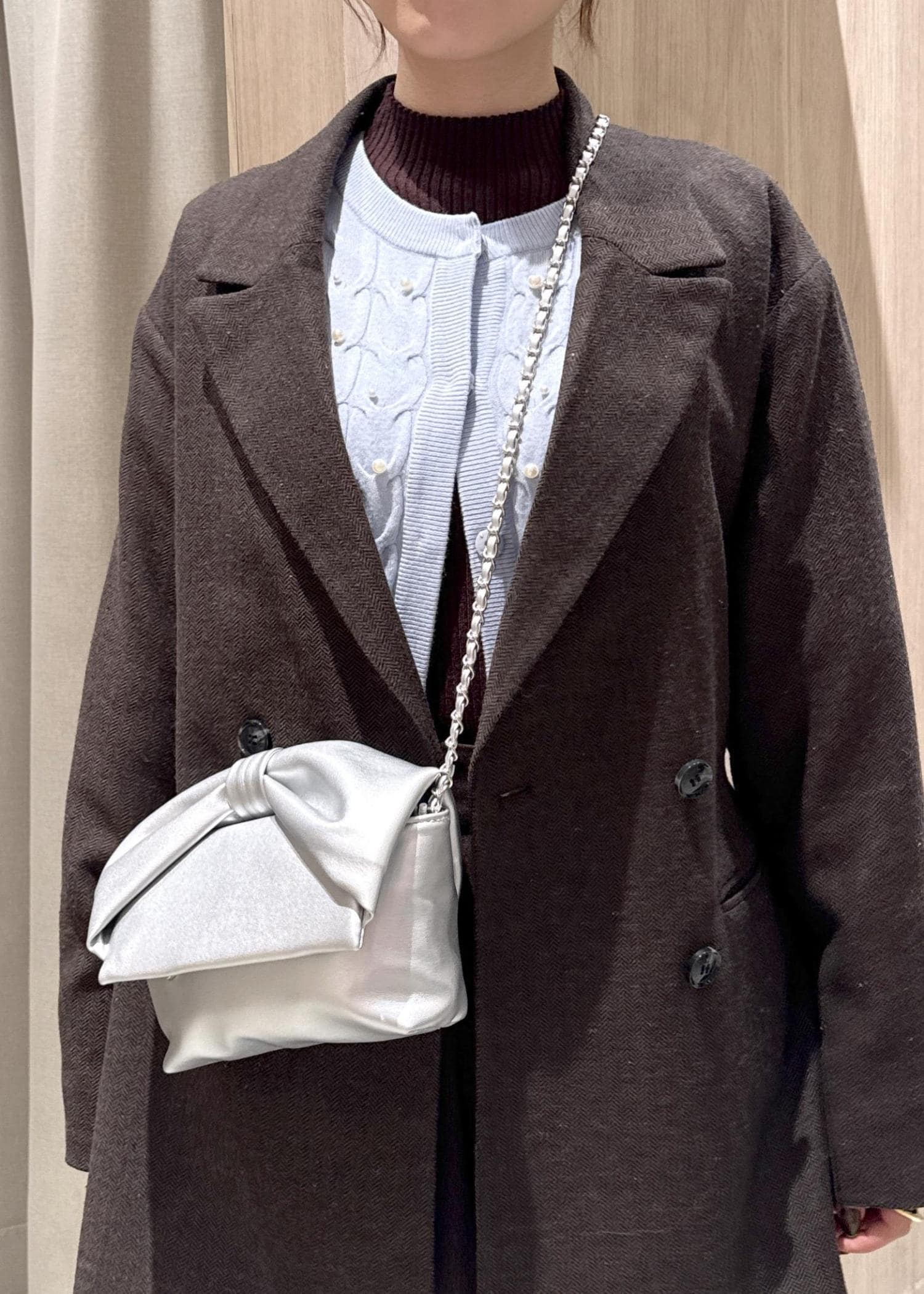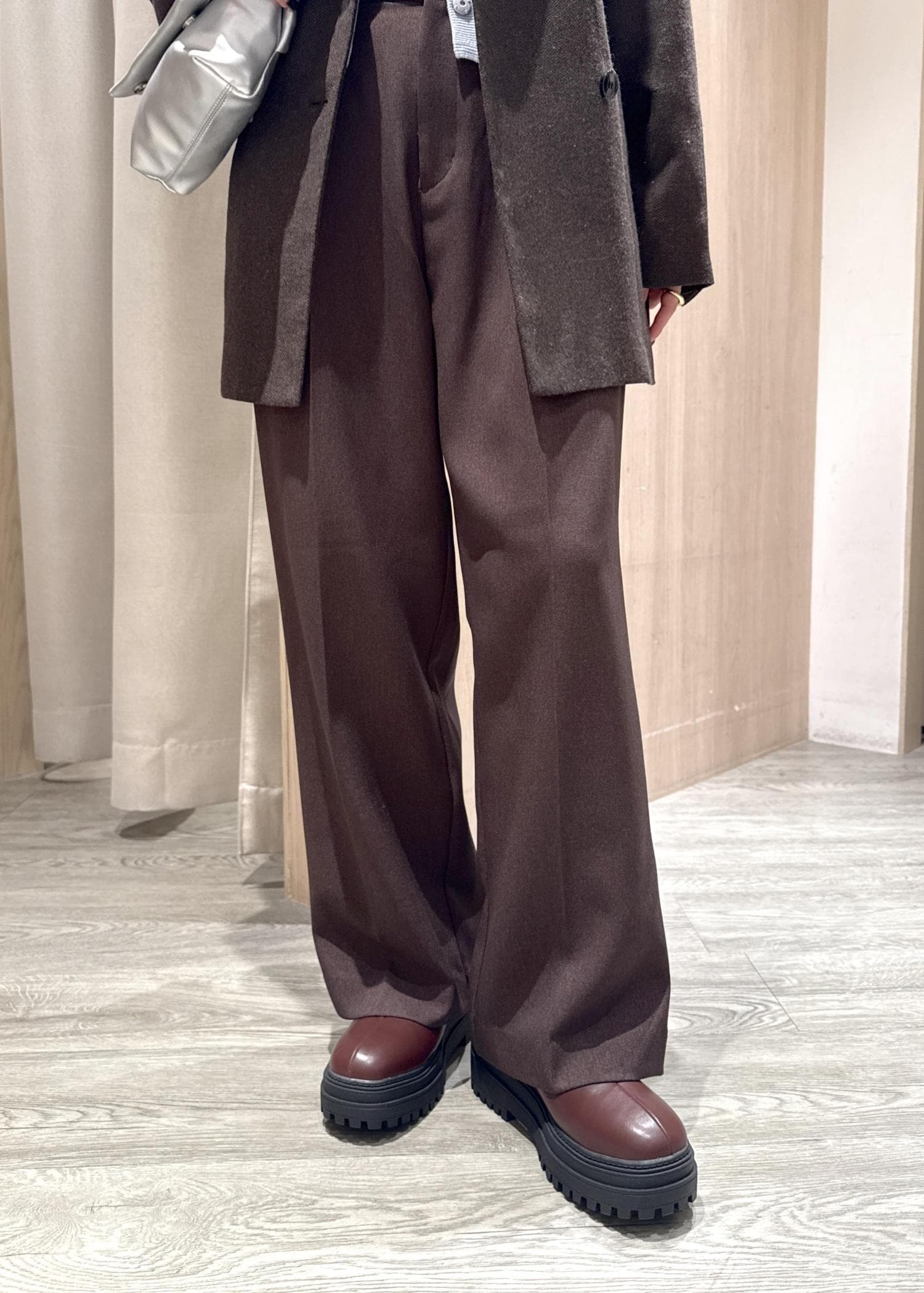 今期トレンドのブラウン×ライトブルーコーディネートです✨