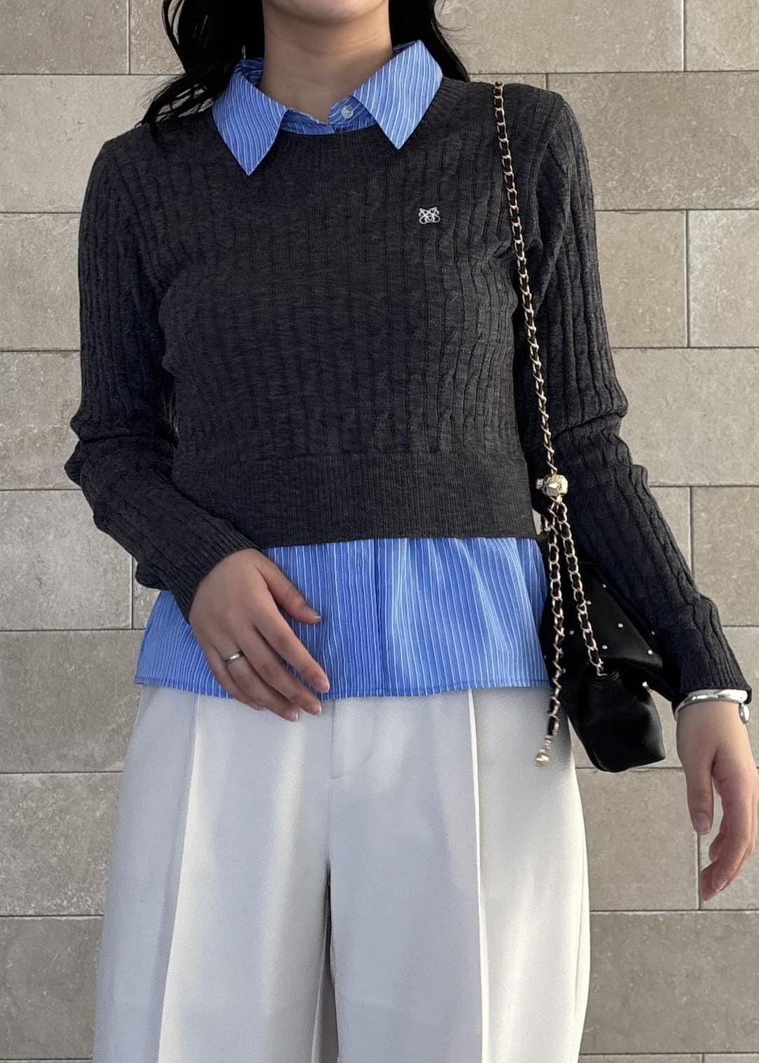 NEW! 予約VISハイゲージケーブルシャツドッキングプルオーバーチャコール / F¥5,489レビューシャツがドッキングされているニット