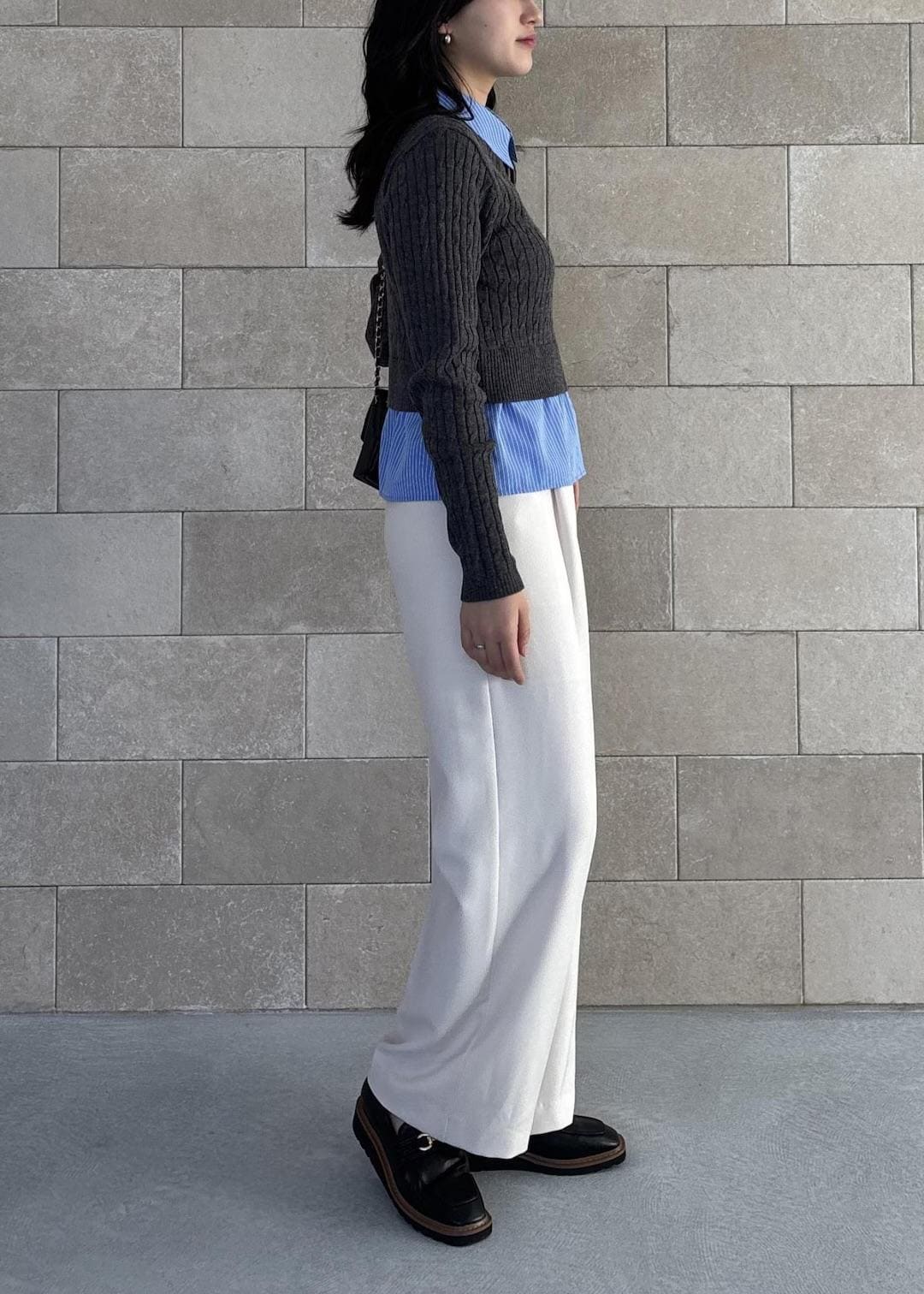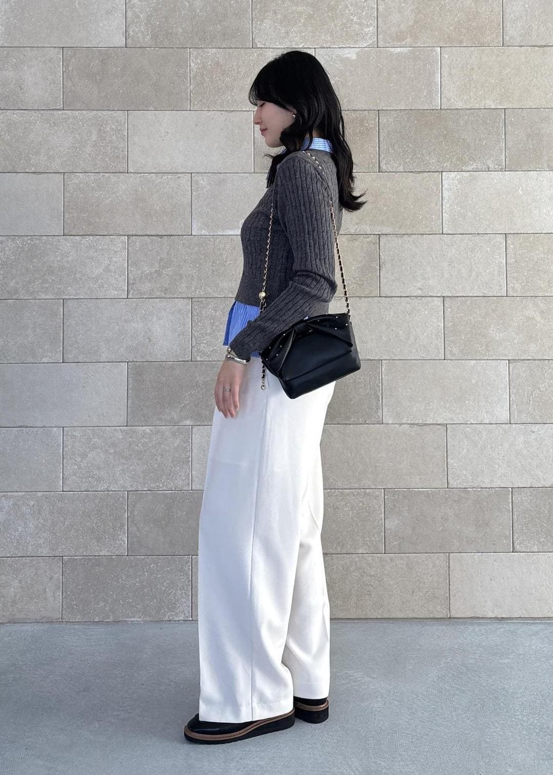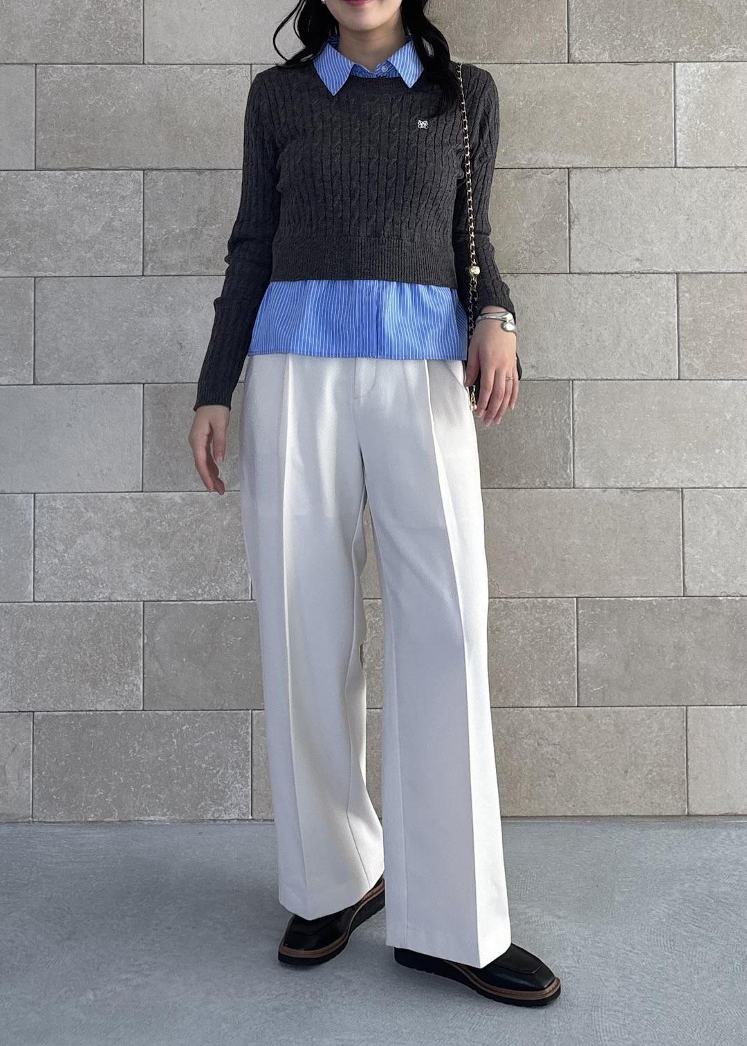 広がりすぎないワイドシルエットで、オンオフ着回せます◎