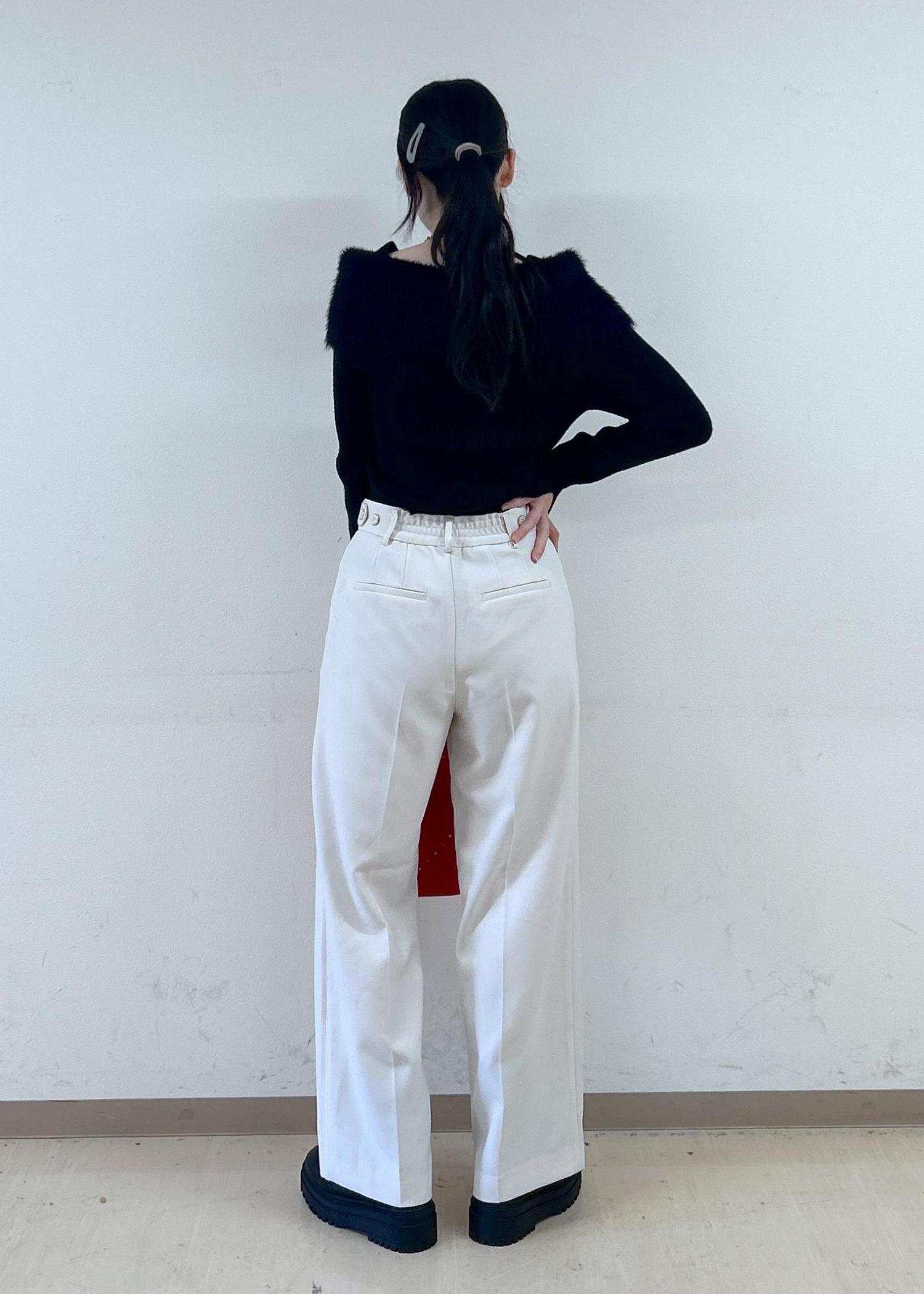 襟ぐり部分がフェザーなのでワンポイントのアクセントとなって可愛いです!ボトムインしやすい厚みと丈感なのでパンツスタイルもスカートスタイルも着映えさせてくれます。 -