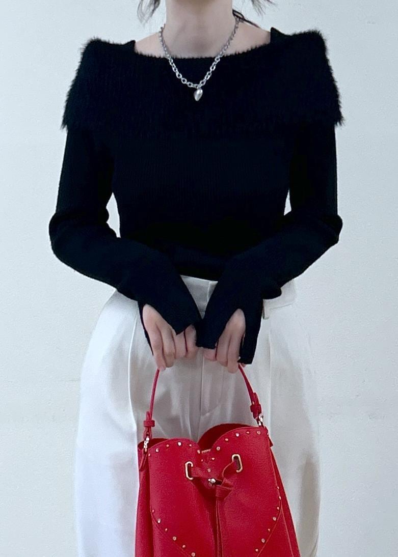 VISフェザーヤーンオフショルもちもちリブニット/イージーケアブラック / F¥5,929レビューモチモチした生地感で触り心地抜群です☺︎
