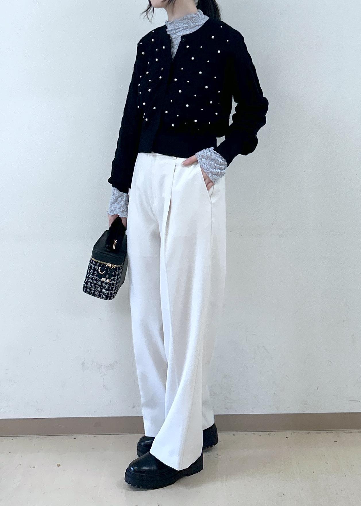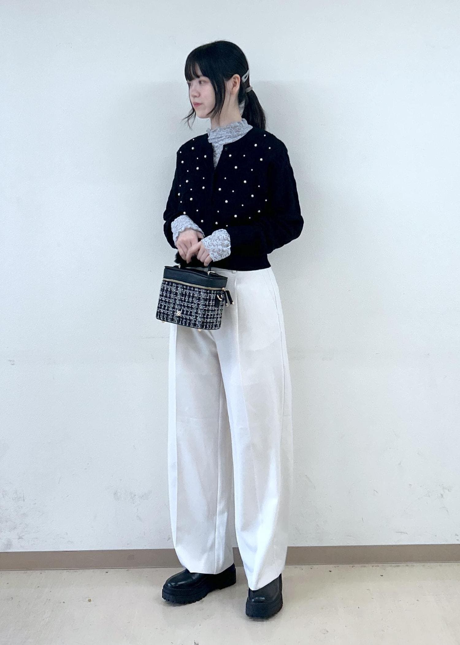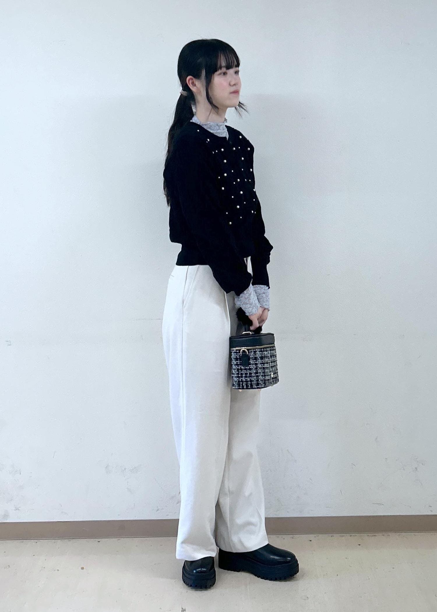 VISパールケーブルカーディガンブラック / F¥6,589レビューたくさんのパール&柄編みで華やかガーリーなカーディガンです♡比較的コンパクトな作りなので上半身をキュッと見せてくれます。アウターを上から羽織ってもゴワゴワしにくく、プルオーバーとしても着用いただけます♩
