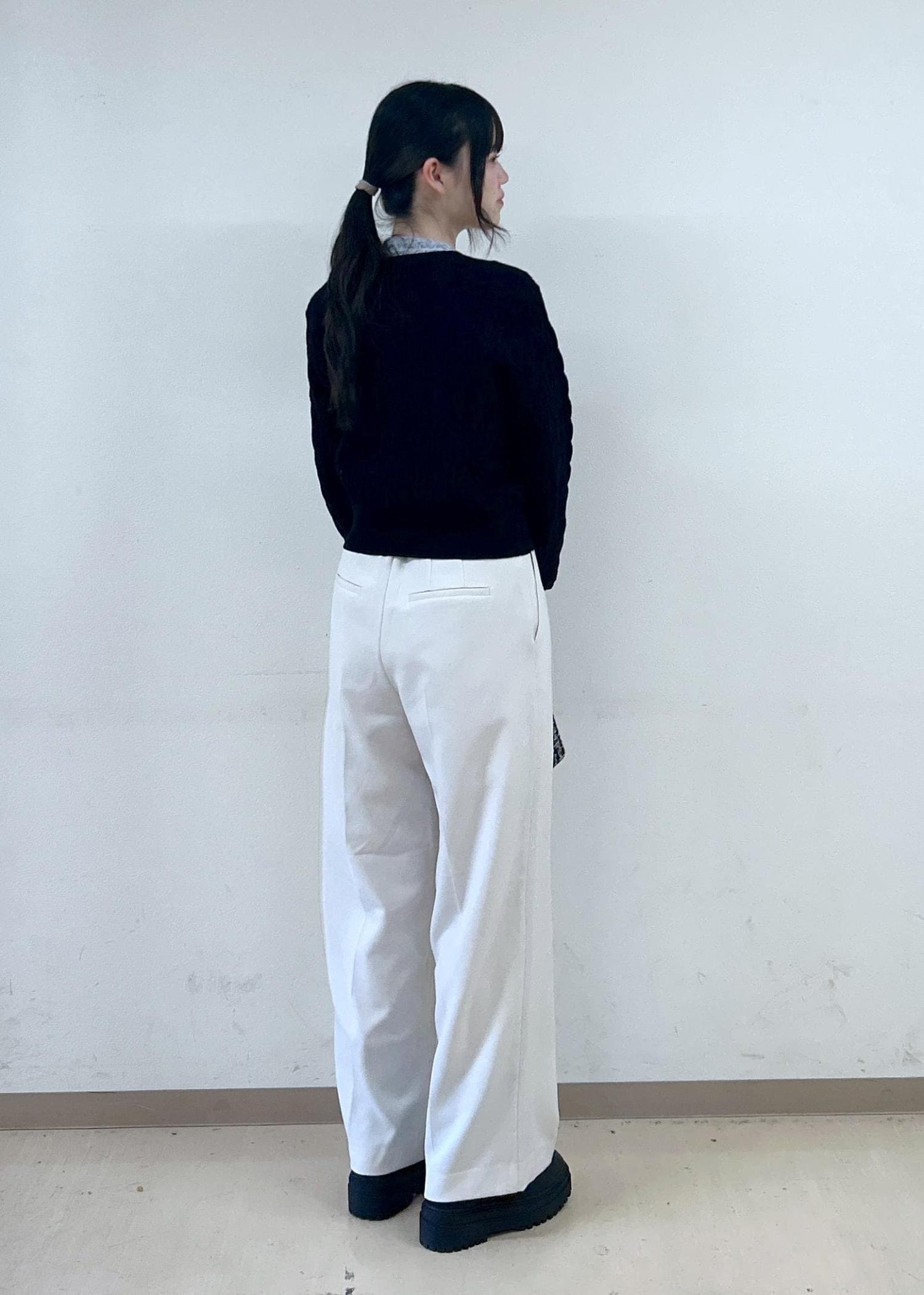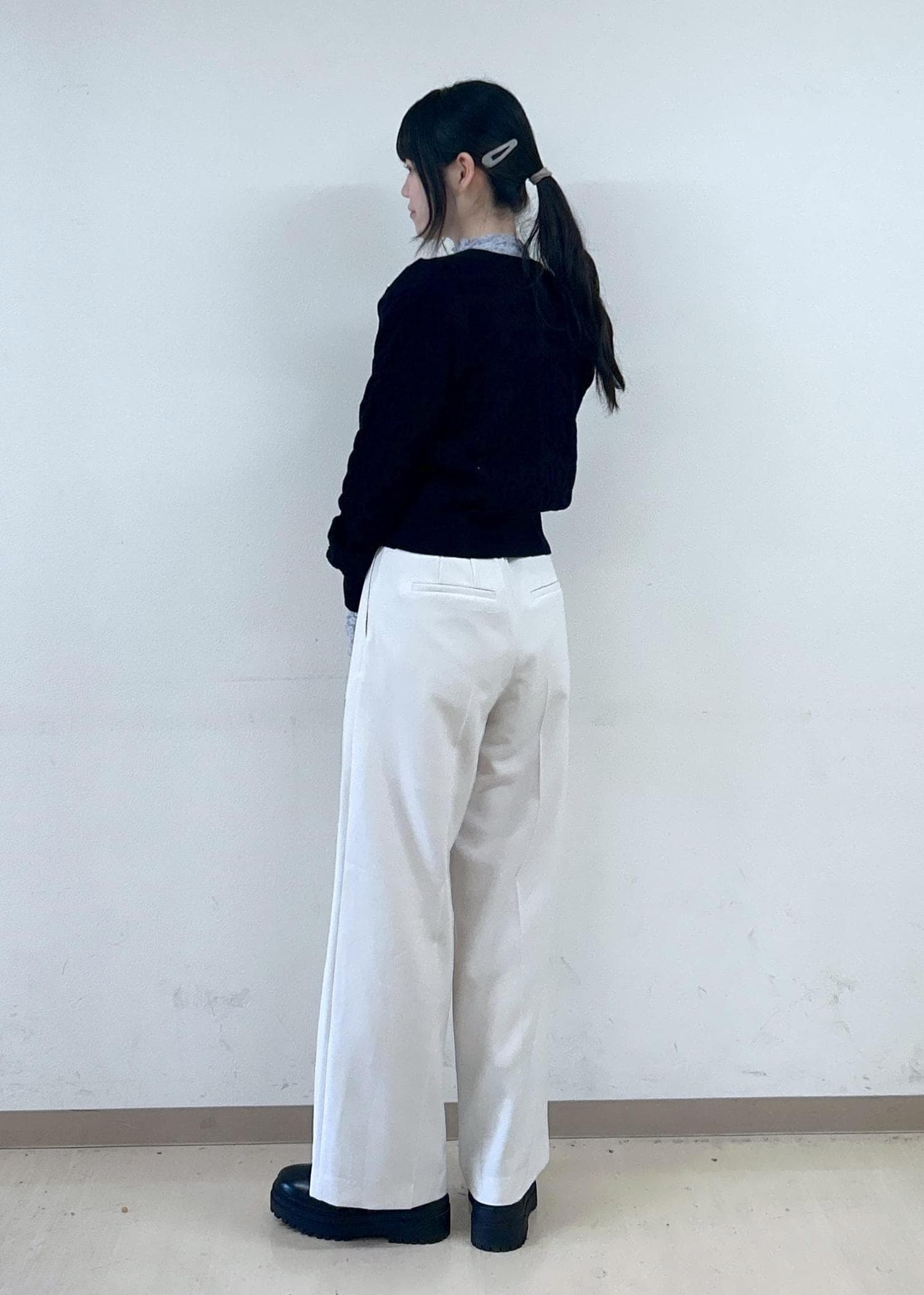 VIS【美easy】ウーリッシュワンタックワイドパンツ【セットアップ対応/洗える】オフホワイト / M¥6,589レビュー人気の美easyシリーズ!ウールの様な質感ですが実際はポリエステルでできており洗濯可能&シワになりにくいです!袖をまくってあえて裏地の色や柄を見せても可愛いです♡着丈は身長166センチでお尻にかかるくらいです。ラフすぎないけどややゆとりを感じるサイズ感だったのでお仕事にもプライベートにもおすすめです◎