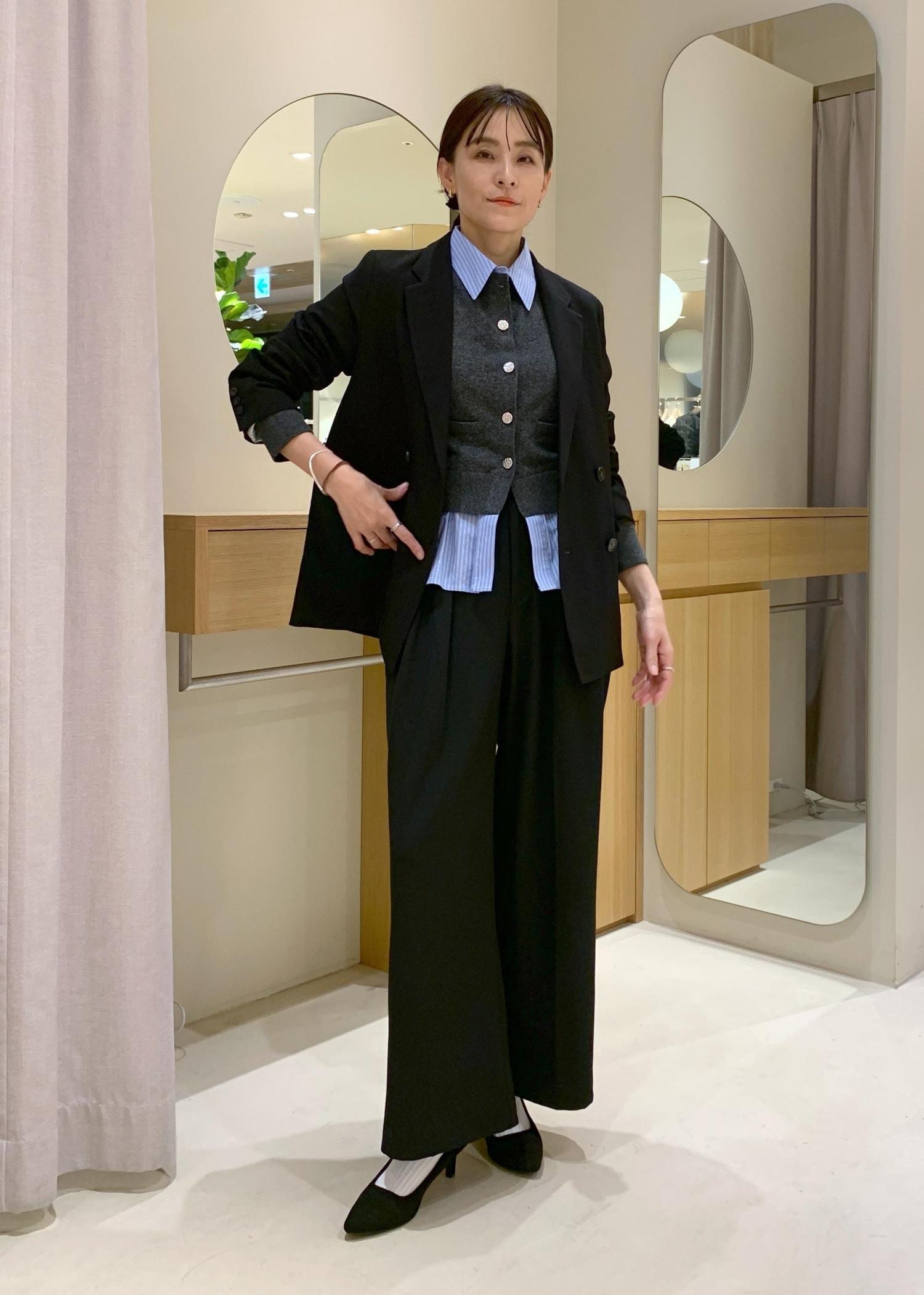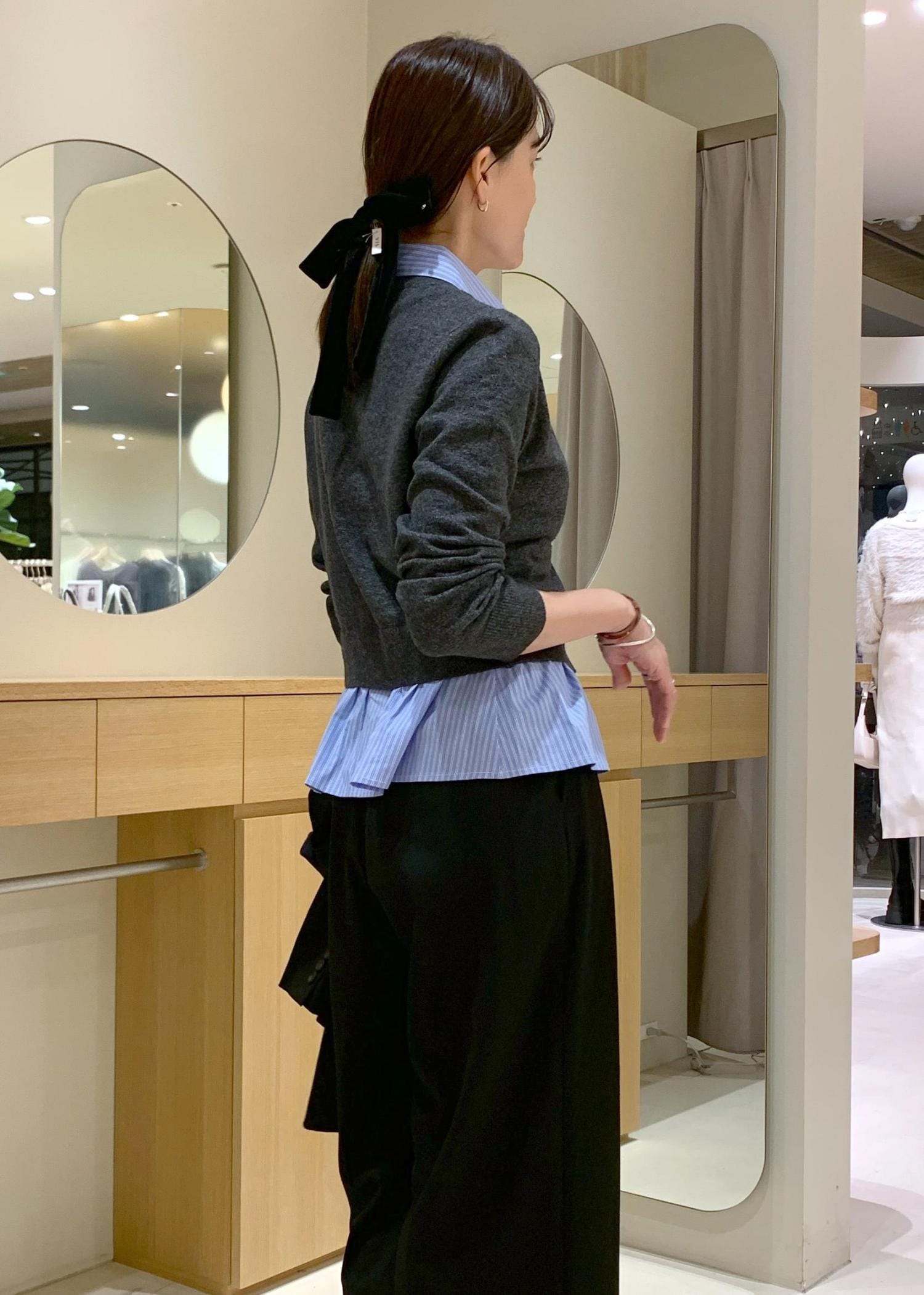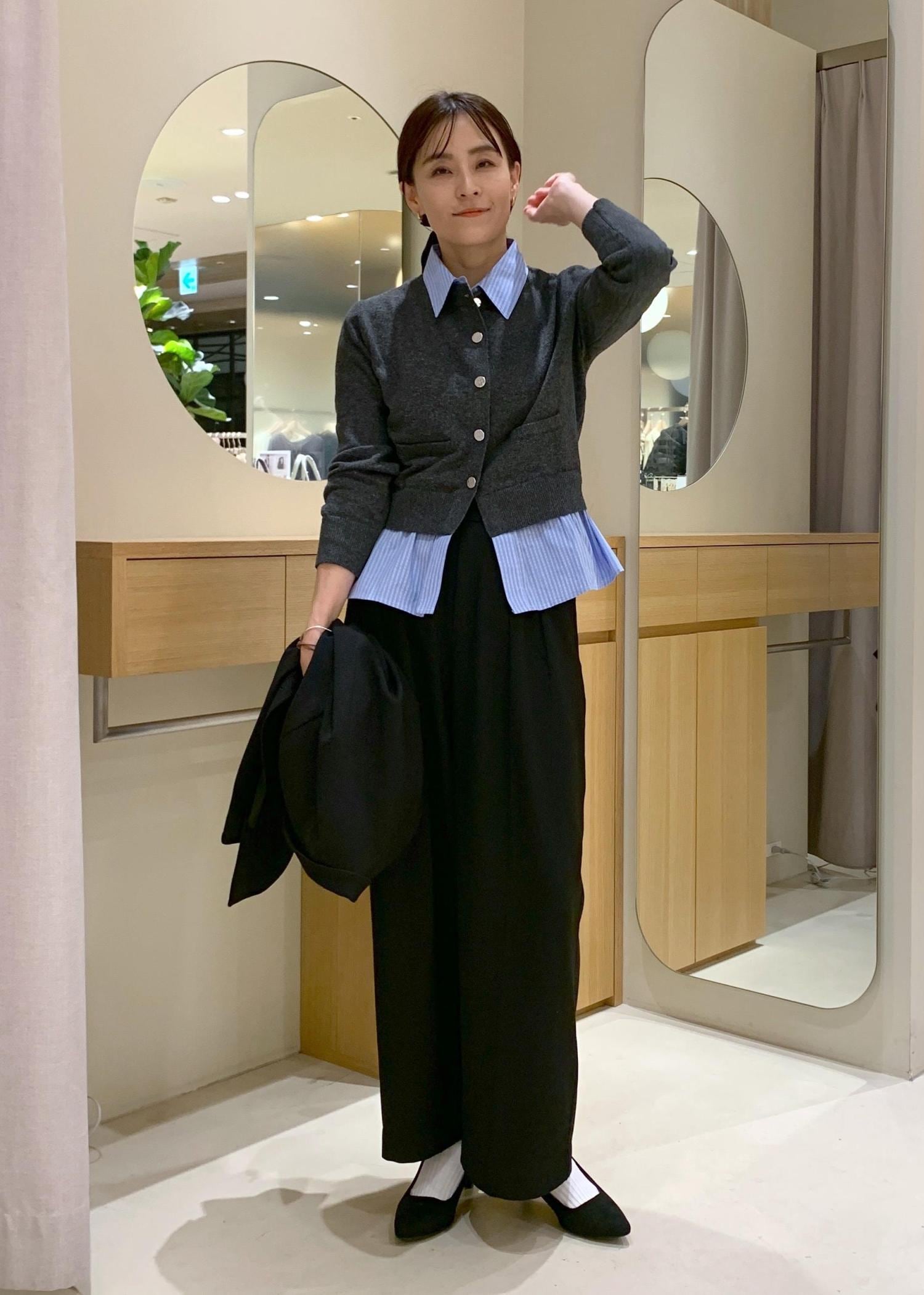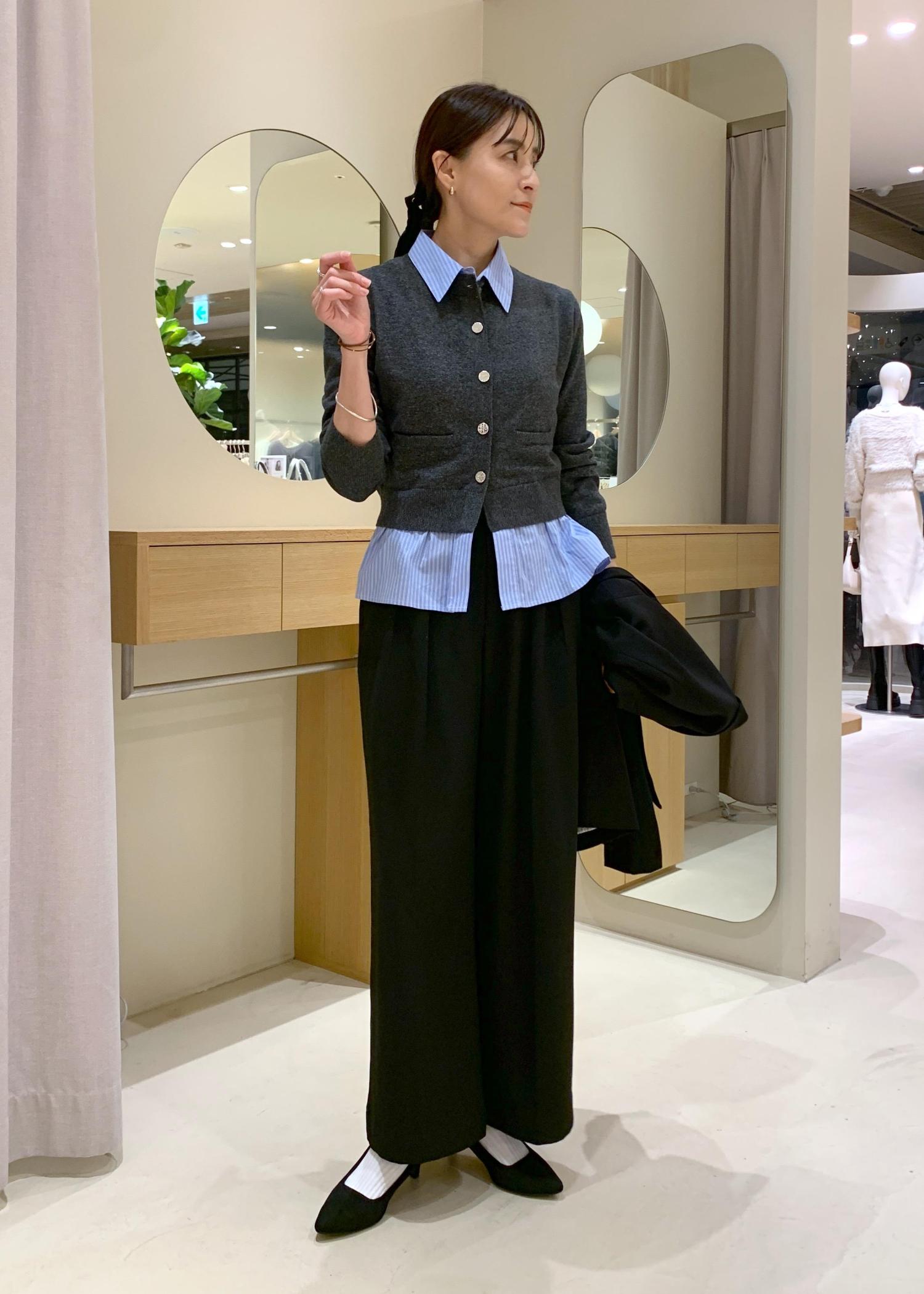 インナーは肉厚すぎるニットだと着膨れしてしまいますが、ハイゲージニットだと収まりがいいです。 -