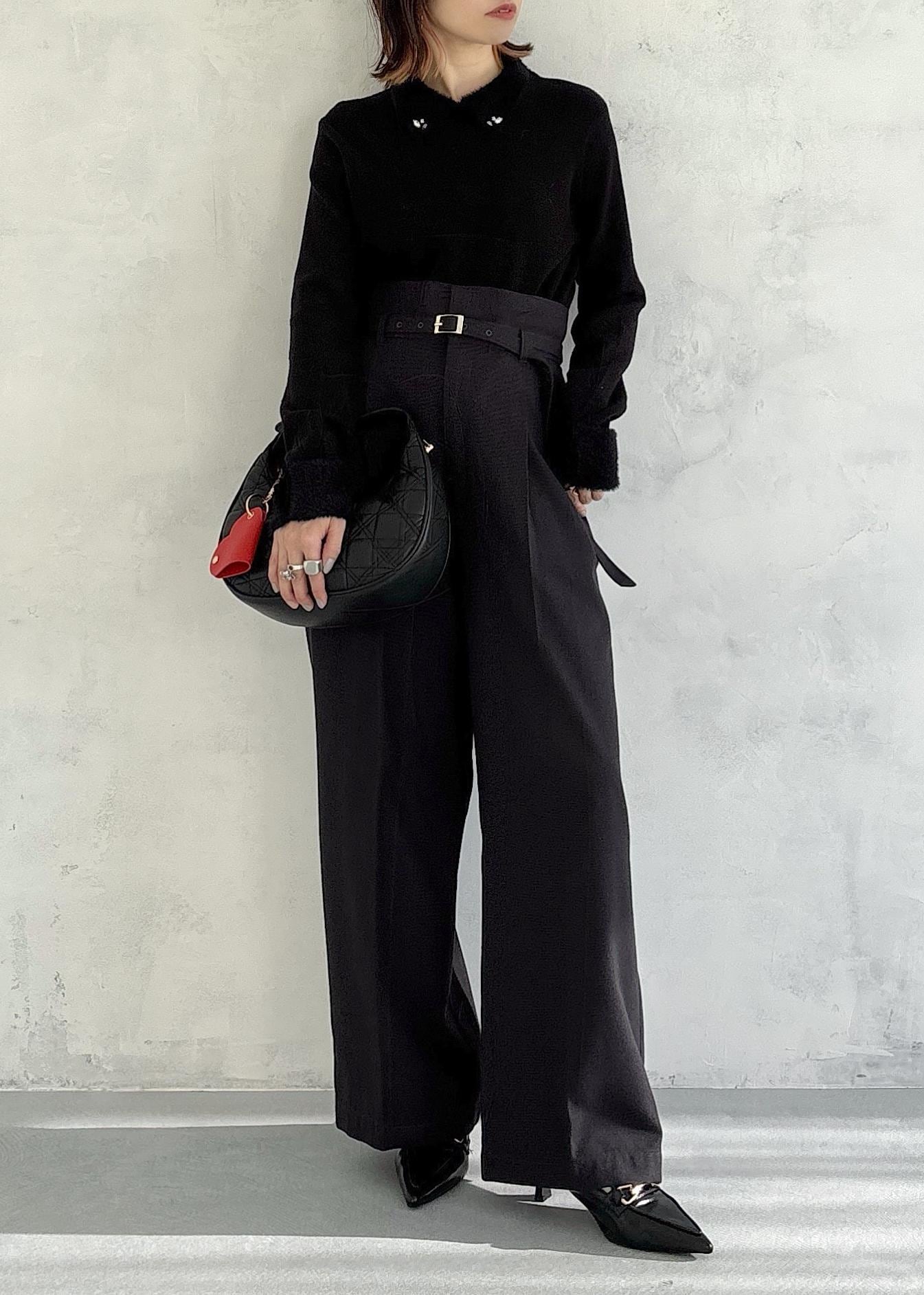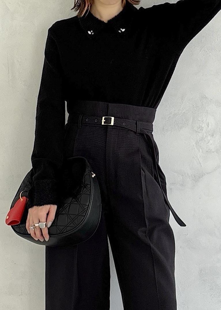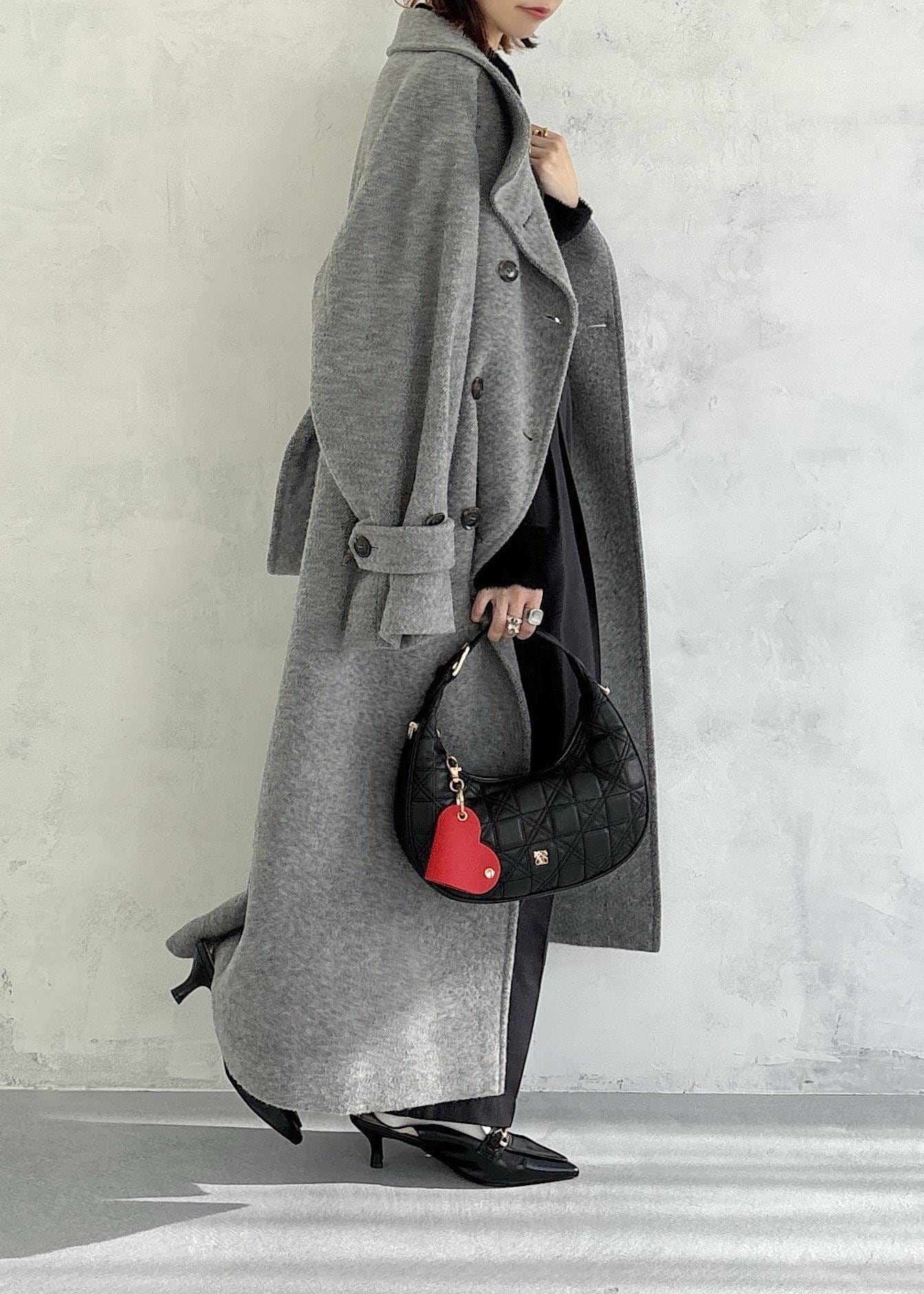 冬の人気コート、尾州ウールのロングコートは軽くて柔らかく、何より暖かくて冬欠かせないアイテムです♪今回はお仕事でキチンとした印象に見えるよう、ダークトーンでスッキリとしたニットとハイウエストのパンツでまとめました◎冬オススメのオフィスカジュアルコーデ。