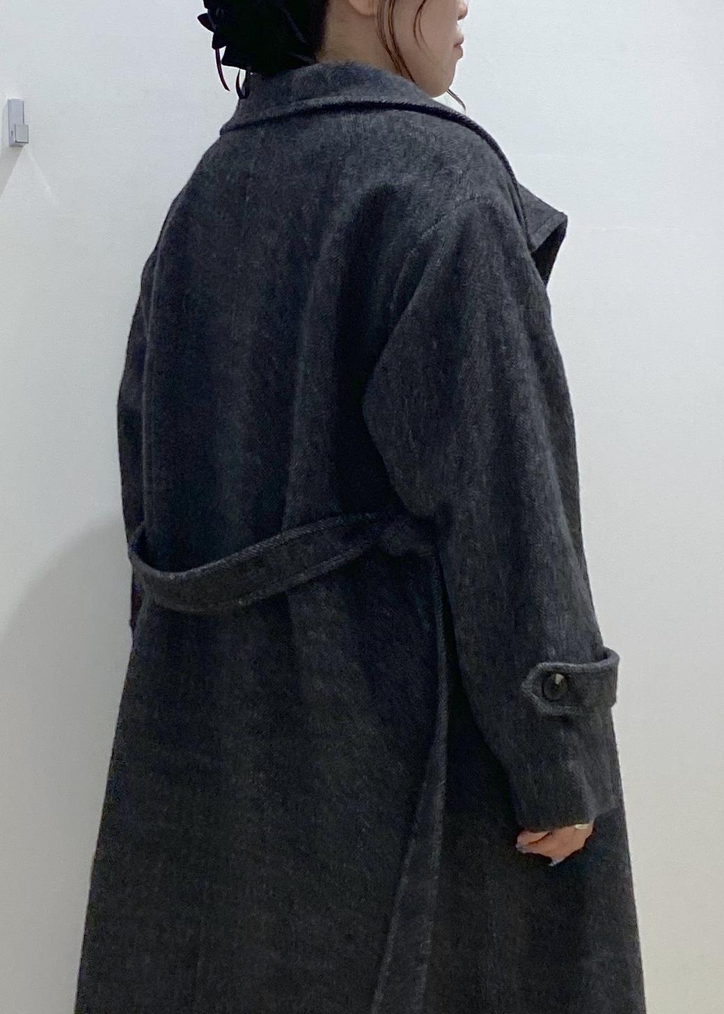 VIS尾州シャギースタンドカラーロングコート/静電気防止・WEB限定PS・TMサイズチャコール / M¥21,890レビュー168cmでふくらはぎに少しかかる丈感です。
