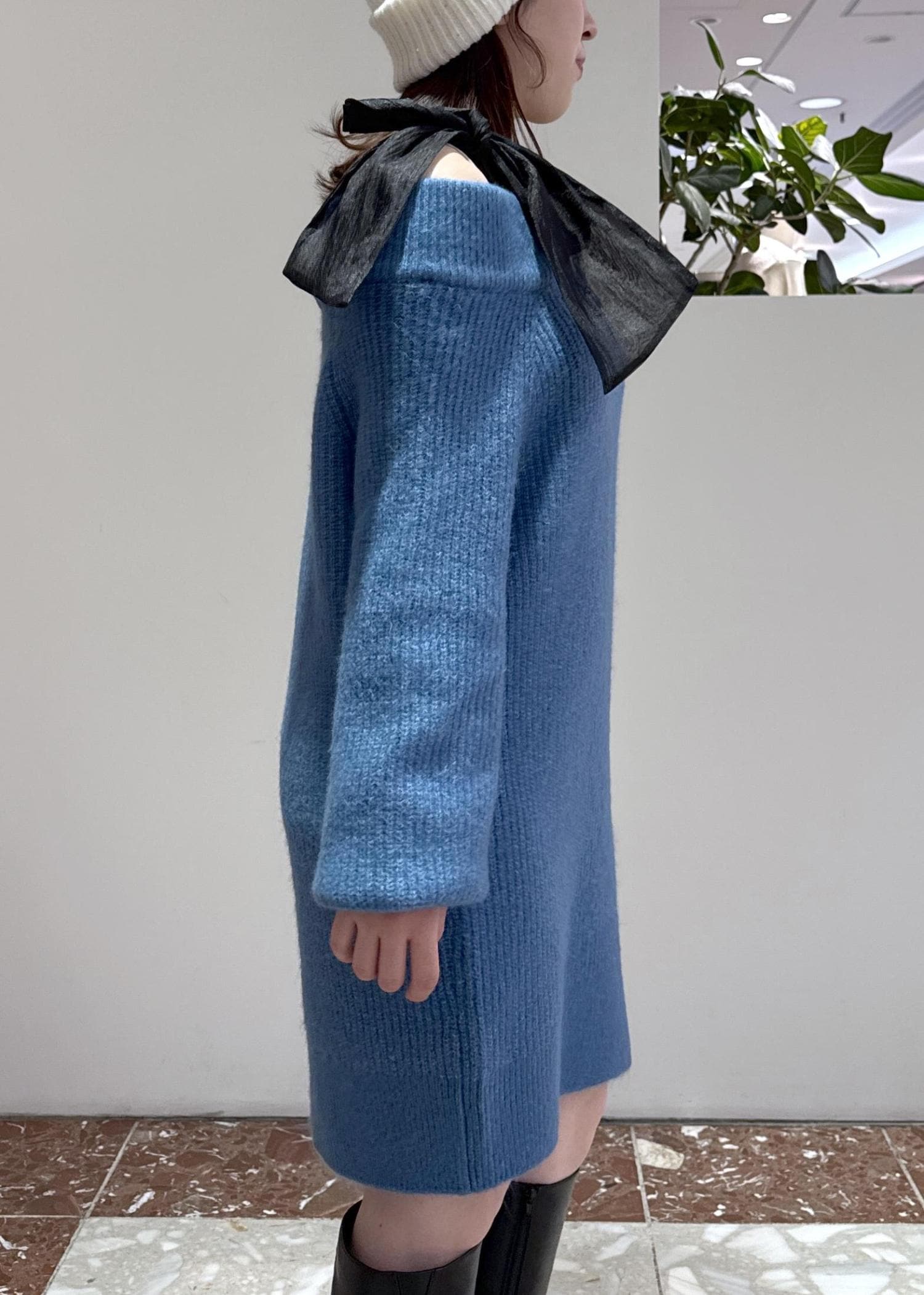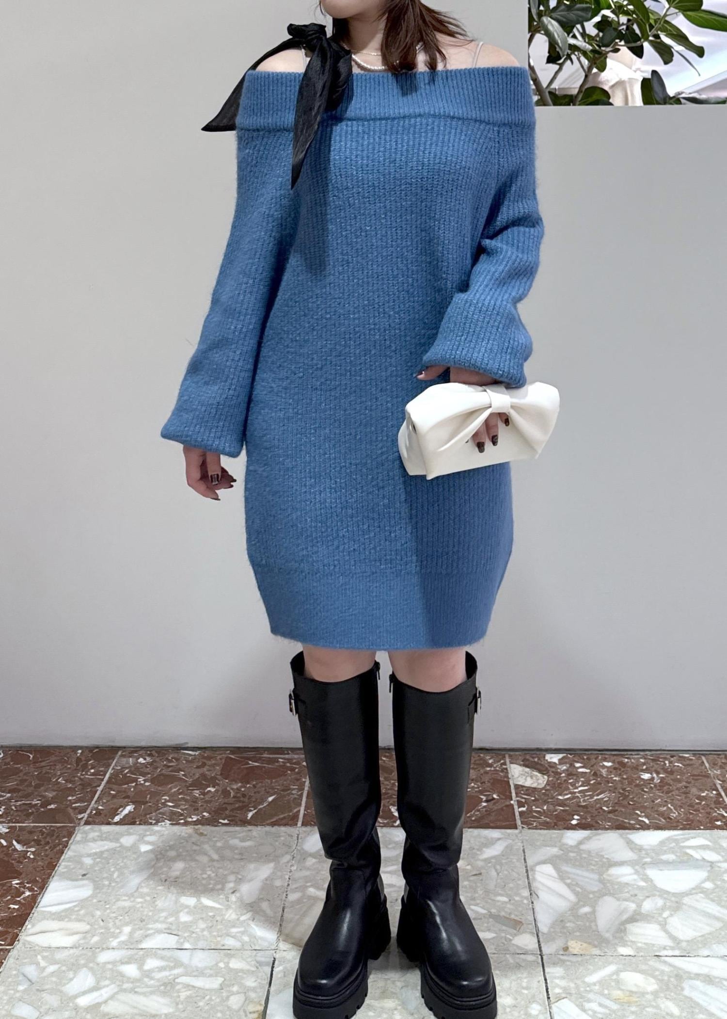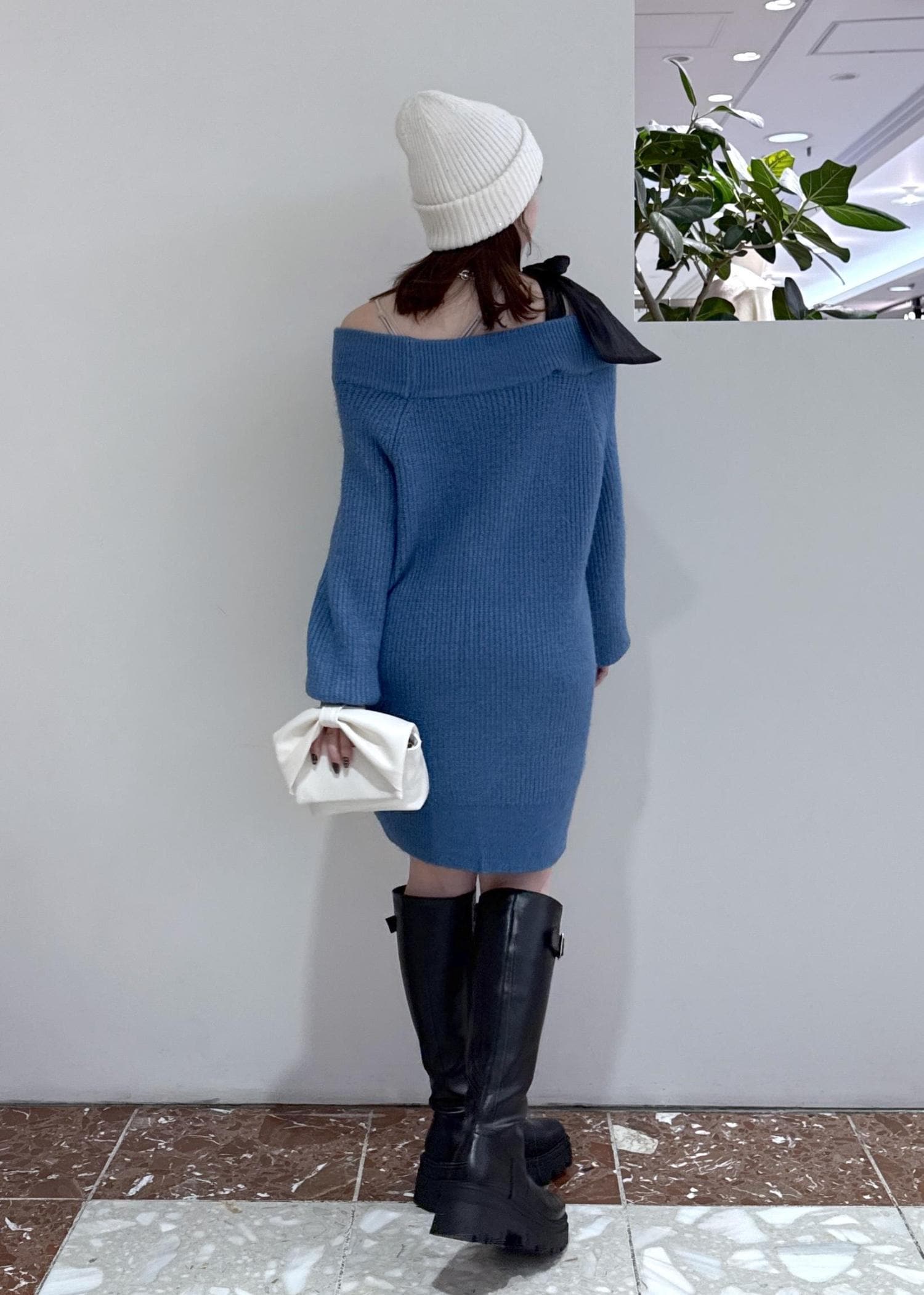VIS肩リボンミニ丈ニットワンピース/2WAYブルー系 / F¥7,909レビュー1枚でもチュニックとしても着られます!