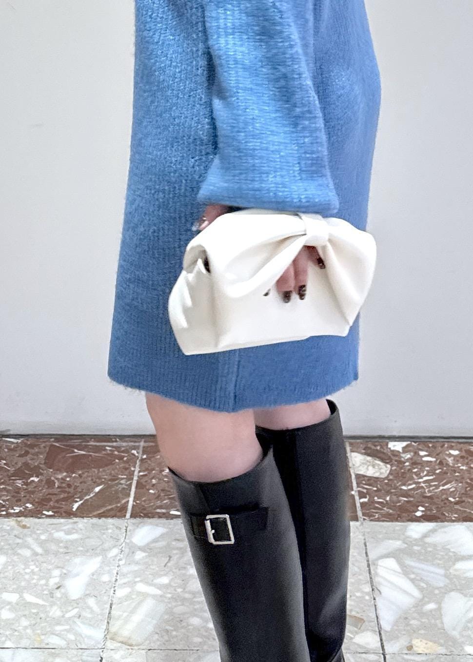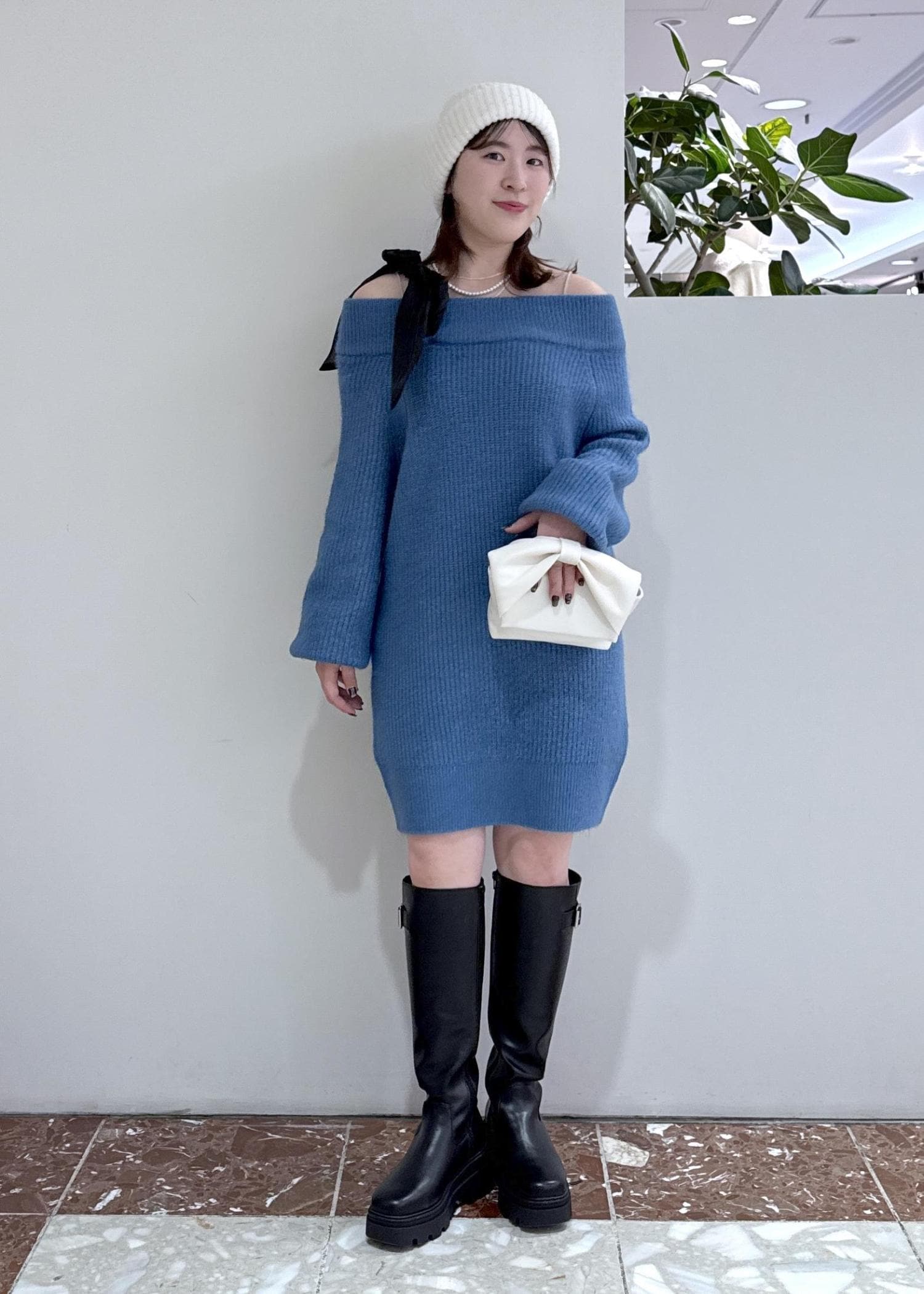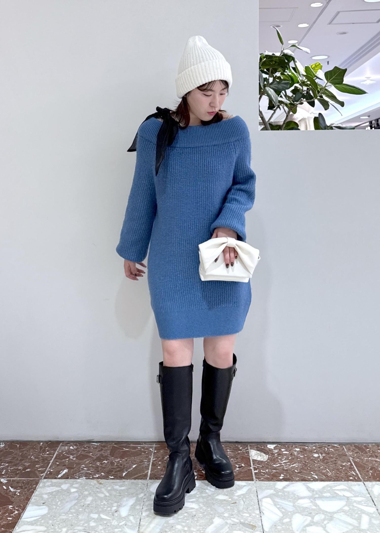 VIS肩リボンミニ丈ニットワンピース/2WAYブルー系 / F¥7,909レビュー1枚でもチュニックとしても着られます!