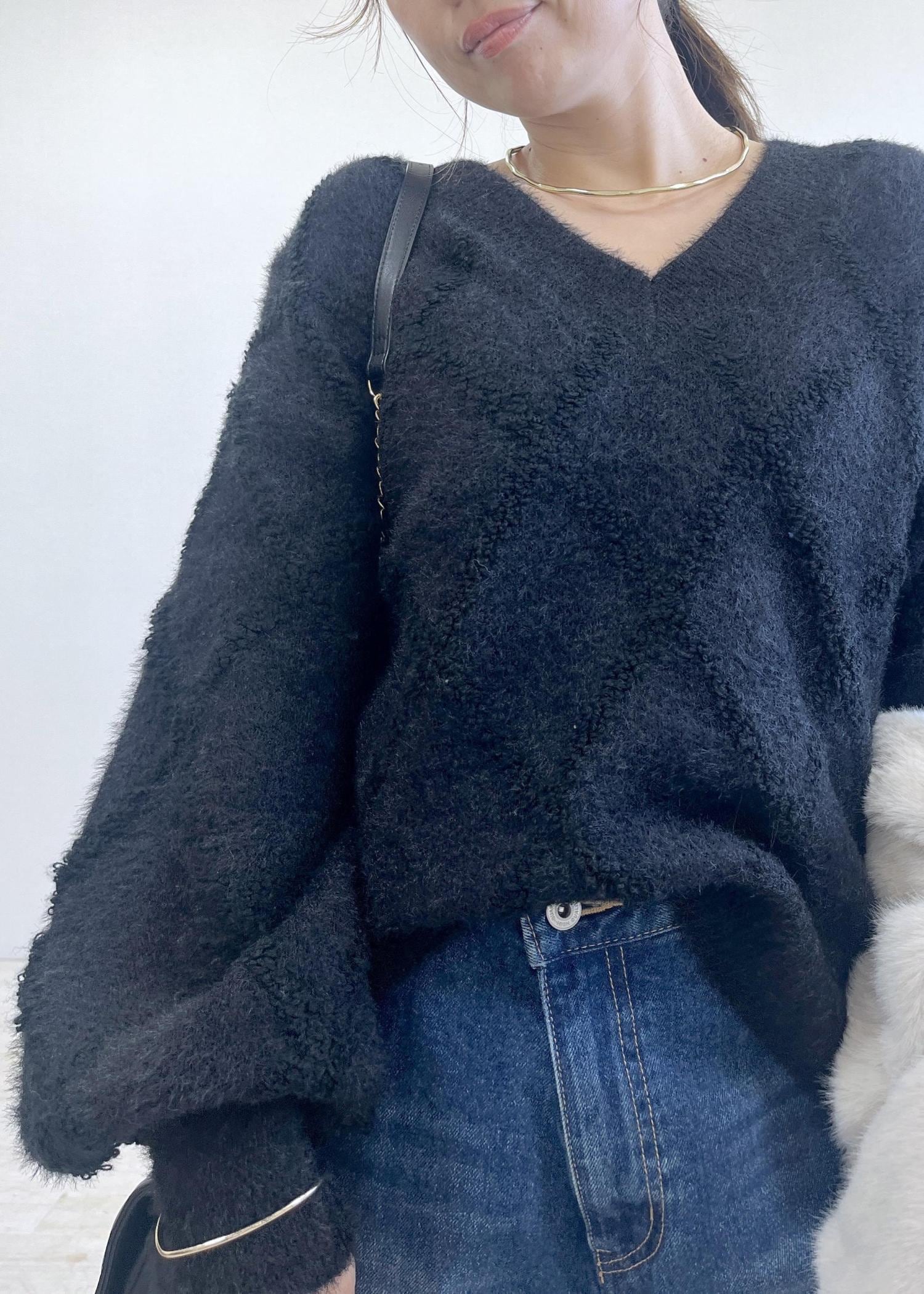 VISアーガイルフェザーニット/2WAY・イージーケアブラック / F¥6,589レビュー152cmでFサイズ着用して、お尻が半分隠れるくらいの長さ。ふわふわモチモチな素材で着心地◎素肌に着てもチクチク感は全くありませんでした。毛玉の心配いらないのでこれからの時期には嬉しいポイントです。前後2wayでお召しいただけるので印象もガラッと変わります。アーガイル柄が織り込まれているので、シンプルながらも存在感のあるトップスです。