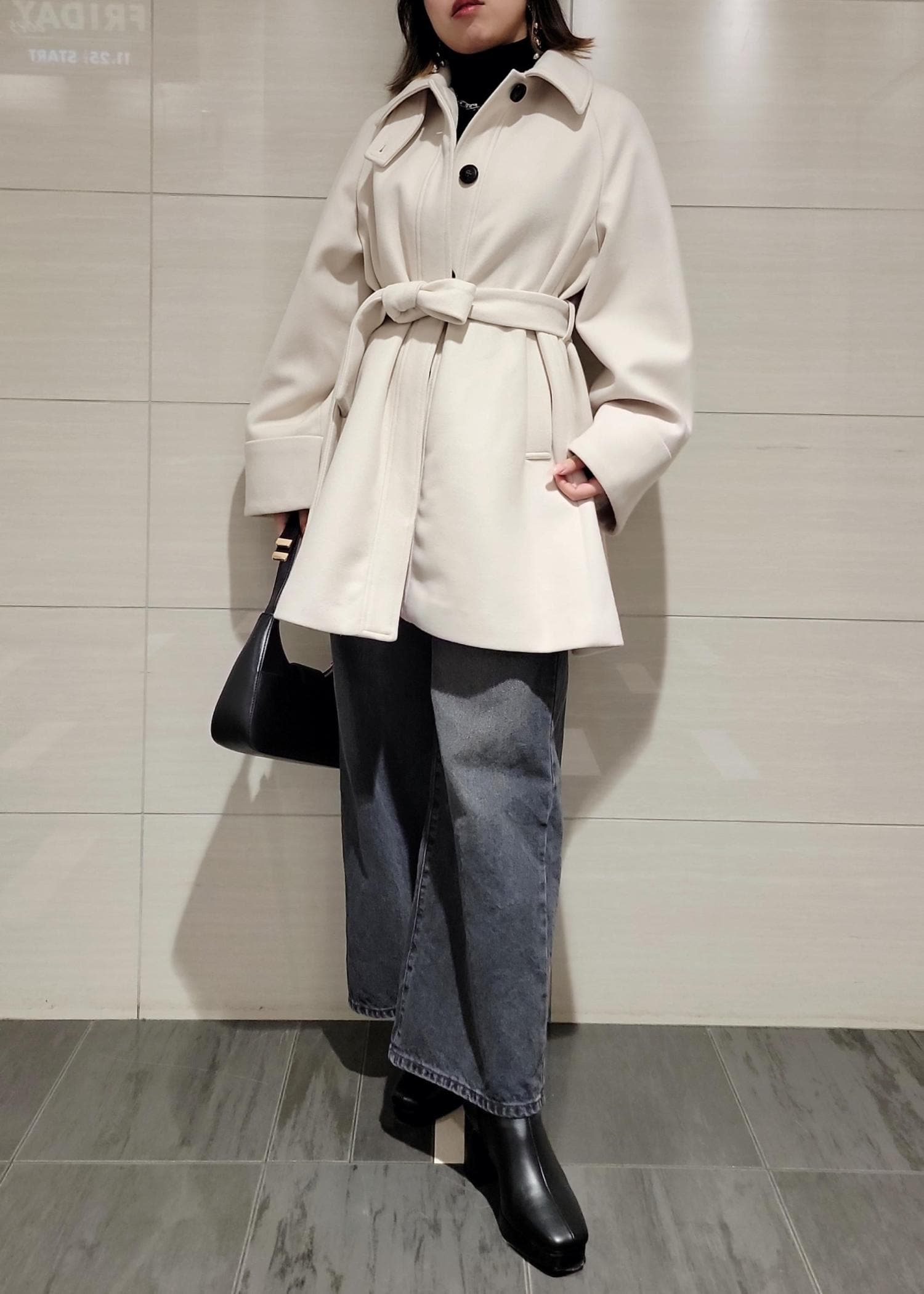 タートルネック×デニムのベーシックなスタイルにアウターを合わせ初冬のコーディネートにしました♪