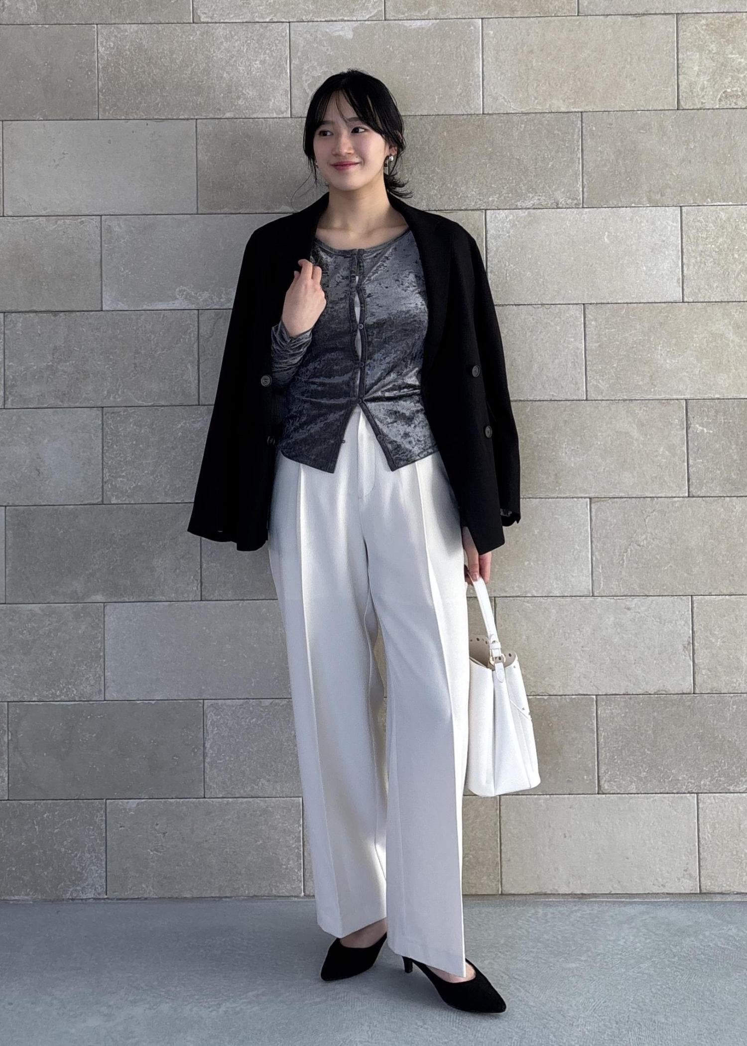 広がりすぎないワイドシルエットで、オンオフ着回せます◎