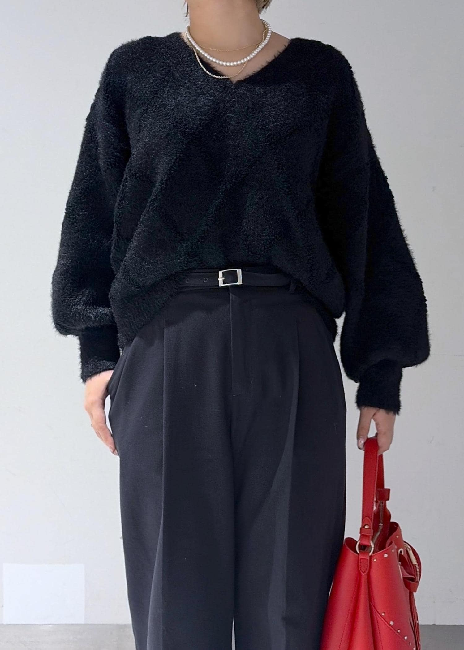 VISアーガイルフェザーニット/2WAY・イージーケアブラック / F¥6,589レビューゆったりしたサイズ感で