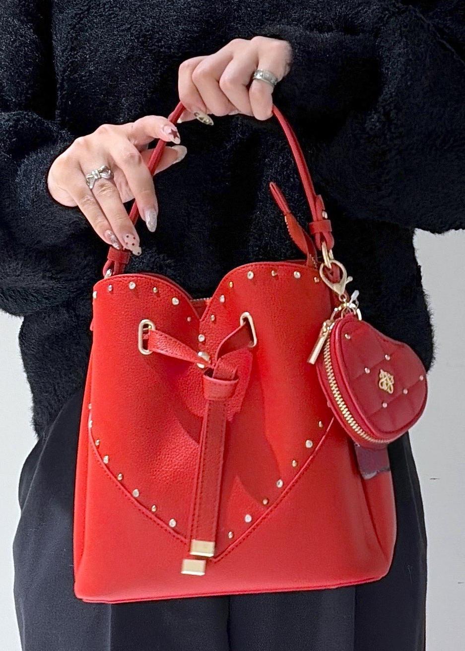 NEW!VISラインストーン&スタッズハートカットバッグレッド / F¥7,909レビュー冬らしいキラキラのビジューが可愛いです♡