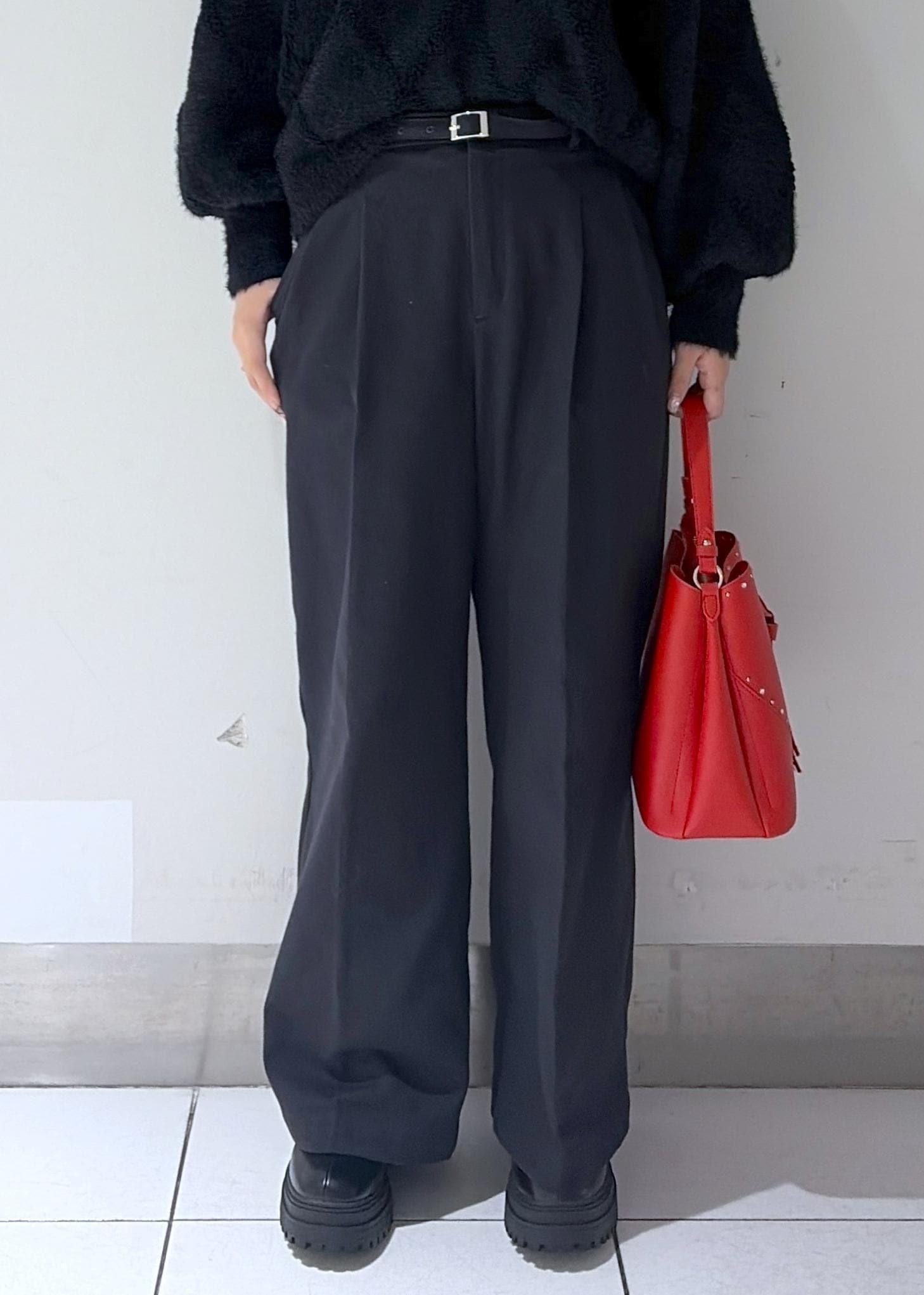 VIS起毛ウールライク版ベルトディテールタックワイドパンツキナリ / M¥6,589レビュー細すぎず太すぎないので