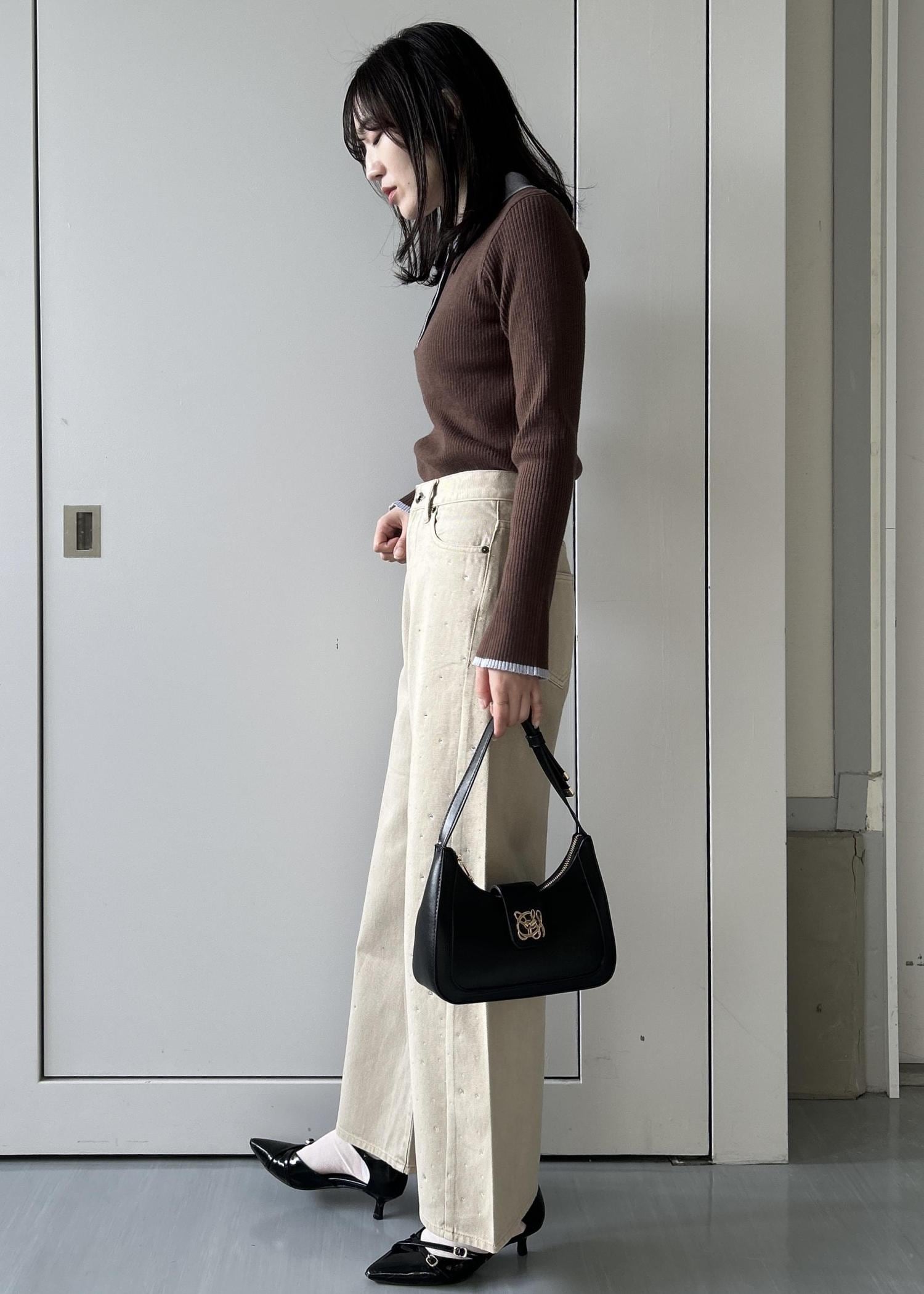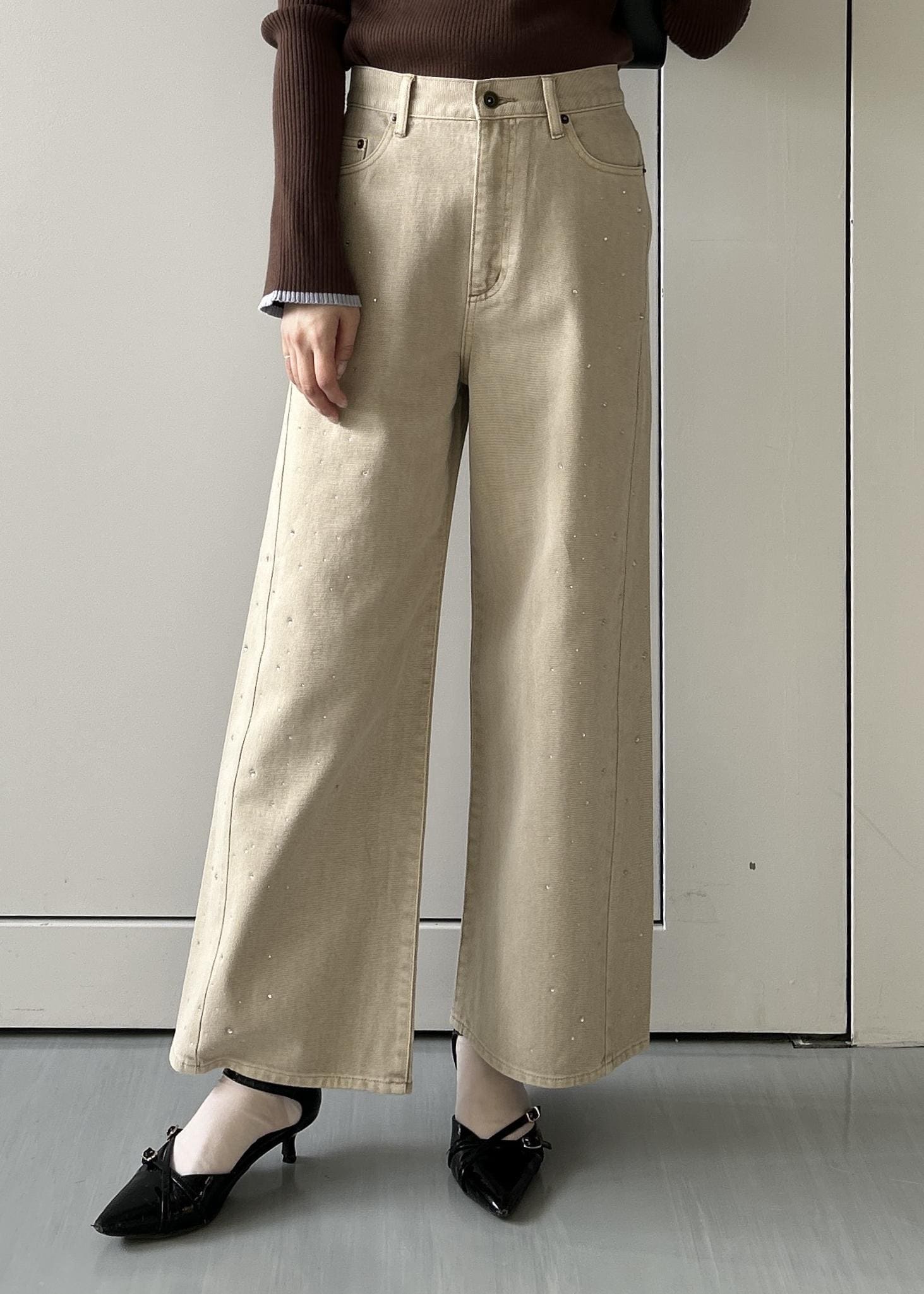 VISビジューデニムパンツベージュ / M¥7,909レビューサイドのステッチ部分に沿ってビジューが散りばめられておりさりげないキラキラ感が上品で可愛いです♡