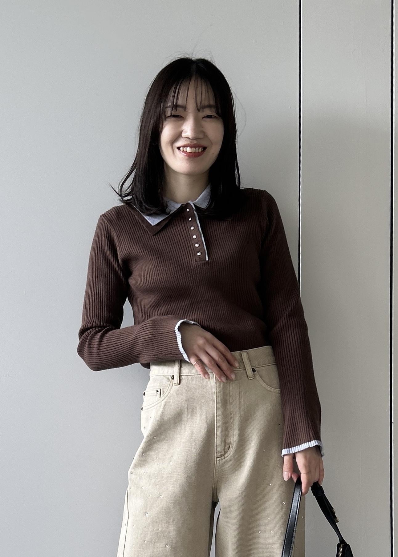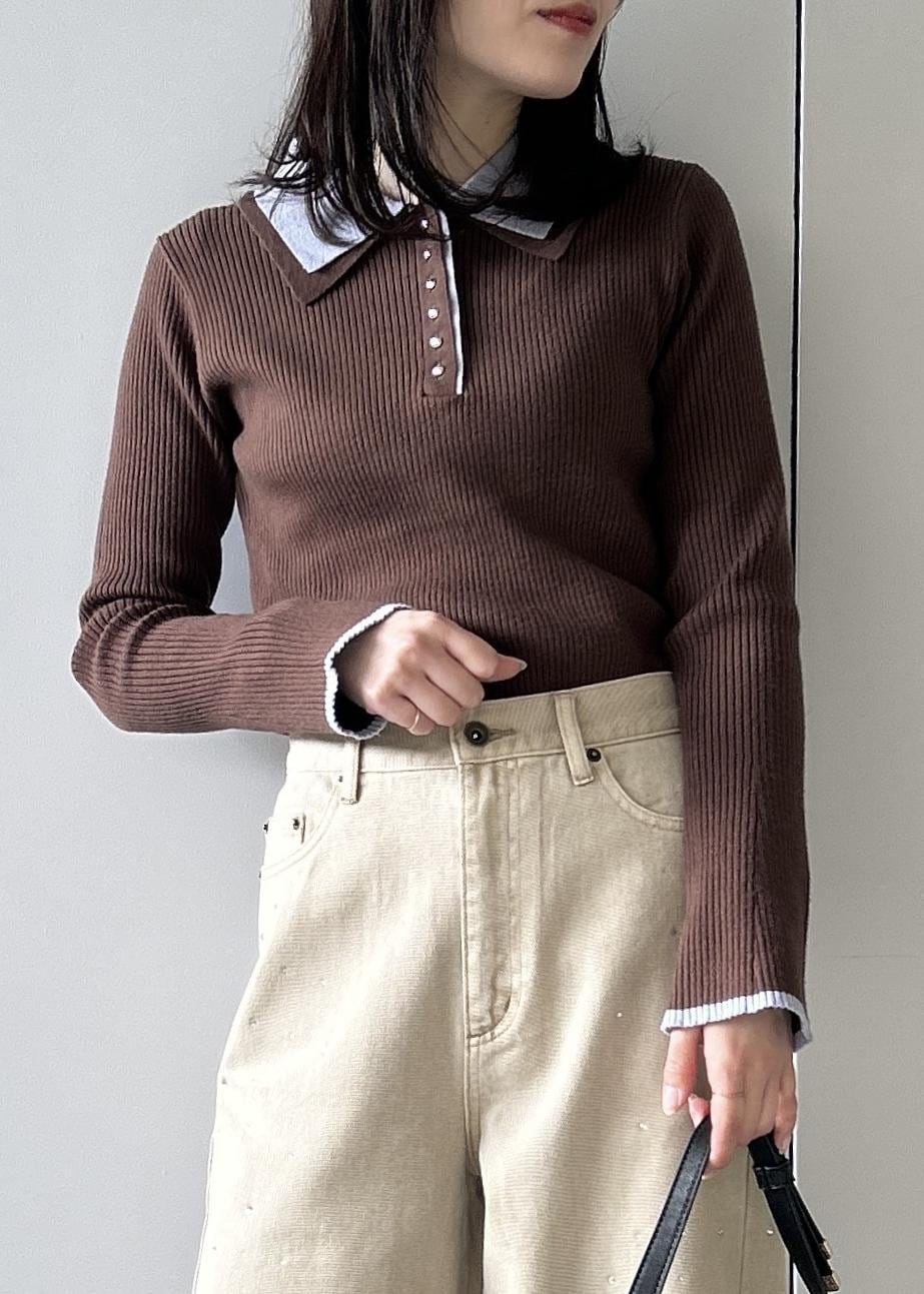 予約VISダブルカラーポロニットトップスブラウン / F¥5,929レビュー配色がおしゃれです♪