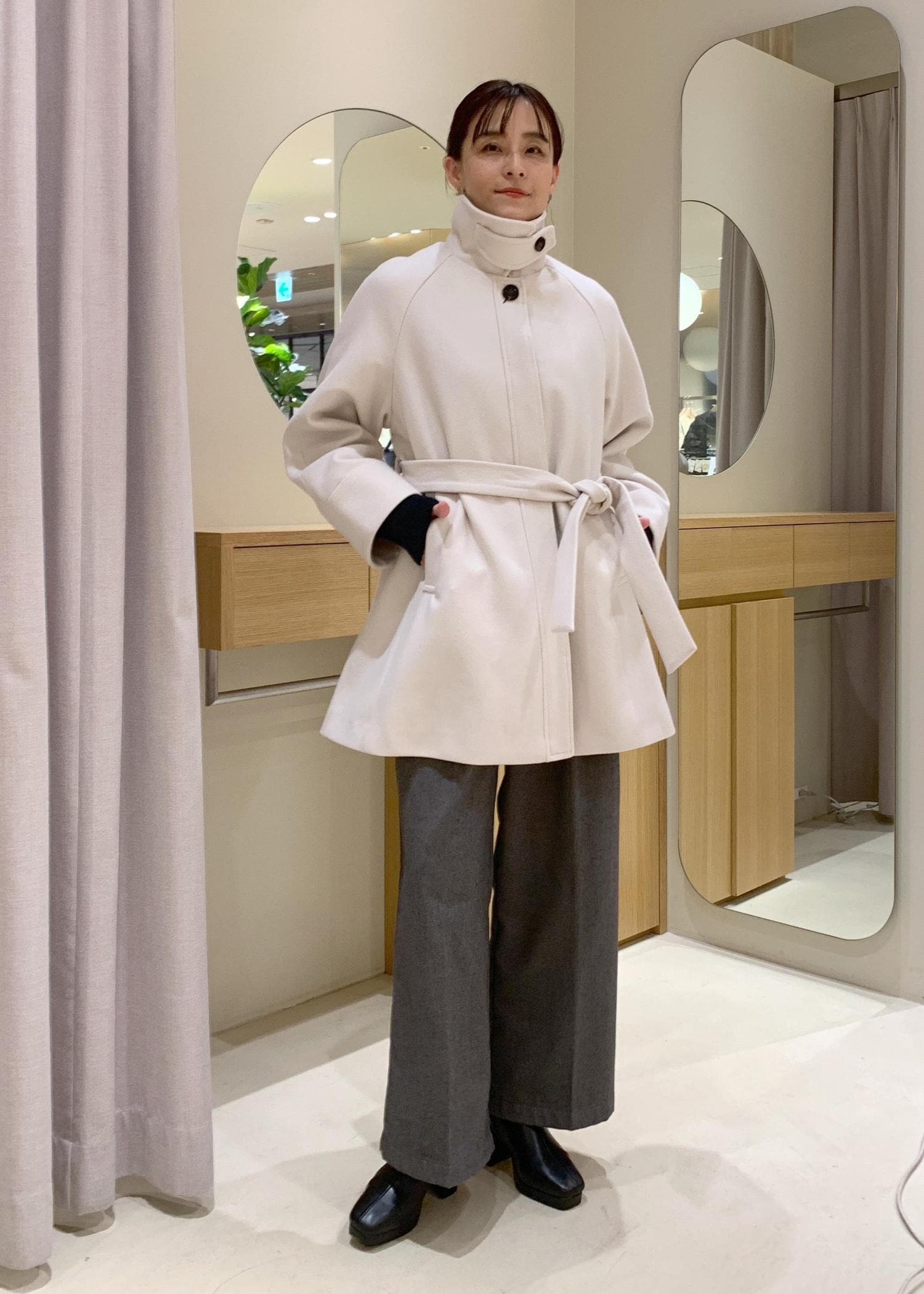 小柄な方でも取り入れやすい着丈ですよ。