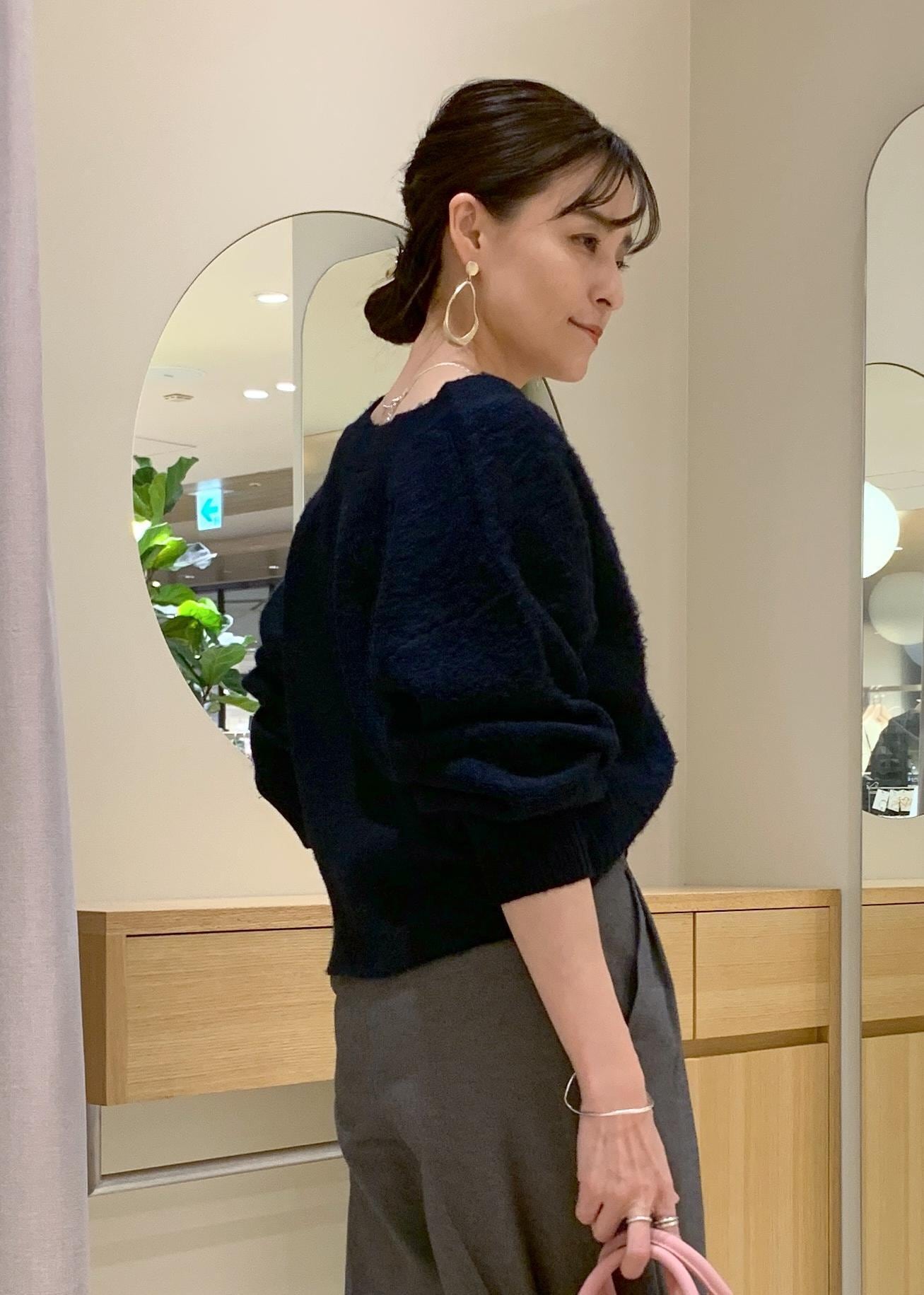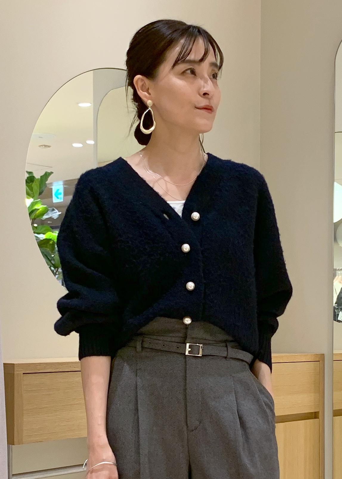 Vネックなのが胸元の抜け感を出せて、インナーにタートルを着用しても嵩張らないです。 -