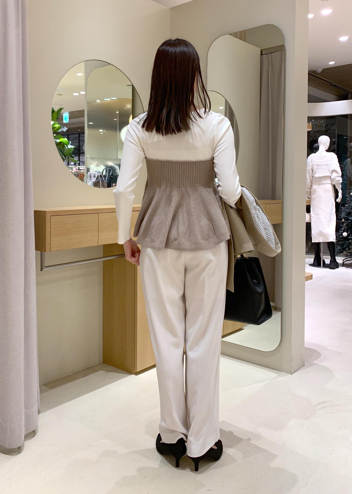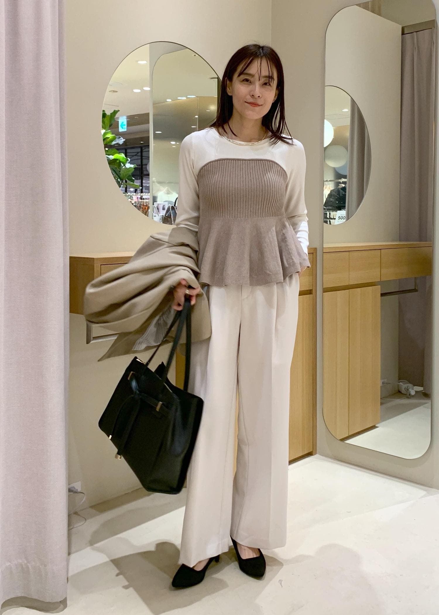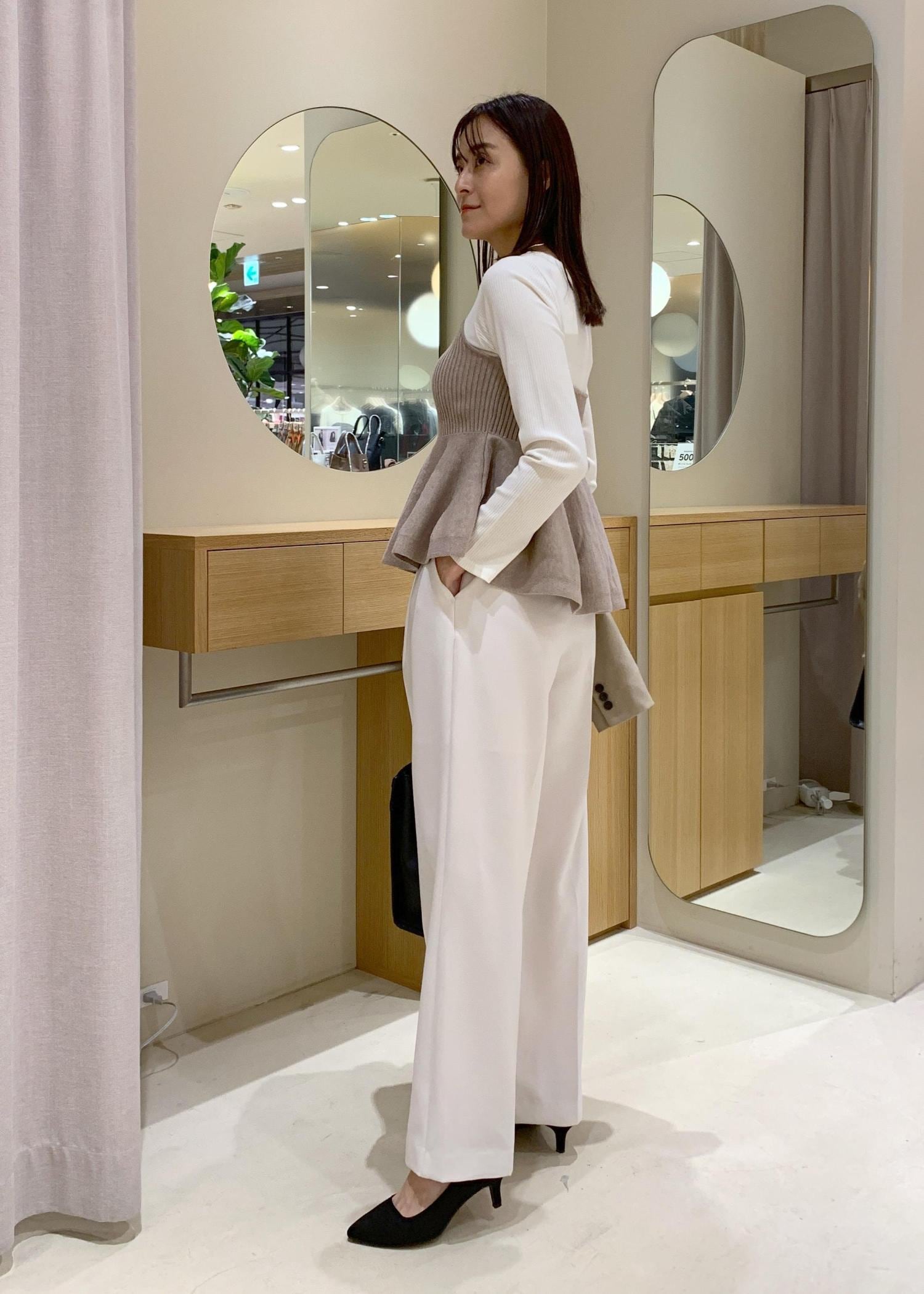 裾がペプラムデザインなので、ボトムスはパンツスタイルが相性いいです。