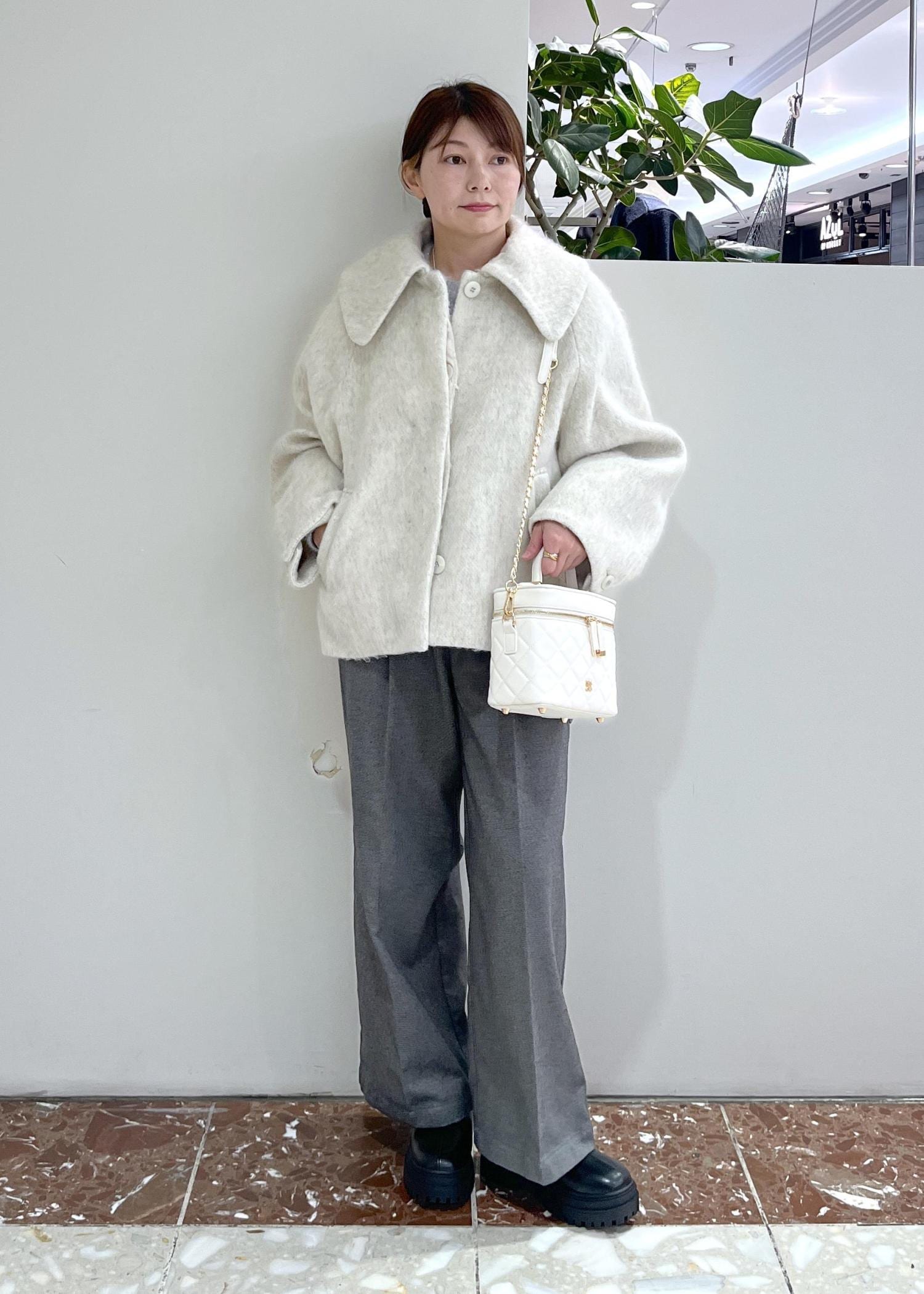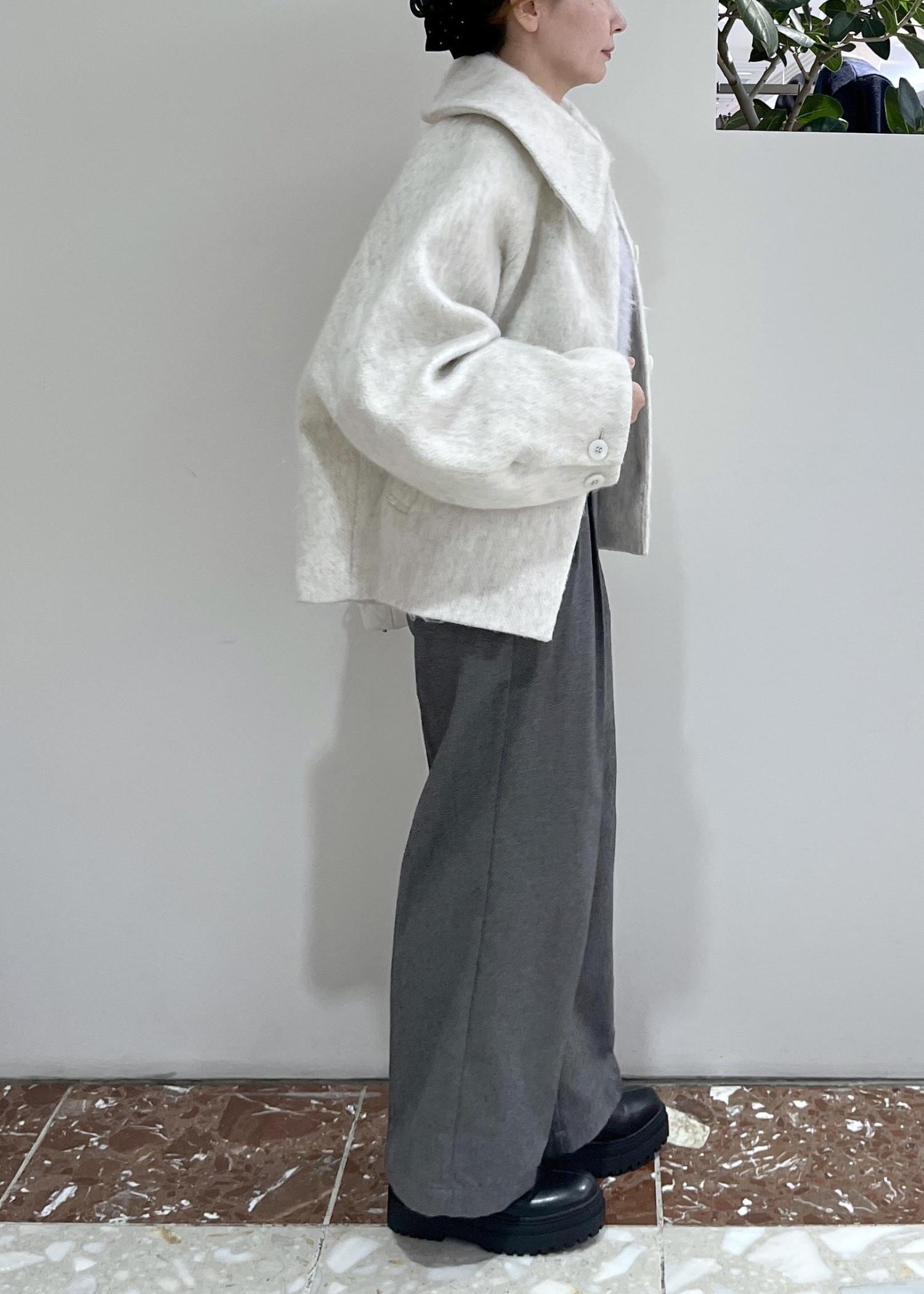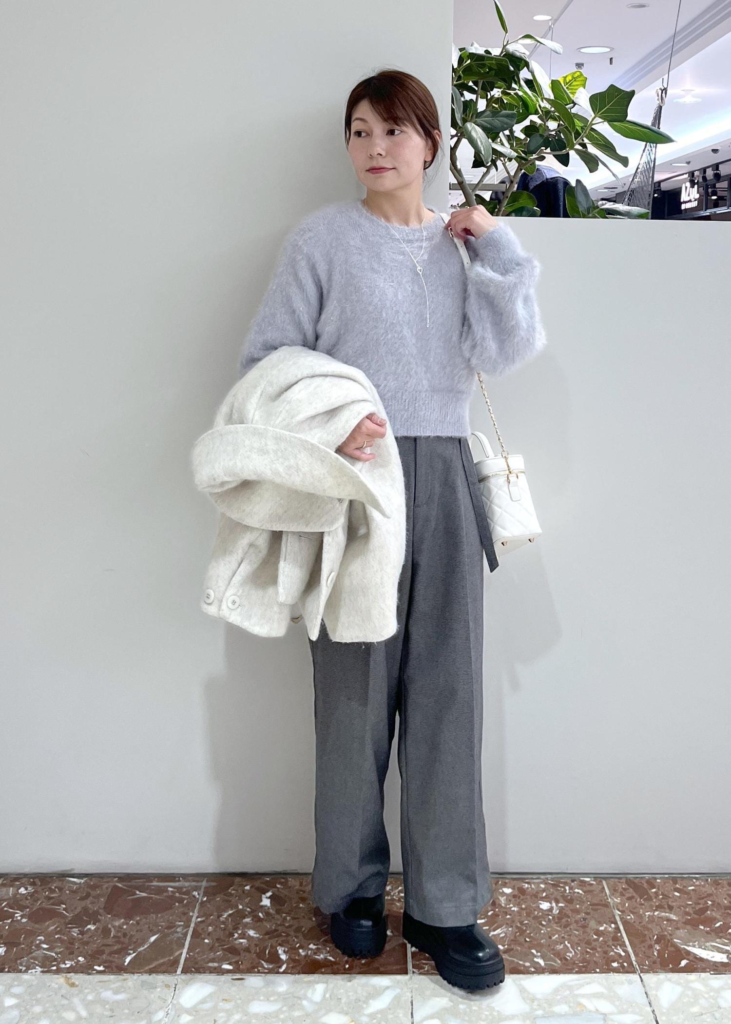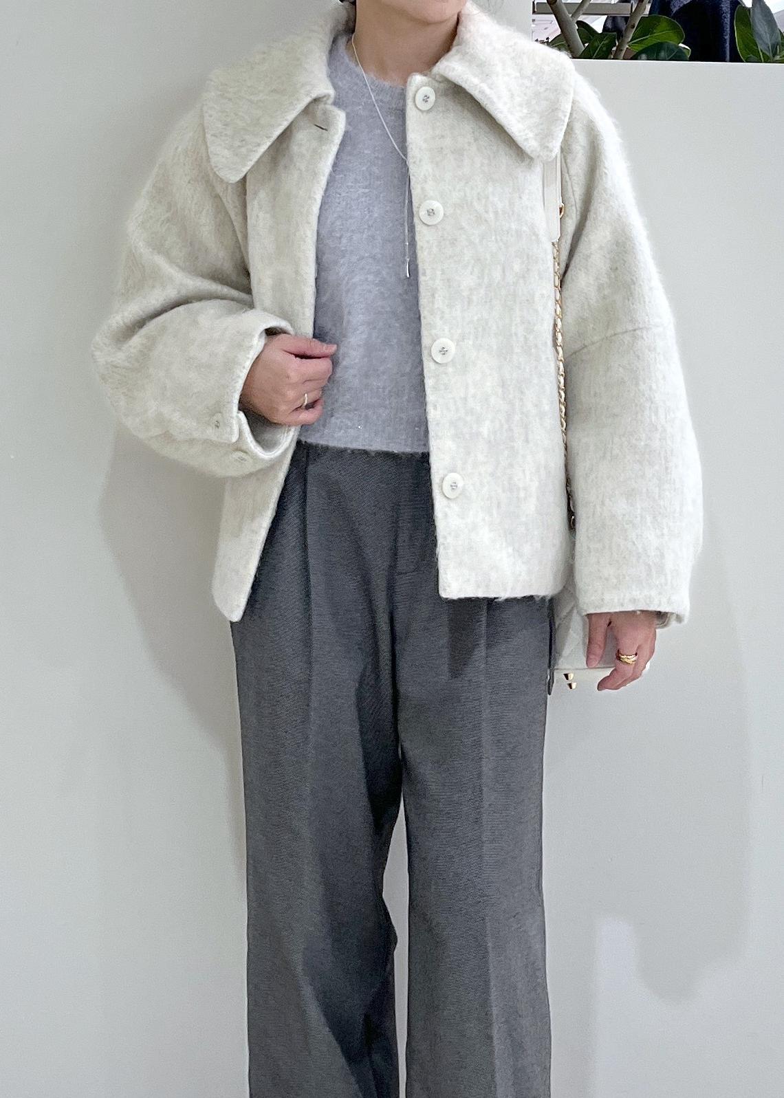 大きめなエリとシャギーの素材がマッチして可愛いらしいコートです。丈はやや長めのショート丈なので甘くなりすぎず、通勤通学などにも便利です◎