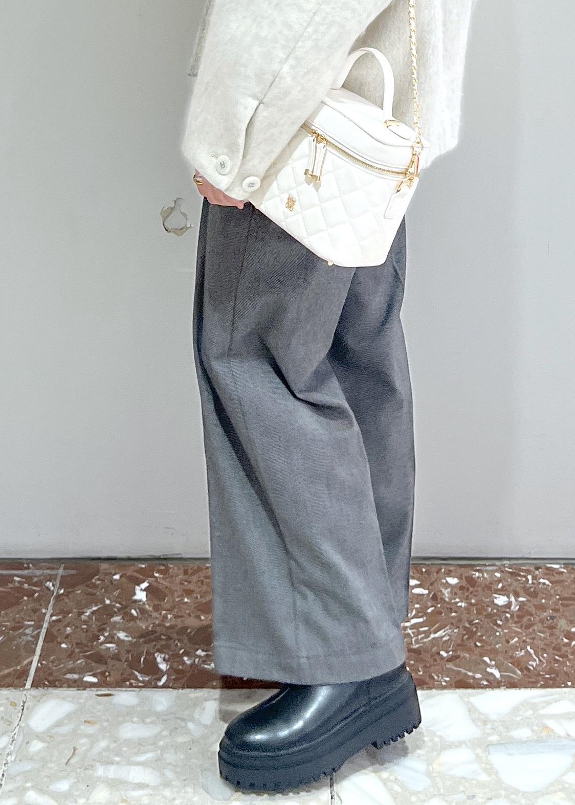 VIS起毛ウールライク版ベルトディテールタックワイドパンツグレー / S¥6,589レビューハイウェストで足長効果があります。