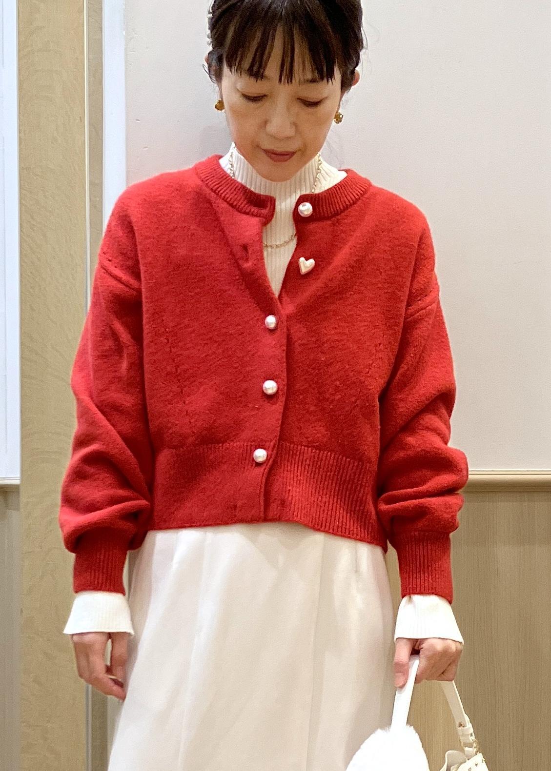 VISハートアソートパール釦ラメミックスカーディガン/イージーケア・一部WEB限定カラーレッド / F¥5,489レビューVISで毎年大人気のラメカーデです。
