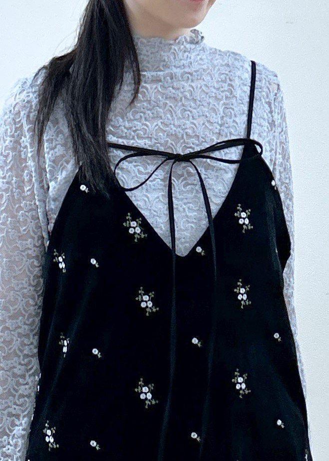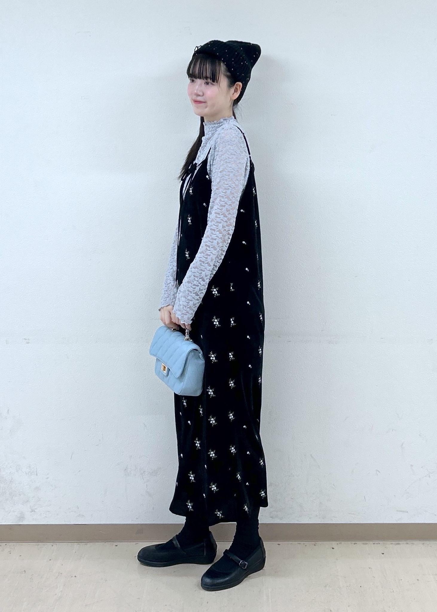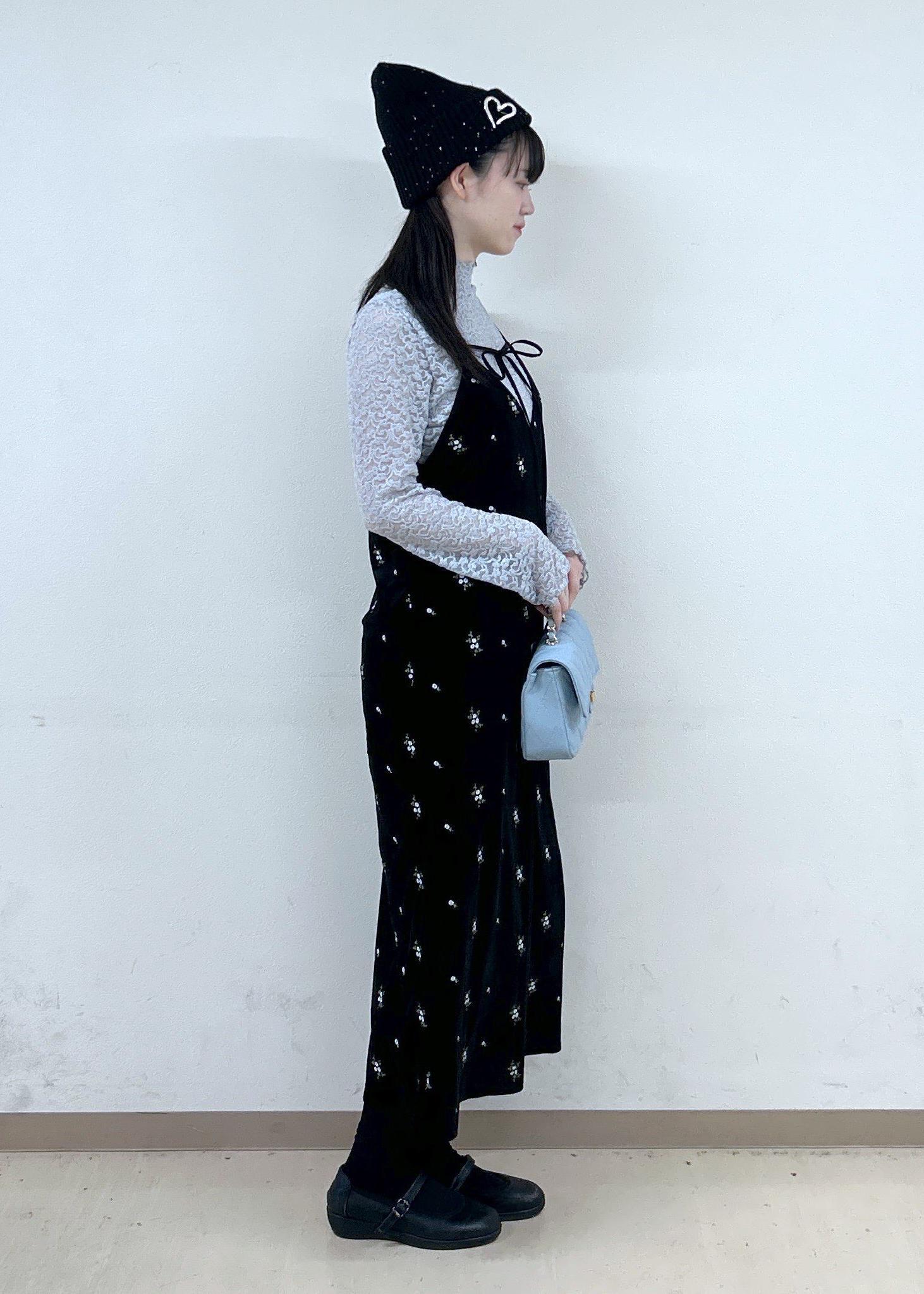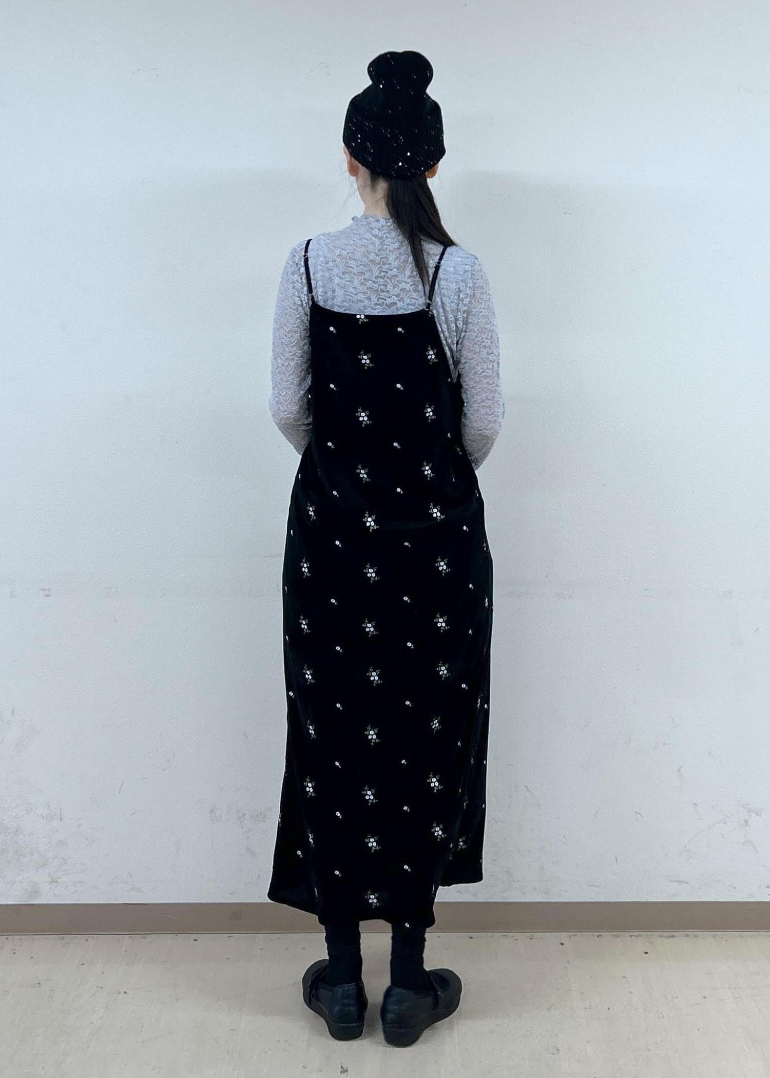VIS刺繍アソートベロアキャミワンピース/2WAYブラック系 / F¥8,899レビューストンとしたシルエットで細見えが叶います!