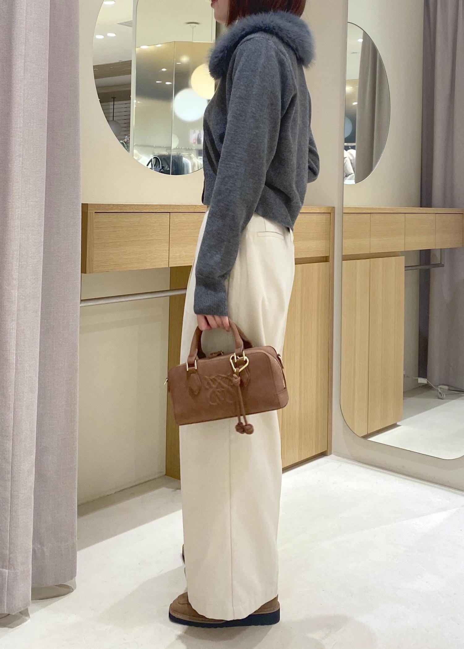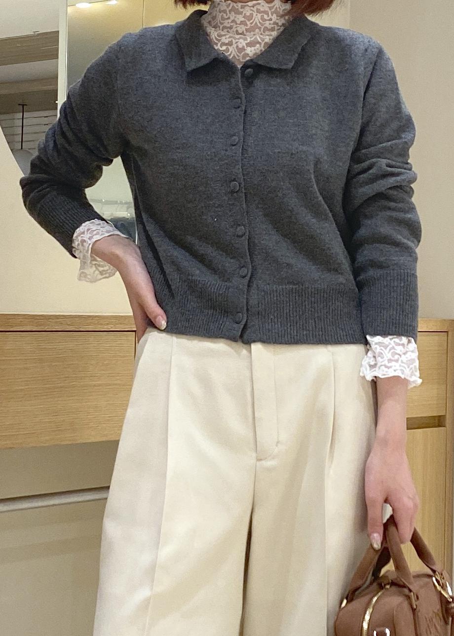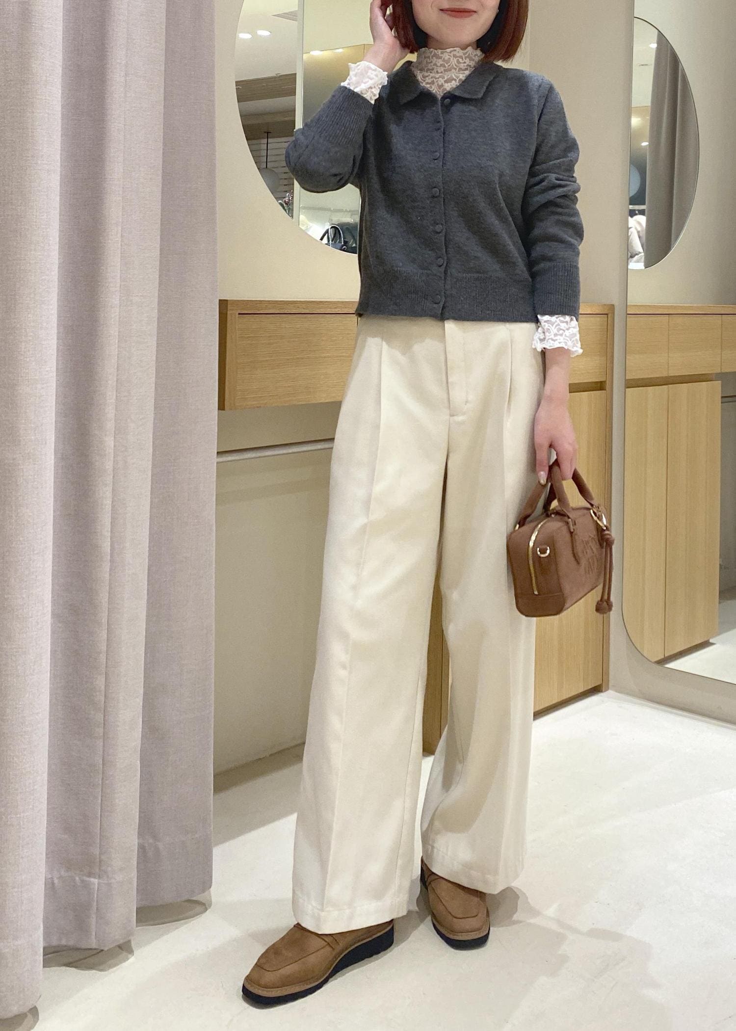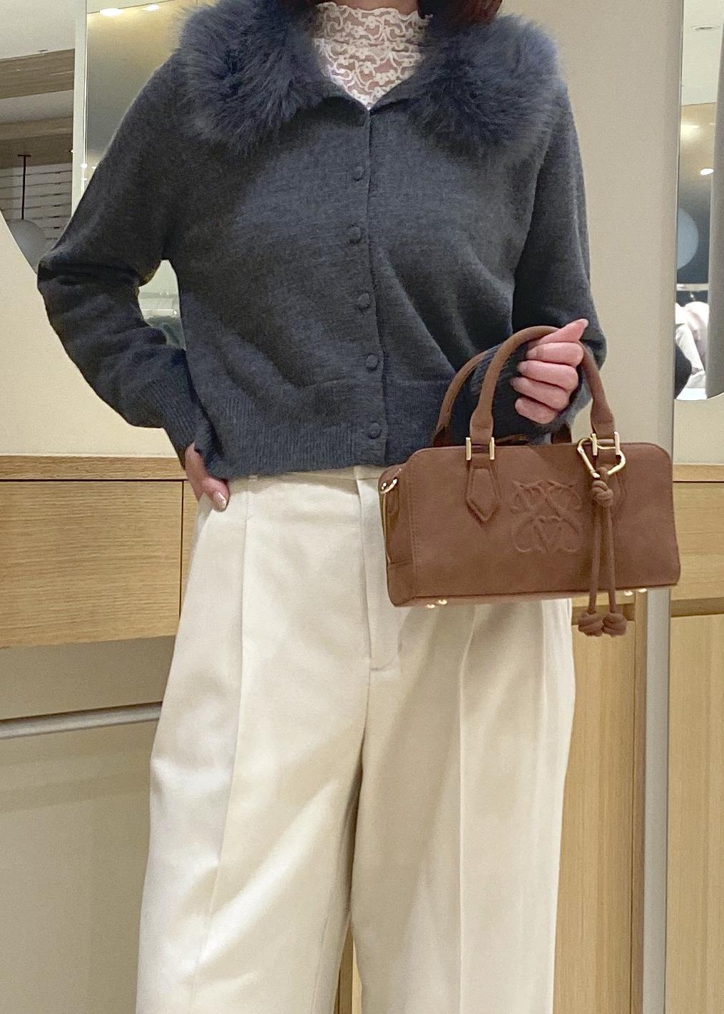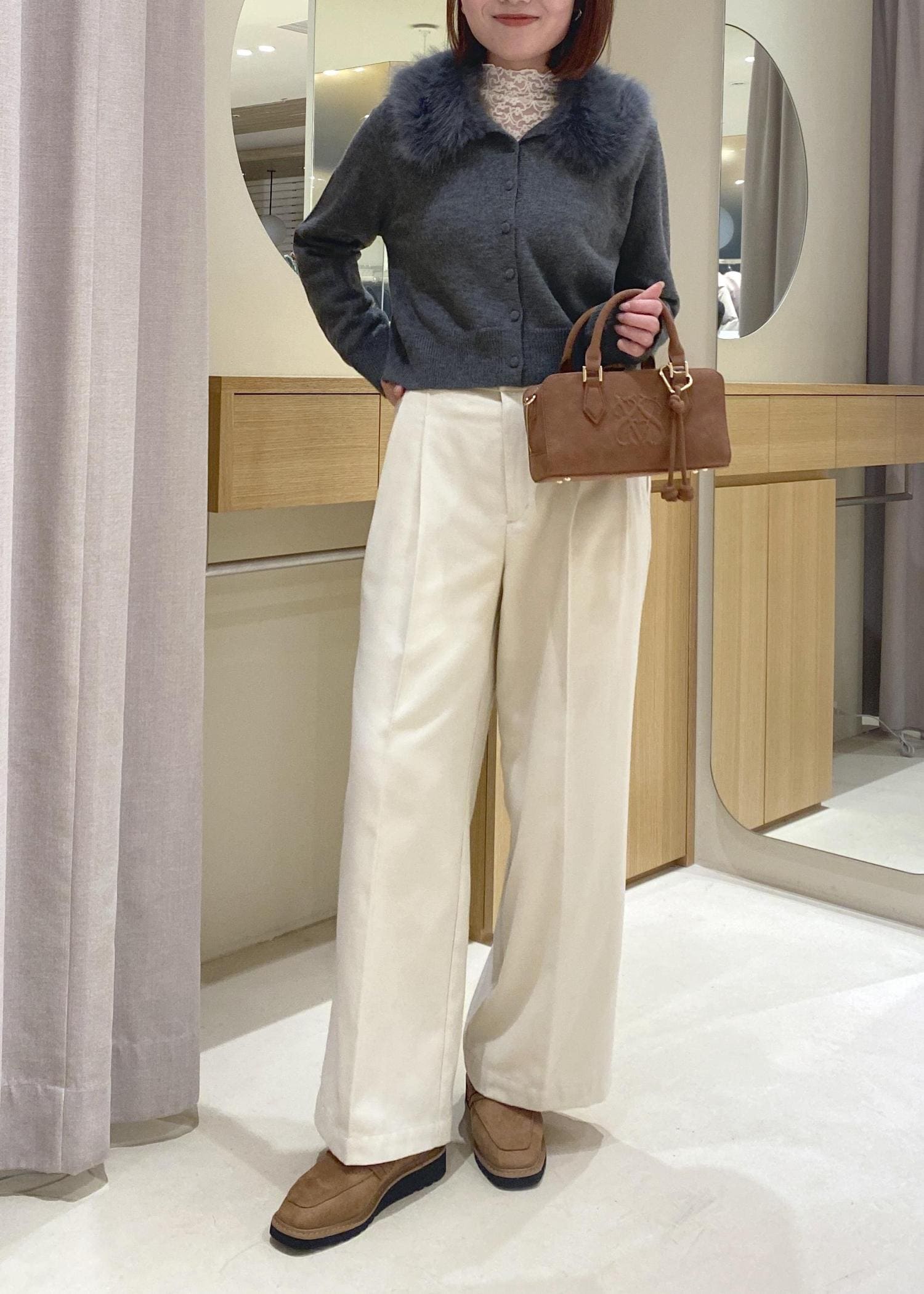 取り外しのできるファー襟のカーディガンを使用したお出かけコーデです!
