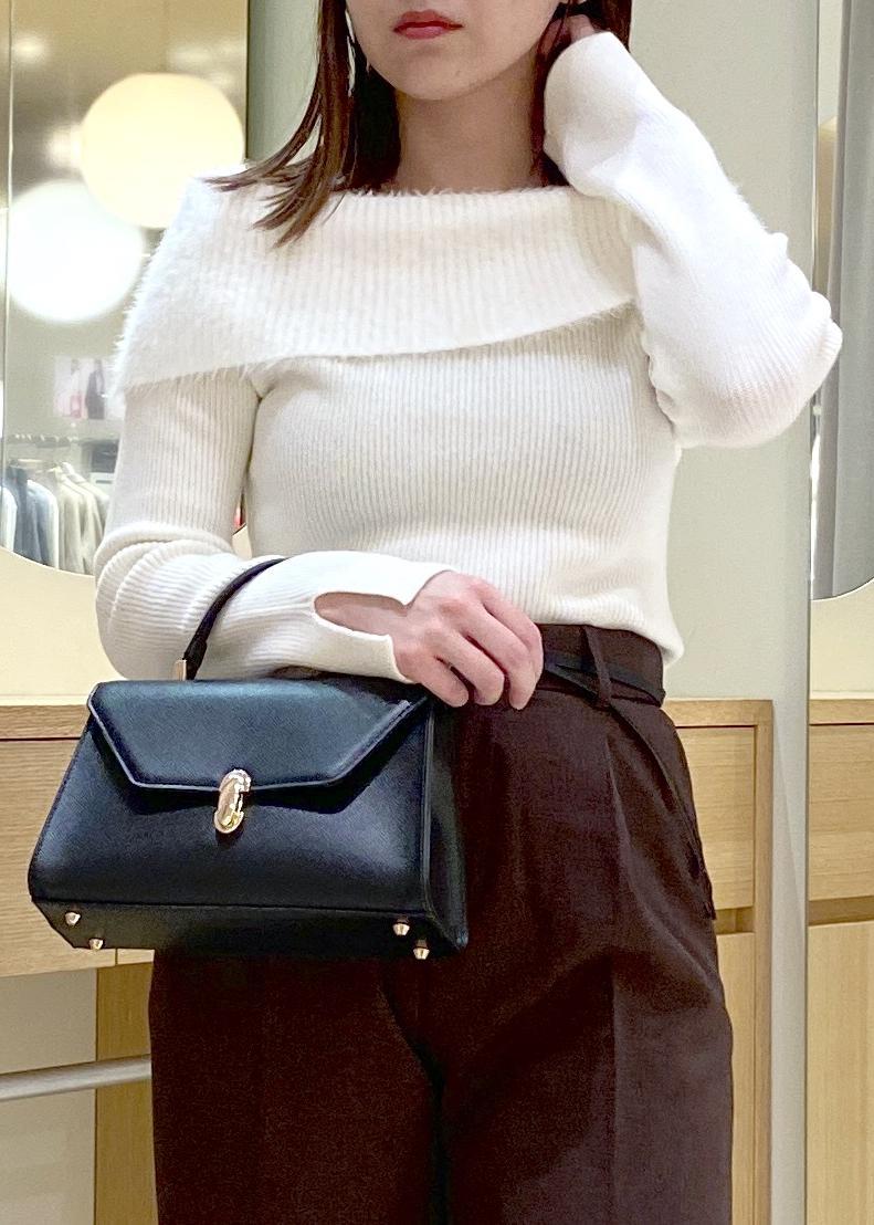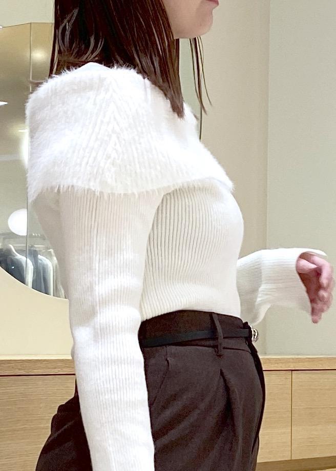 フェザーヤーンオフショルもちもちリブニット/イージーケア
