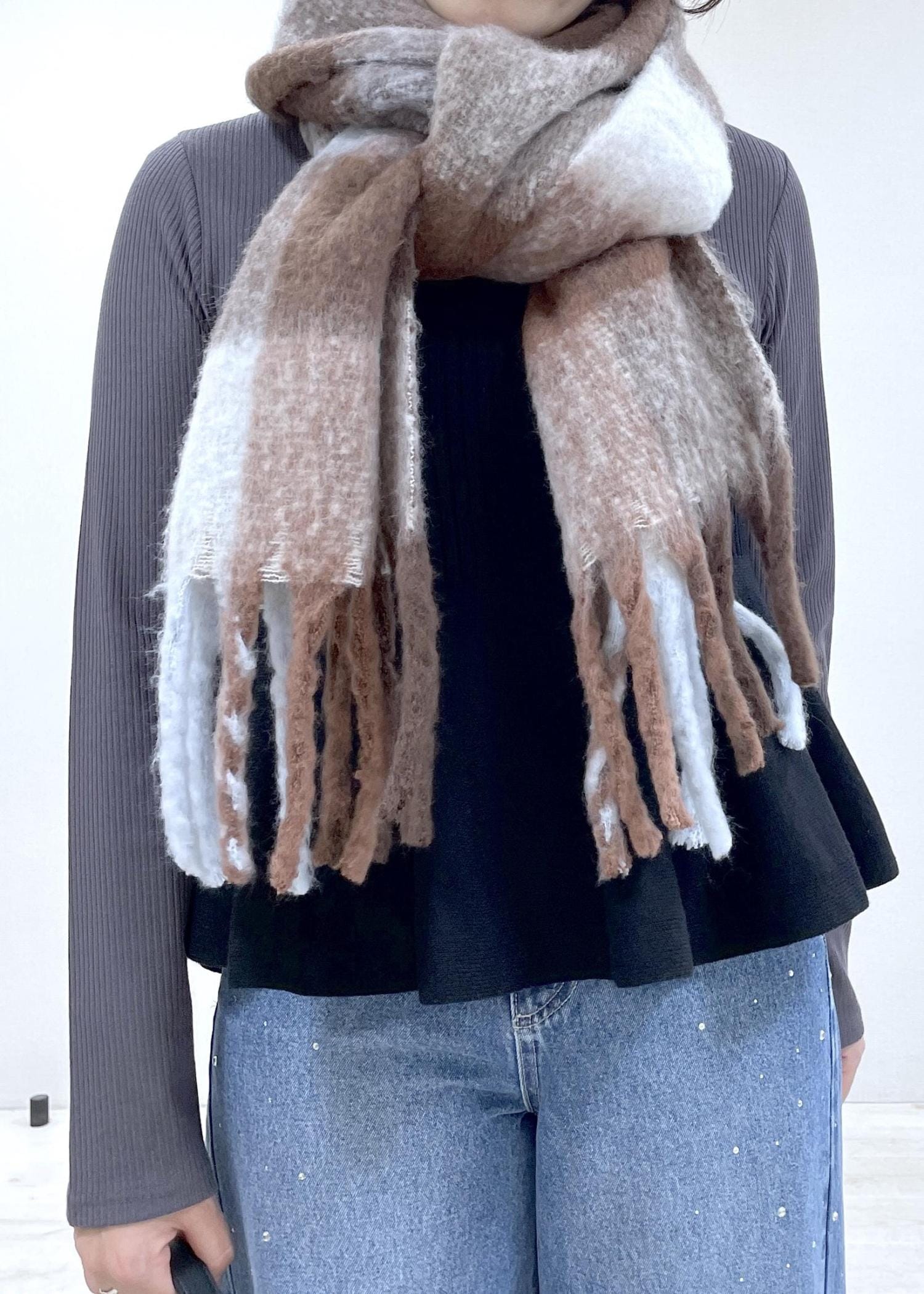 VISふわふわフリンジチェックマフラー/静電気防止ブラウン系 / F¥3,289レビュー配色がかわいく、フワフワの素材はチクチク感も全く無く、とてもあたたかいです。