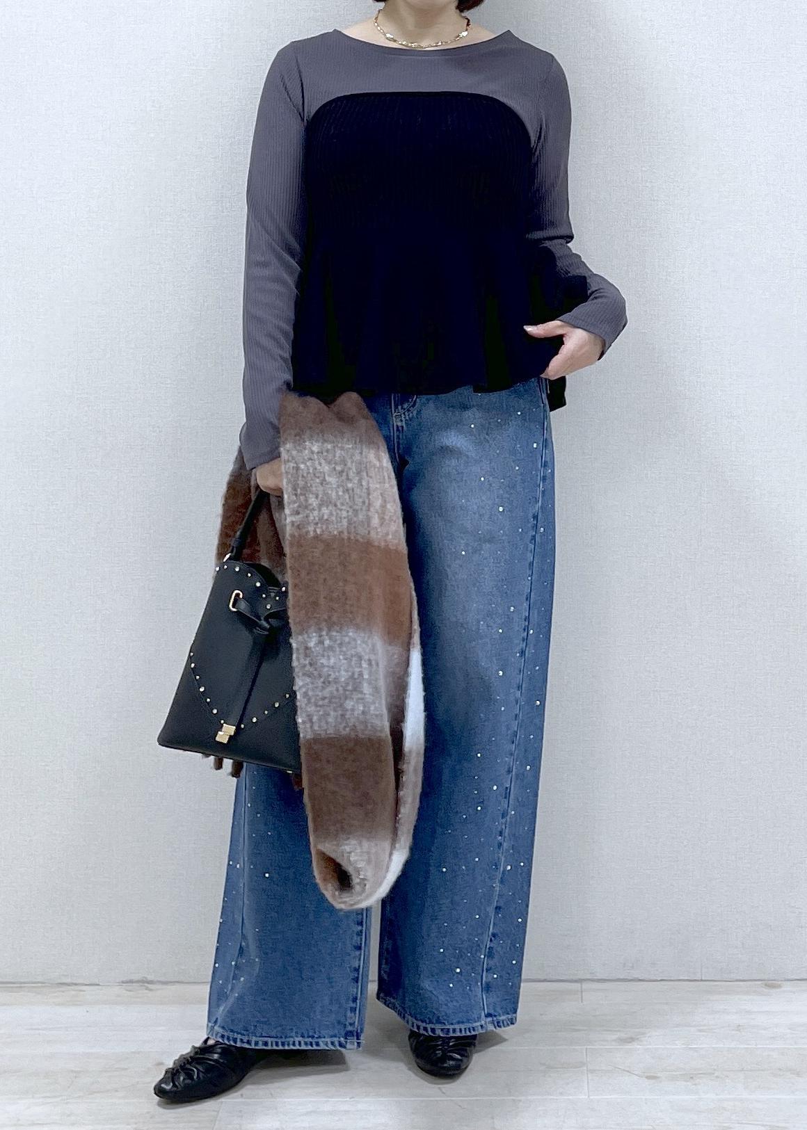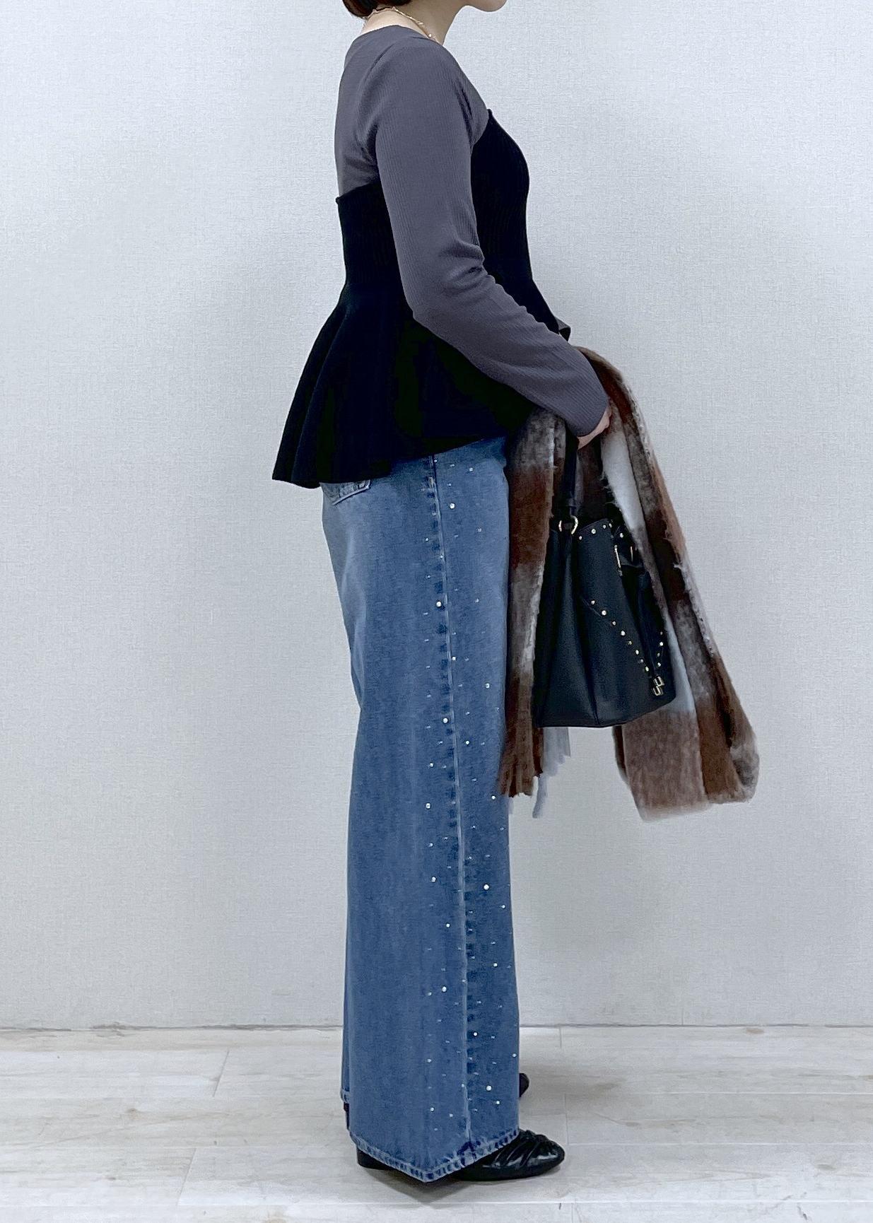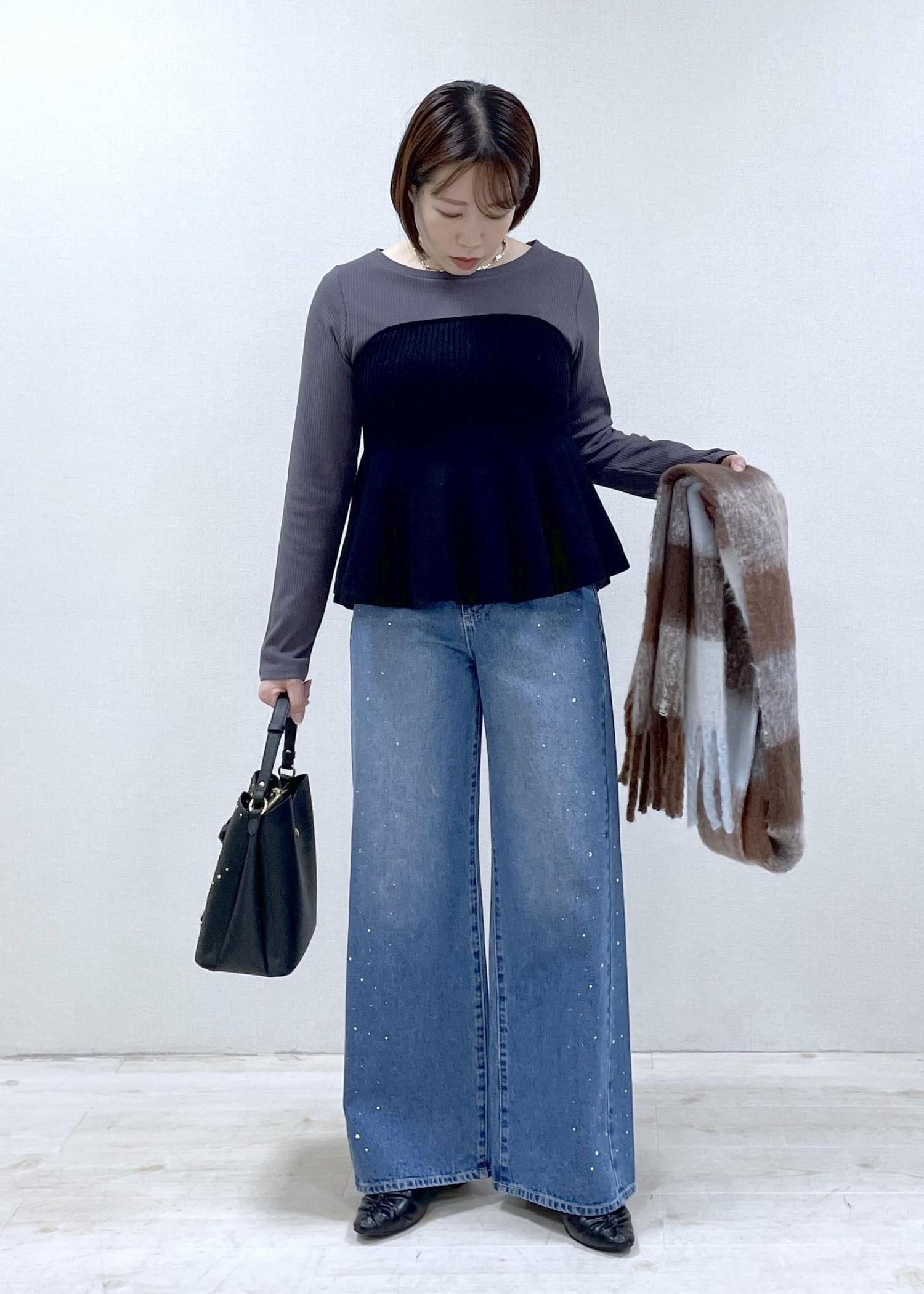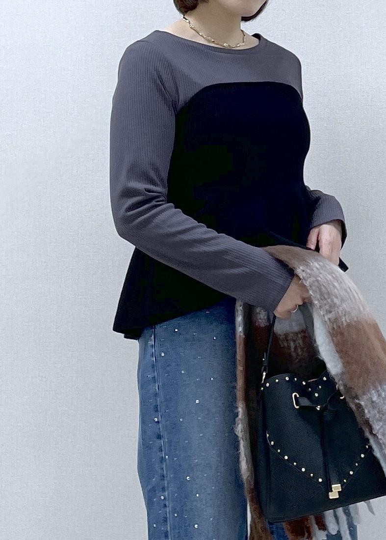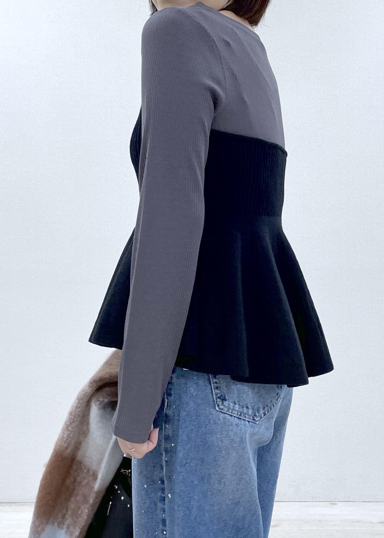 VISペプラムニットドッキングプルオーバーブラック系 / F¥5,929レビュー一枚で、オシャレ見えと体型カバーが叶うトップスです!
