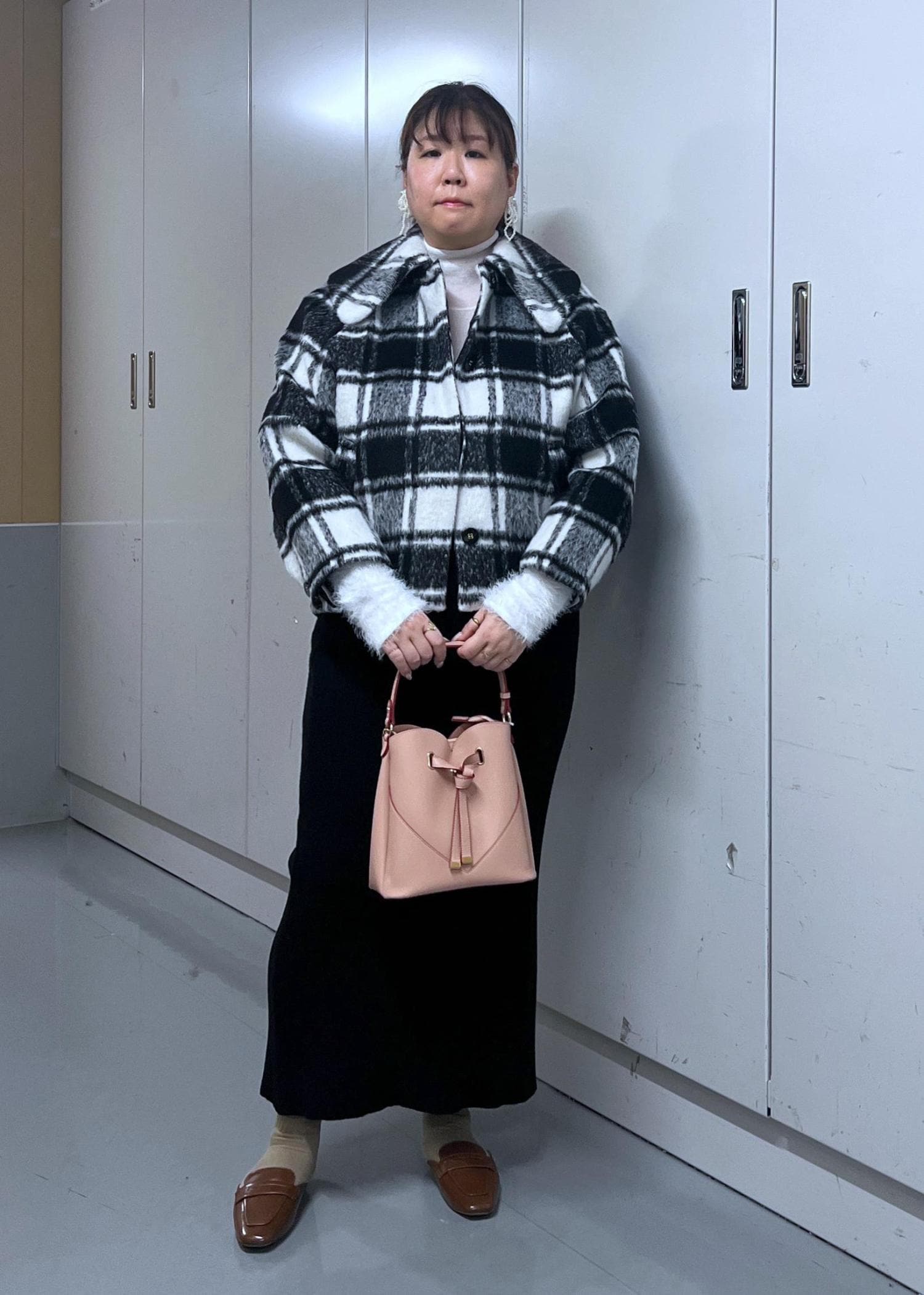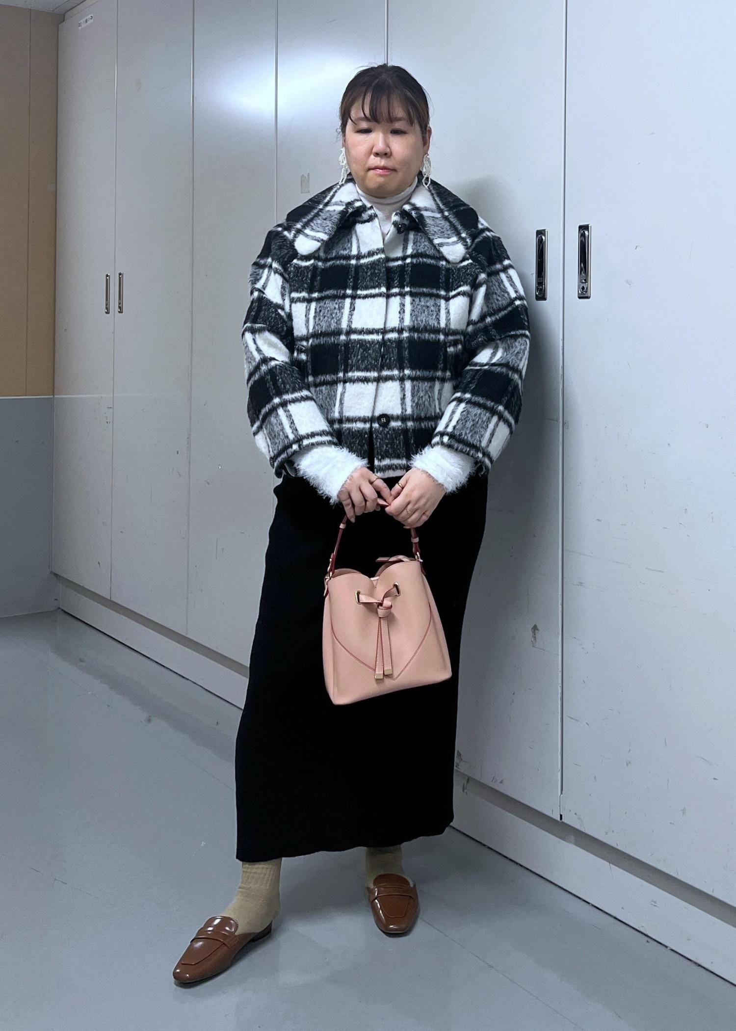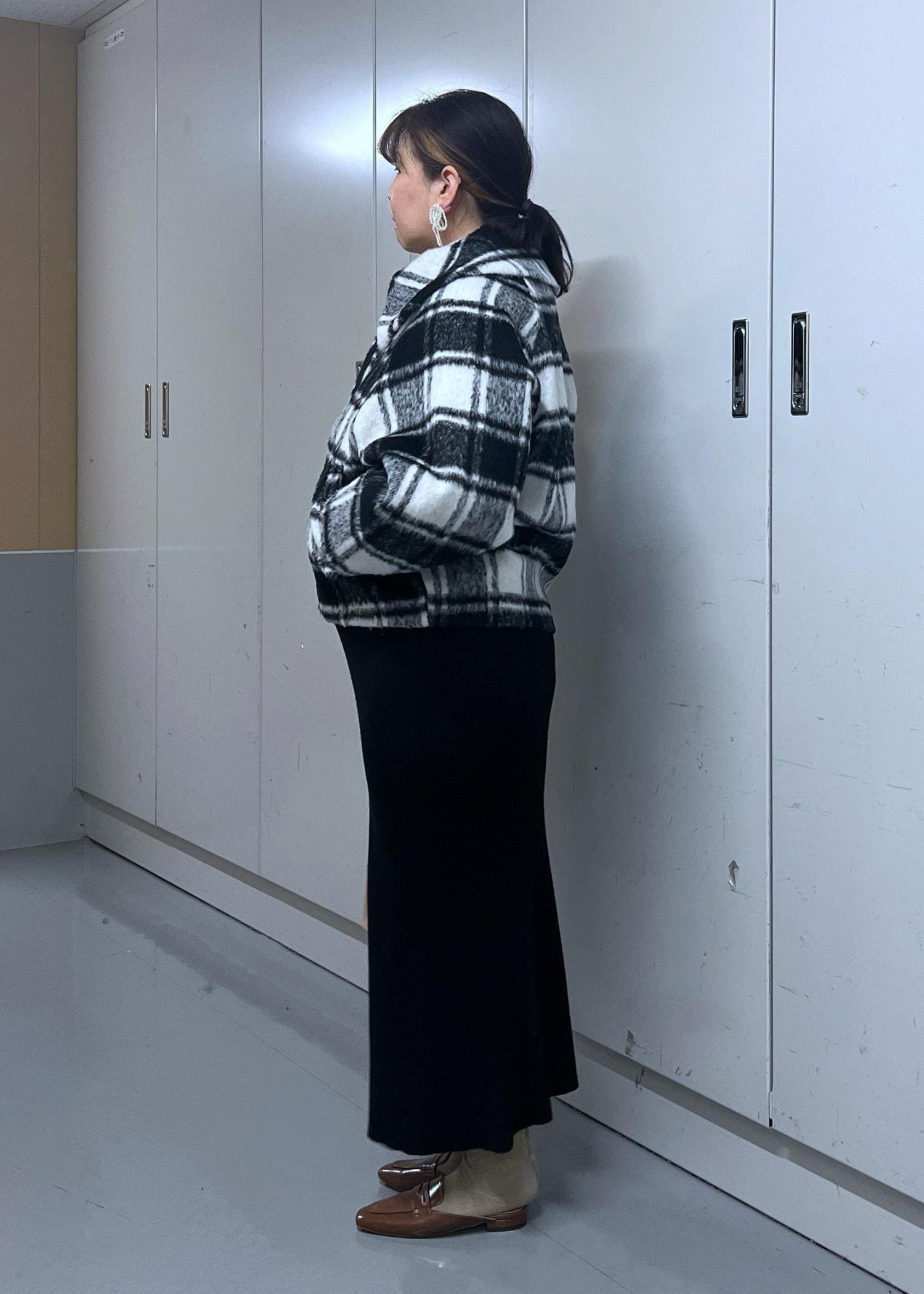 高身長でも丈は短すぎず、合わせやすい丈感です。 -