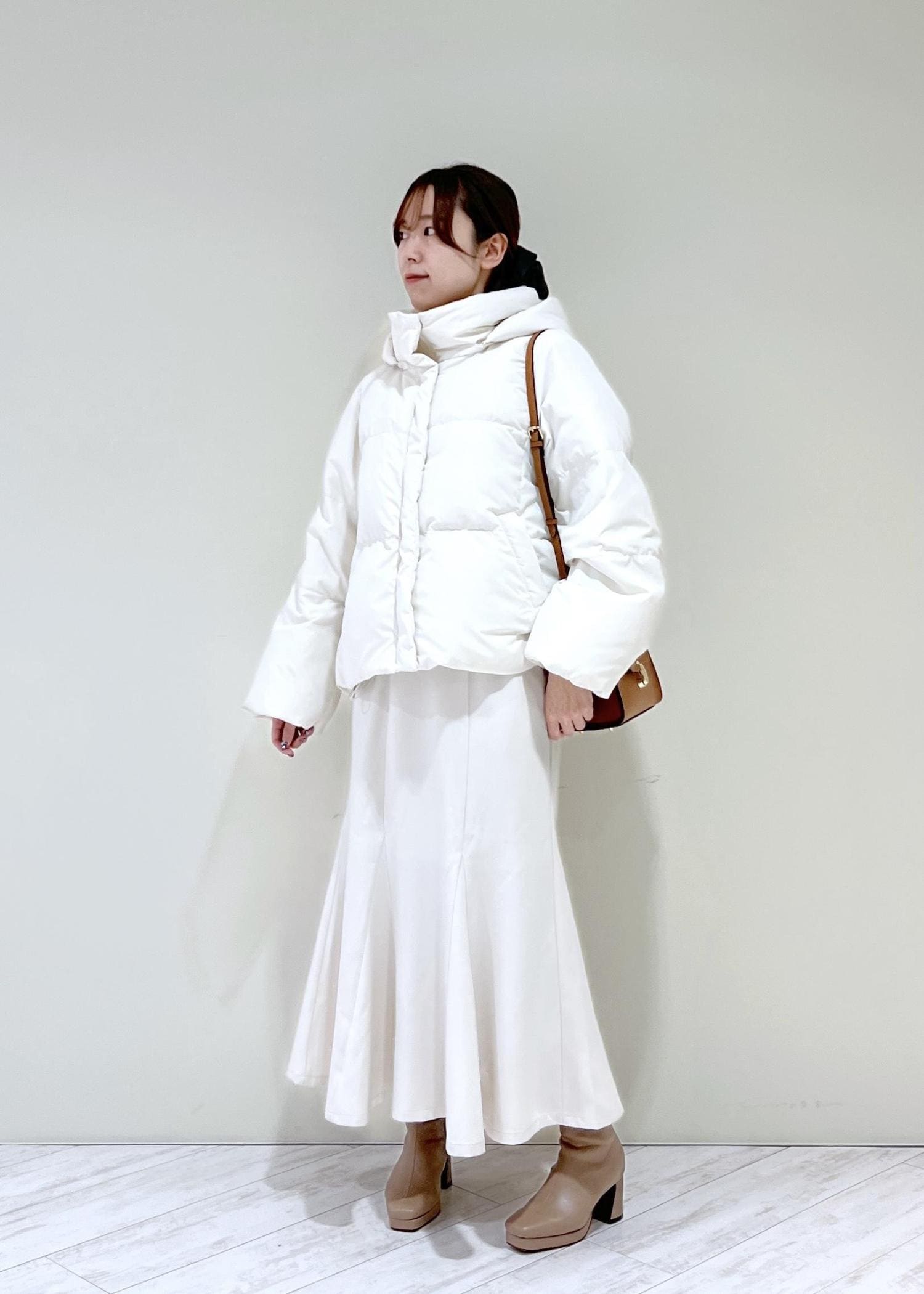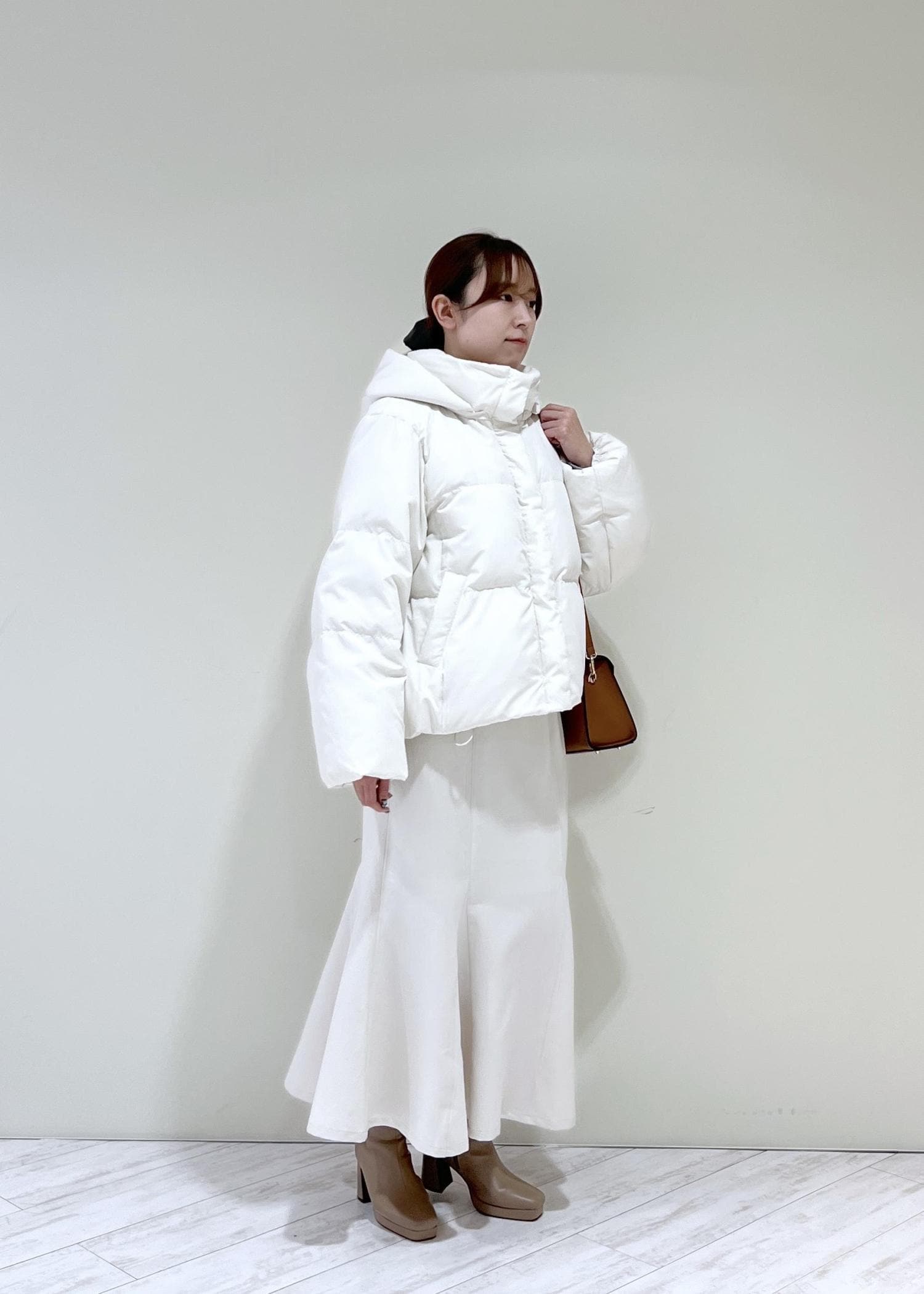 VIS【アウター総選挙3位】フード取り外し可能軽量ダウンブルゾン/2WAY・撥水加工オフホワイト / L¥18,480レビュー身長164cmでLサイズ着用で、着丈はおしりが隠れるくらいでした。着膨れせずにすっきり着られて、丈も長過ぎないのでロング丈のボトムと合わせてもバランス良くコーディネート出来ます◎