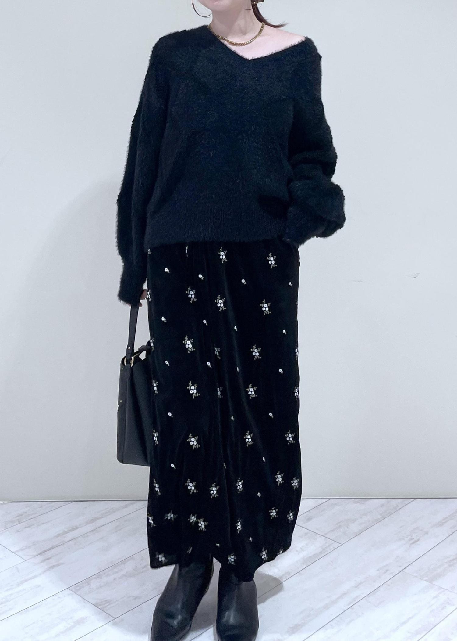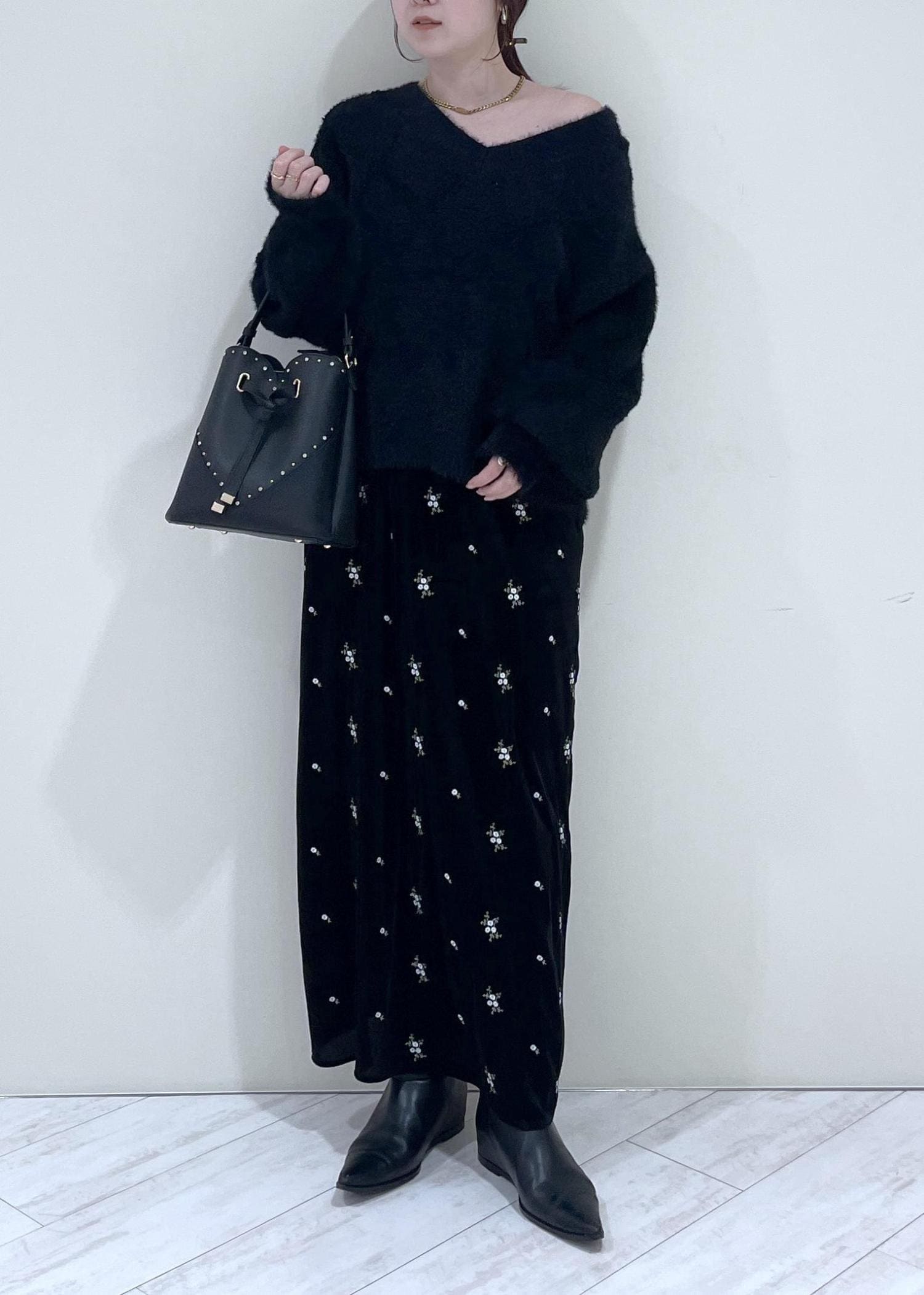 VIS刺繍アソートベロアキャミワンピース/2WAYブラック系 / F¥8,899レビューシルエットが綺麗なキャミワンピース♡程よくボディラインに沿うシルエットで、細見え効果もあります。ベロアの光沢感で高見えも◎長さ調節可能なので身長や合わせるインナーによって着丈を変えられるのも嬉しいポイントです!