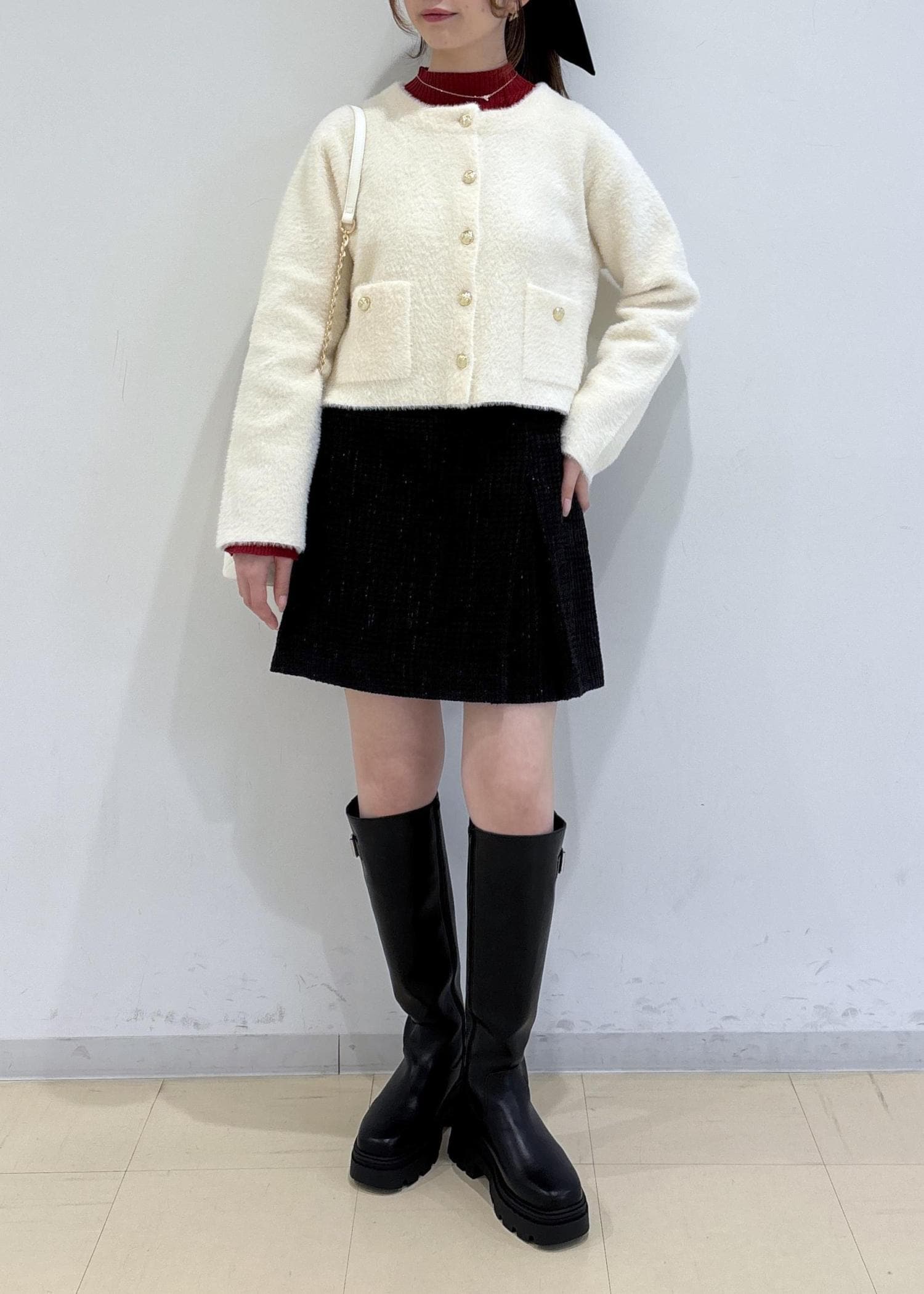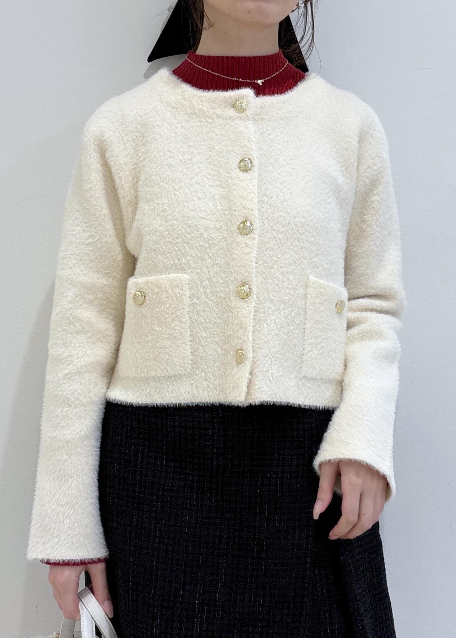 VIS接結ミニフェザーニットジャケットカーディガン/一部WEB限定カラーオフホワイト / F¥6,919レビュー163cmで腰くらいのコンパクトな丈感でした。