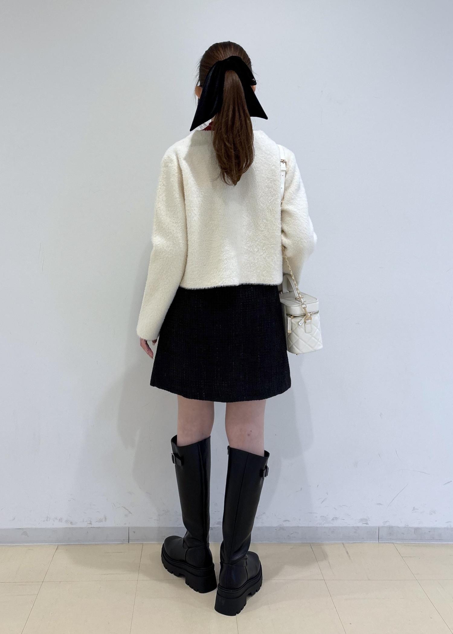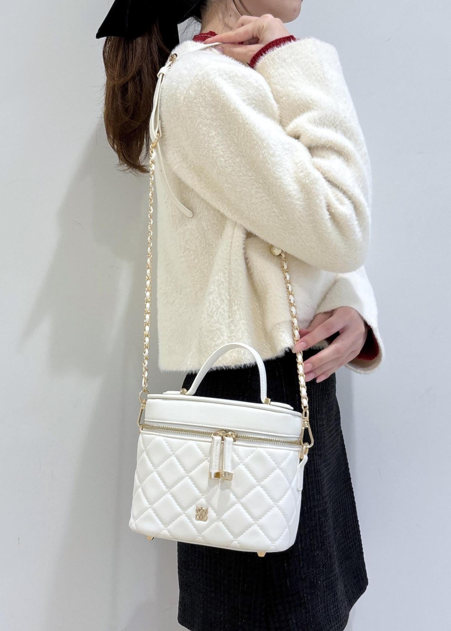VISファーハンドルキルティング&ツイードバニティバッグ/2WAYオフホワイト / F¥7,909レビュー持ち手のファーが取り外しできたり、ショルダーも付いている2WAY仕様です。