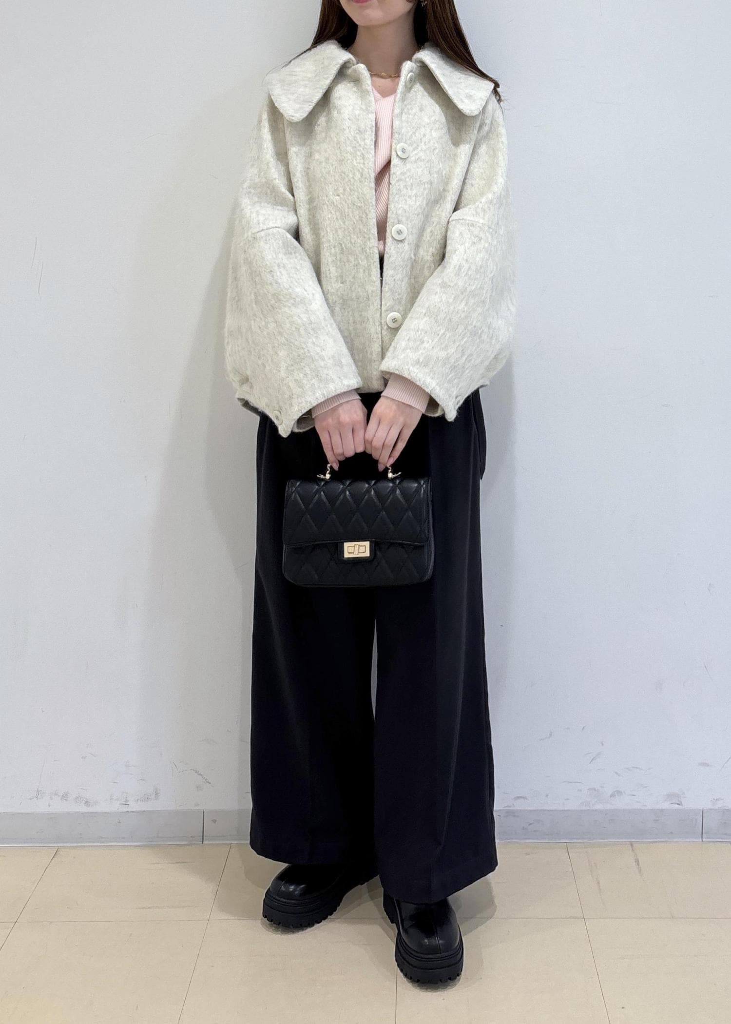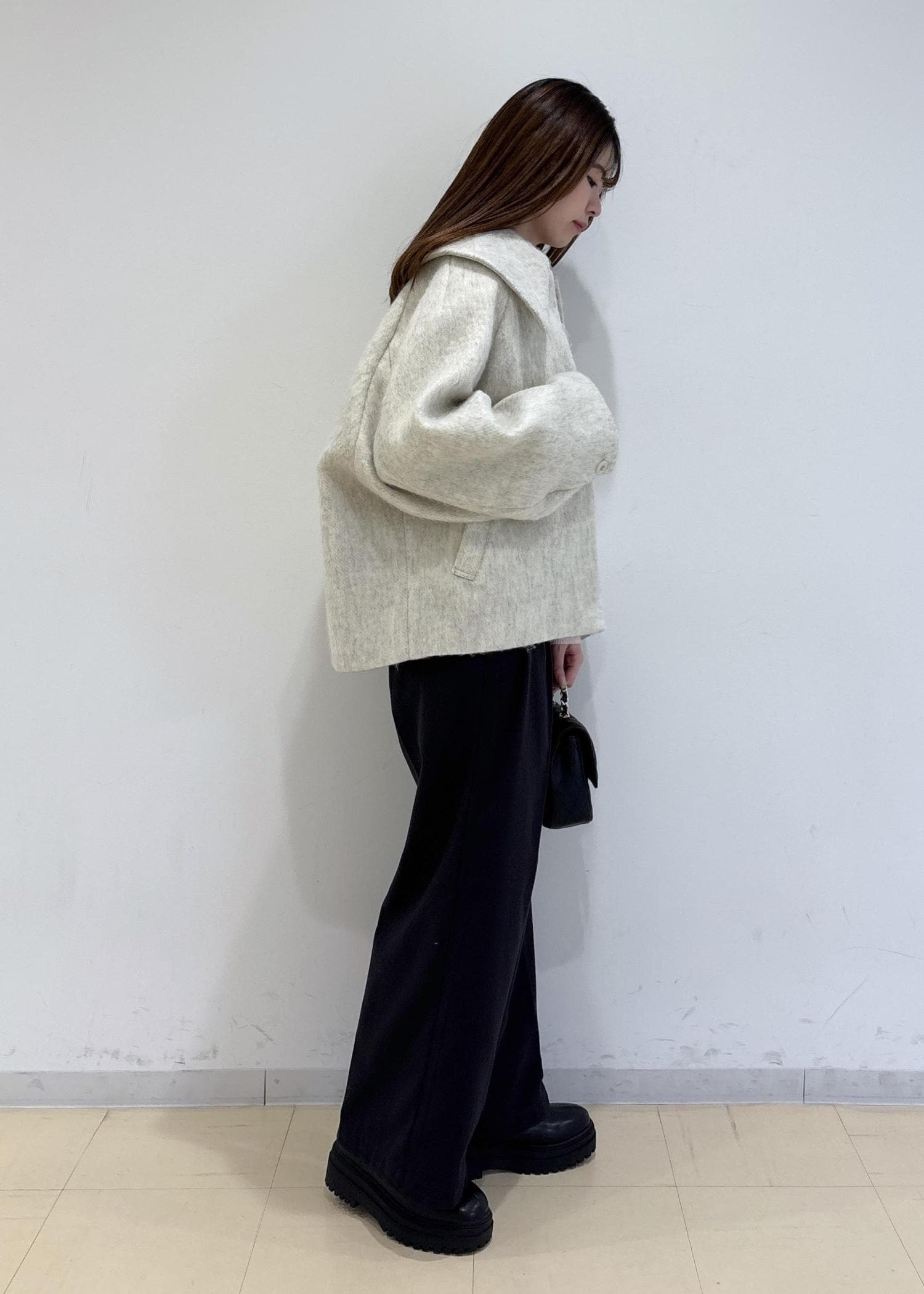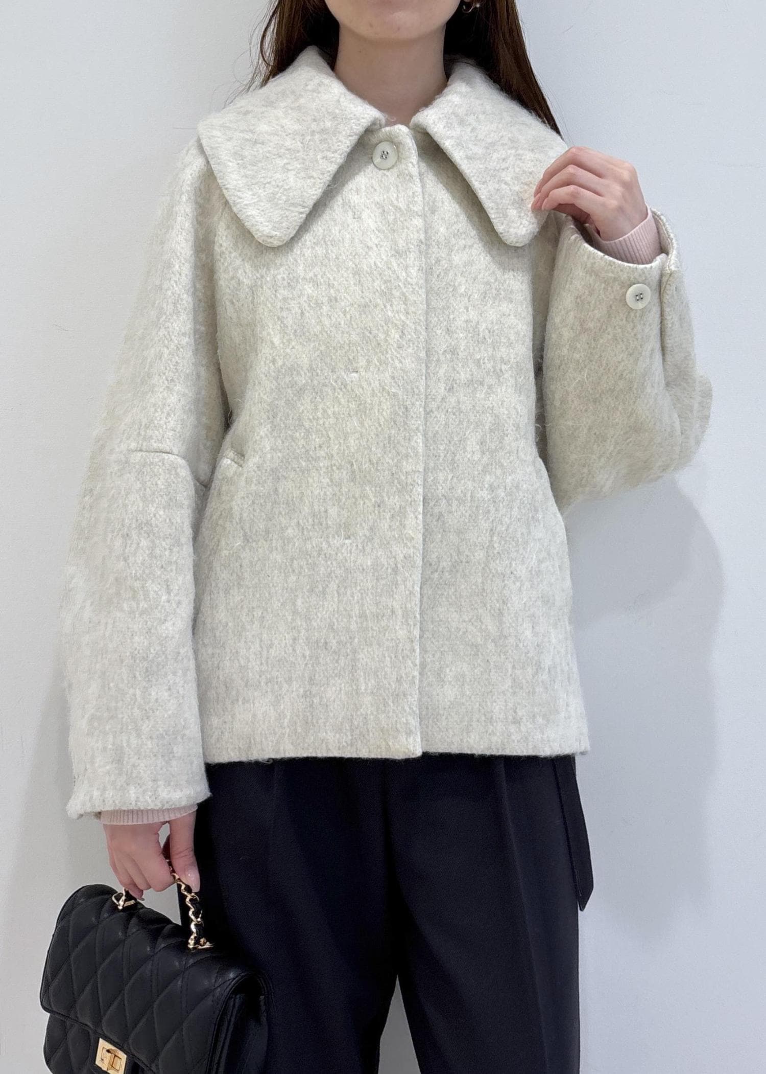 大きめな襟で小顔効果もバッチリです。 -