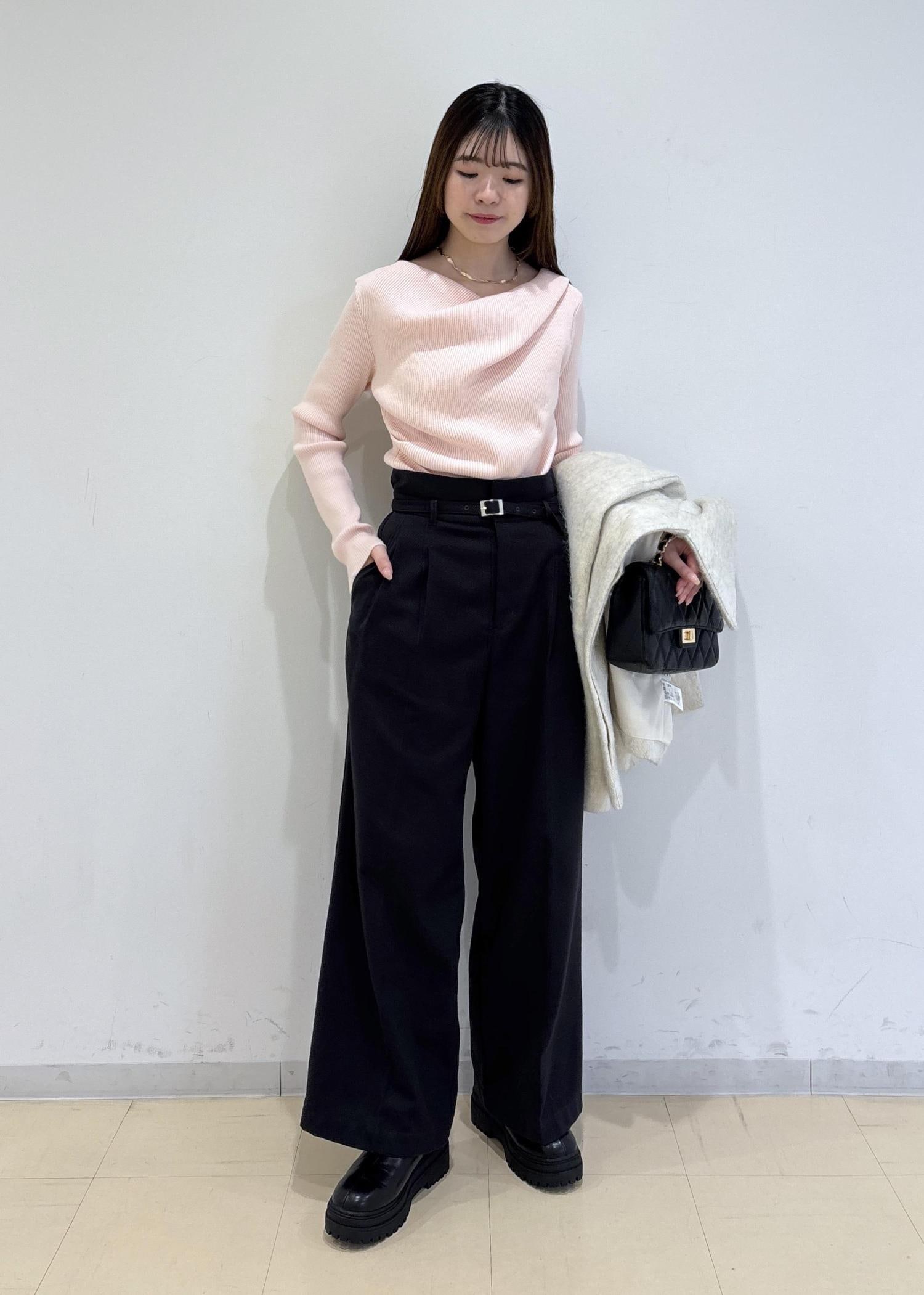 1枚で着映えするドレープニットを使ったコーディネートです。