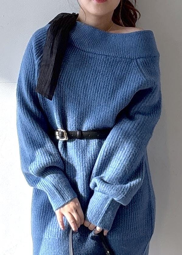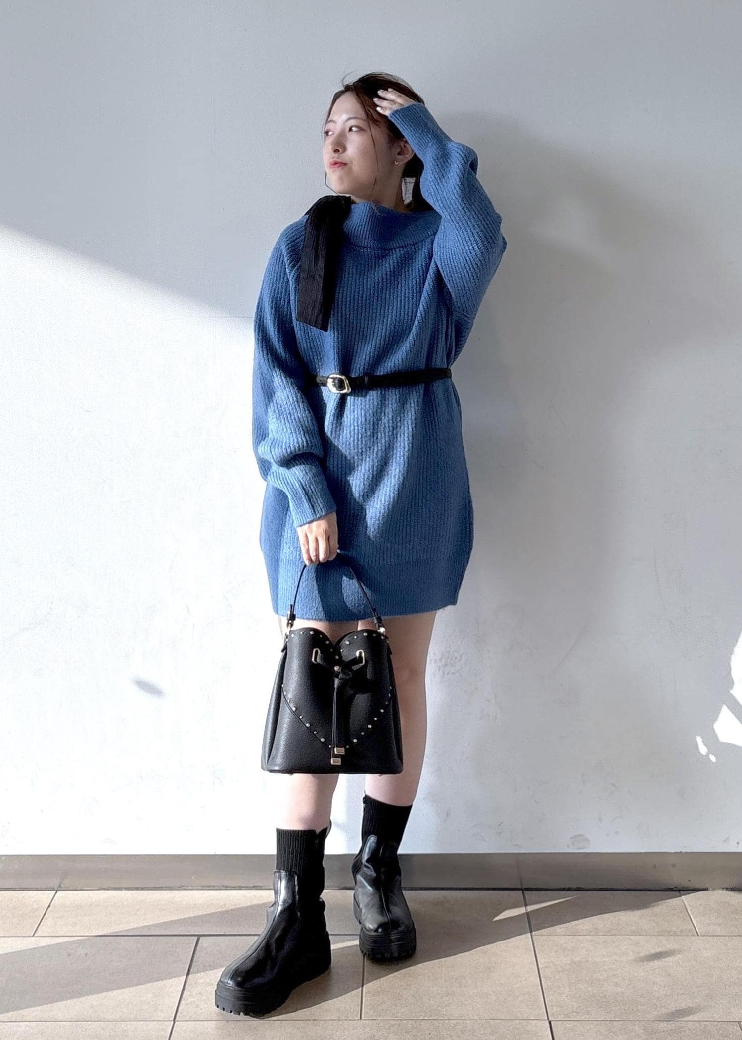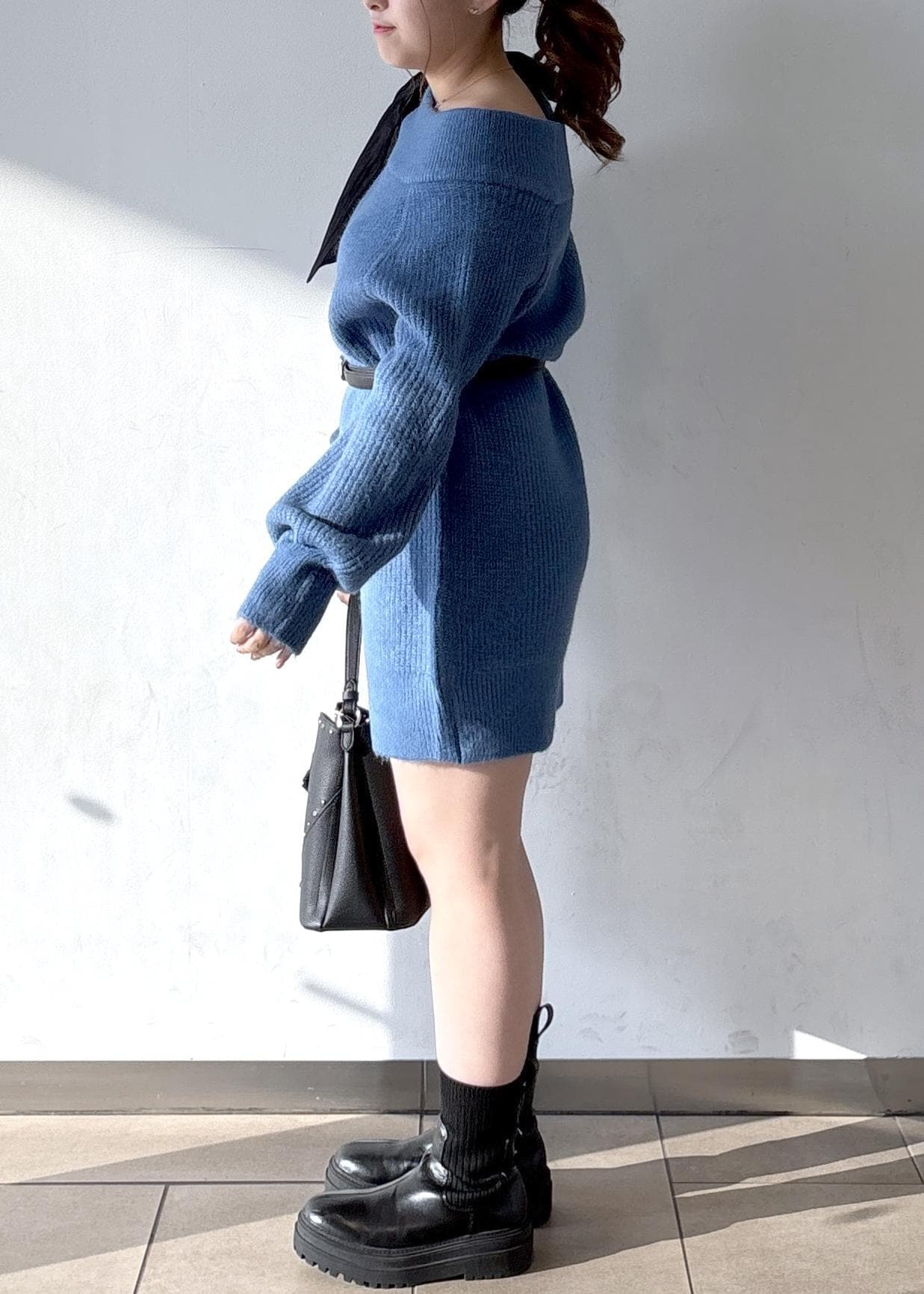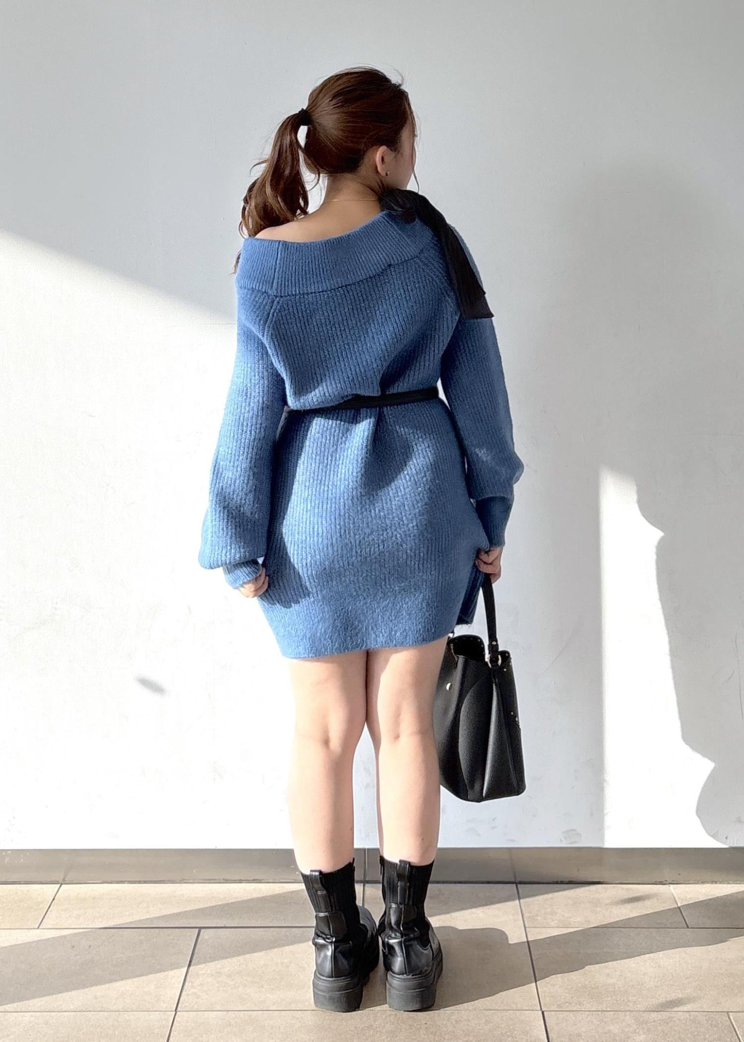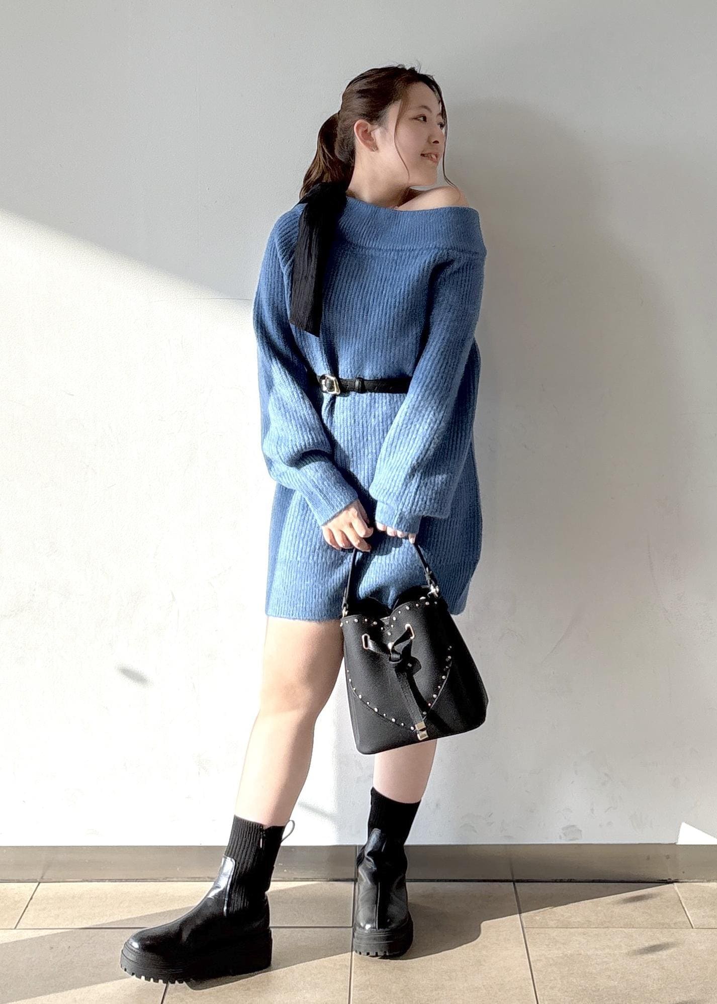 VIS肩リボンミニ丈ニットワンピース/2WAYブルー系 / F¥7,909レビュー153cmでFサイズ着用し着丈は膝上のミニ丈です!